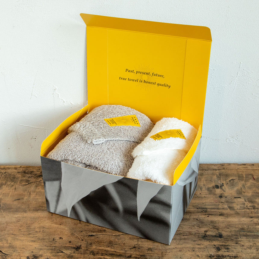 TRUE TOWELのギフトセットは、「TRUE BOX」に入れてお届けします。