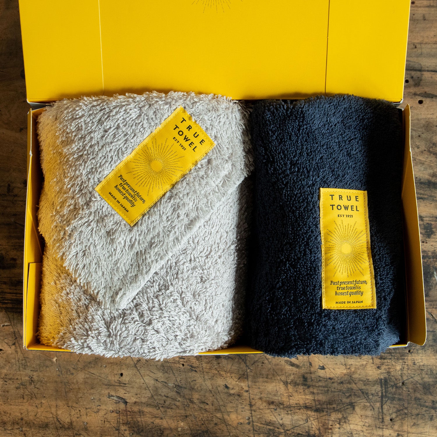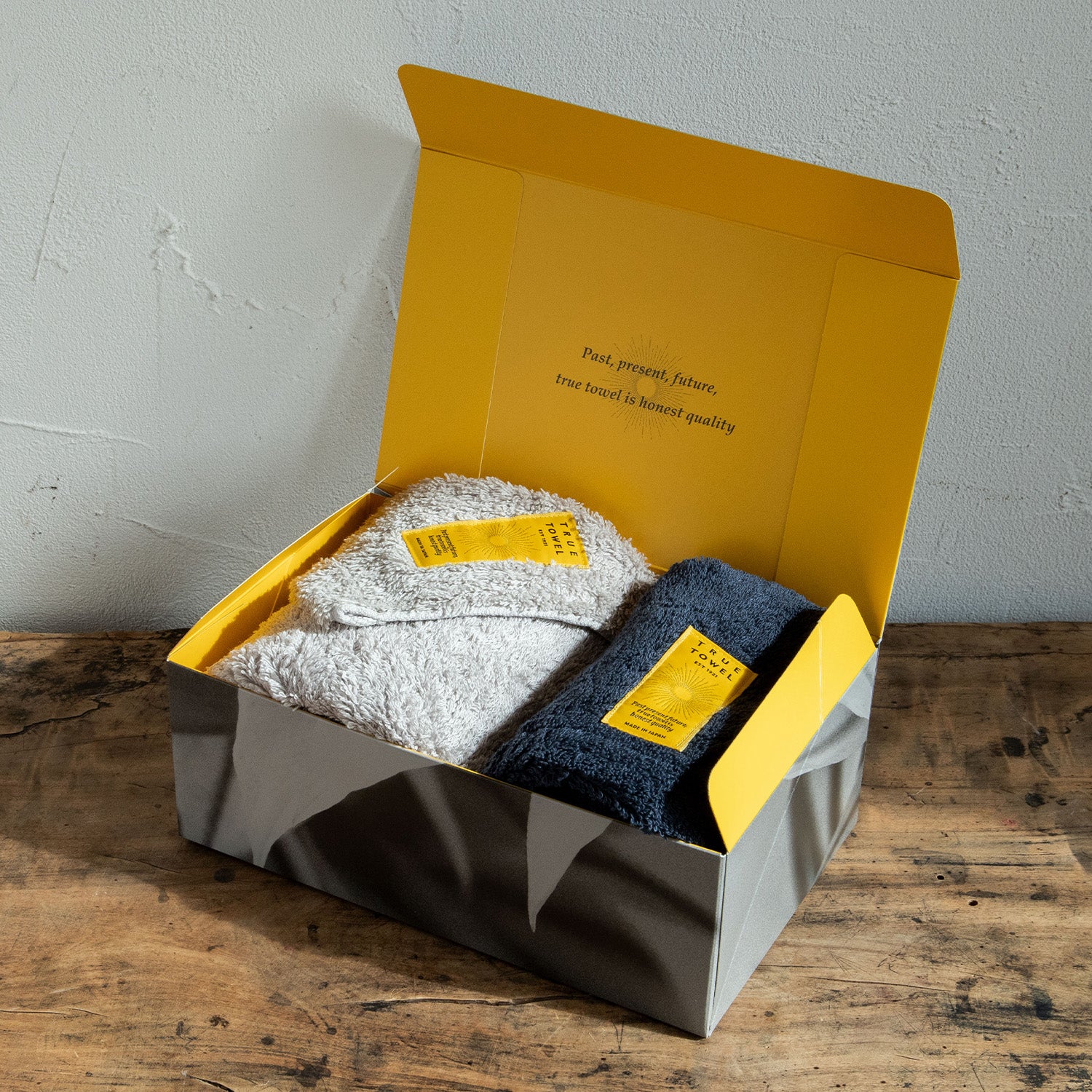 TRUE TOWELのギフトセットは、「TRUE BOX」に入れてお届けします。