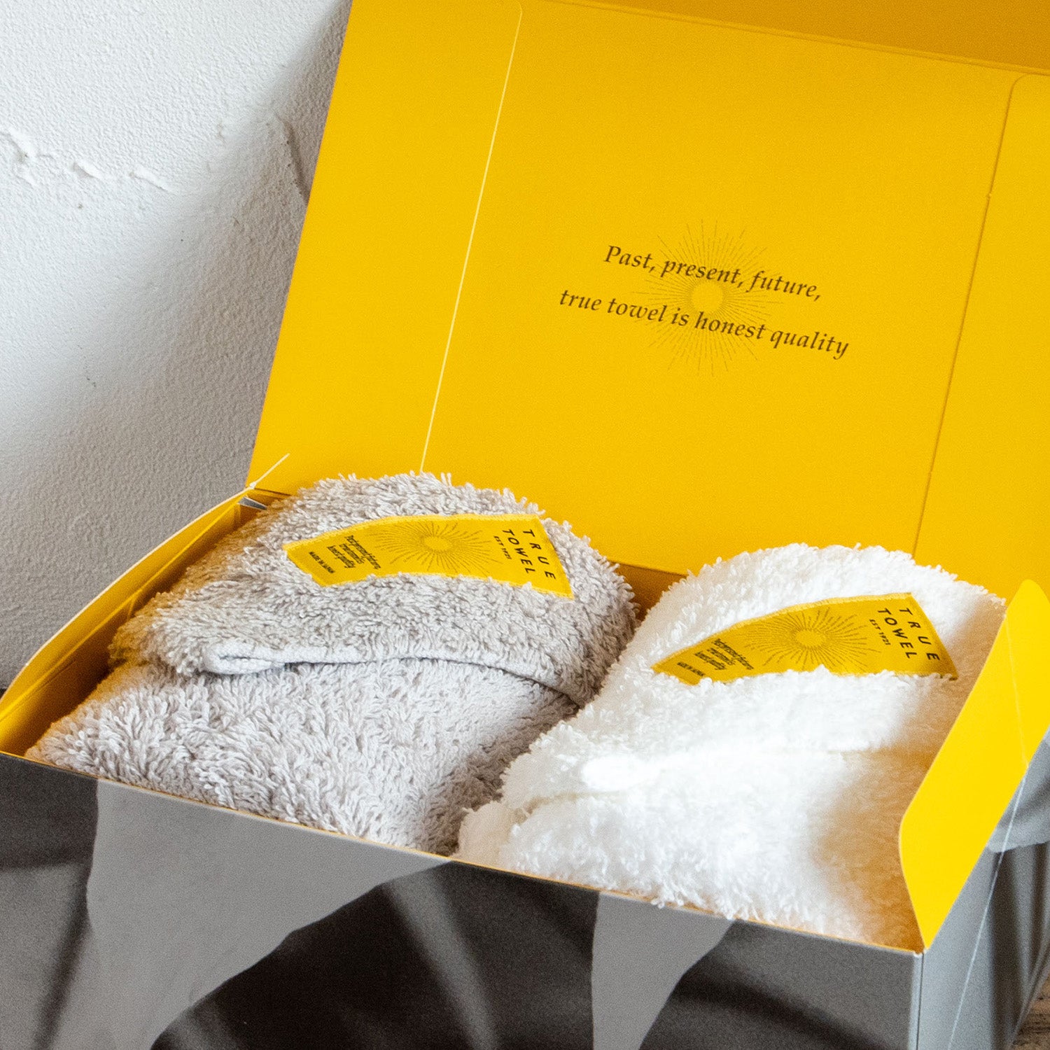 TRUE TOWELのギフトセットは、「TRUE BOX」に入れてお届けします。
