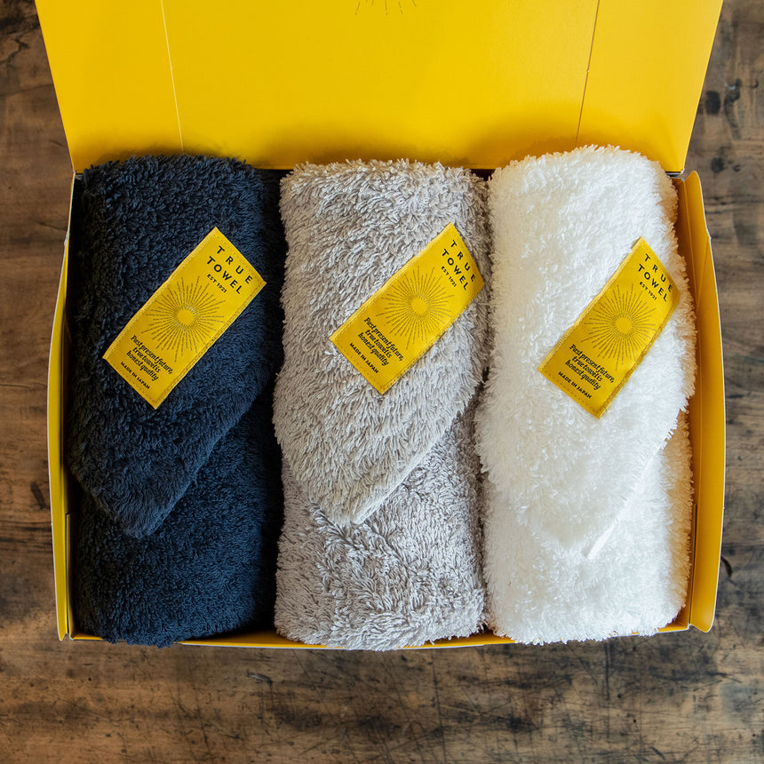 TRUE TOWELのギフトセットは、「TRUE BOX」に入れてお届けします。