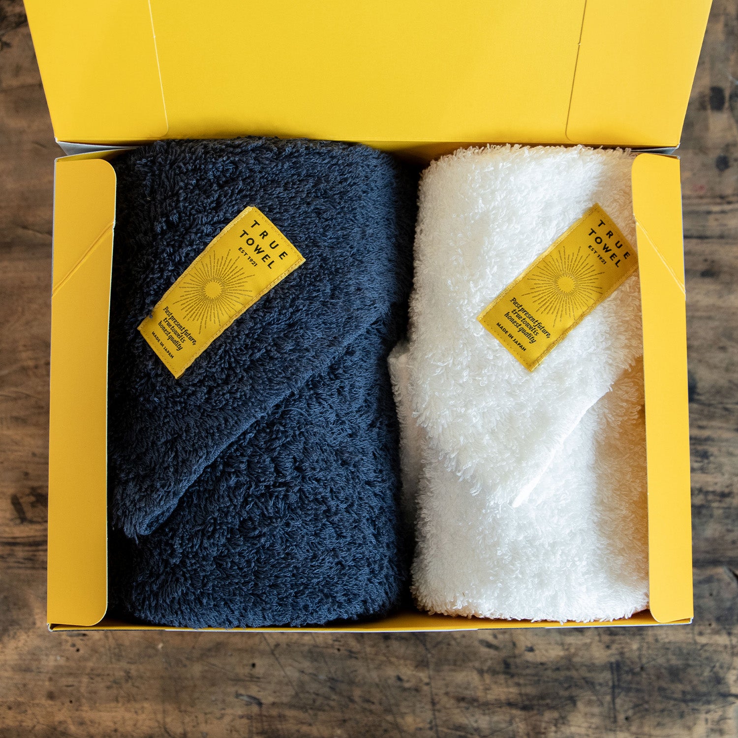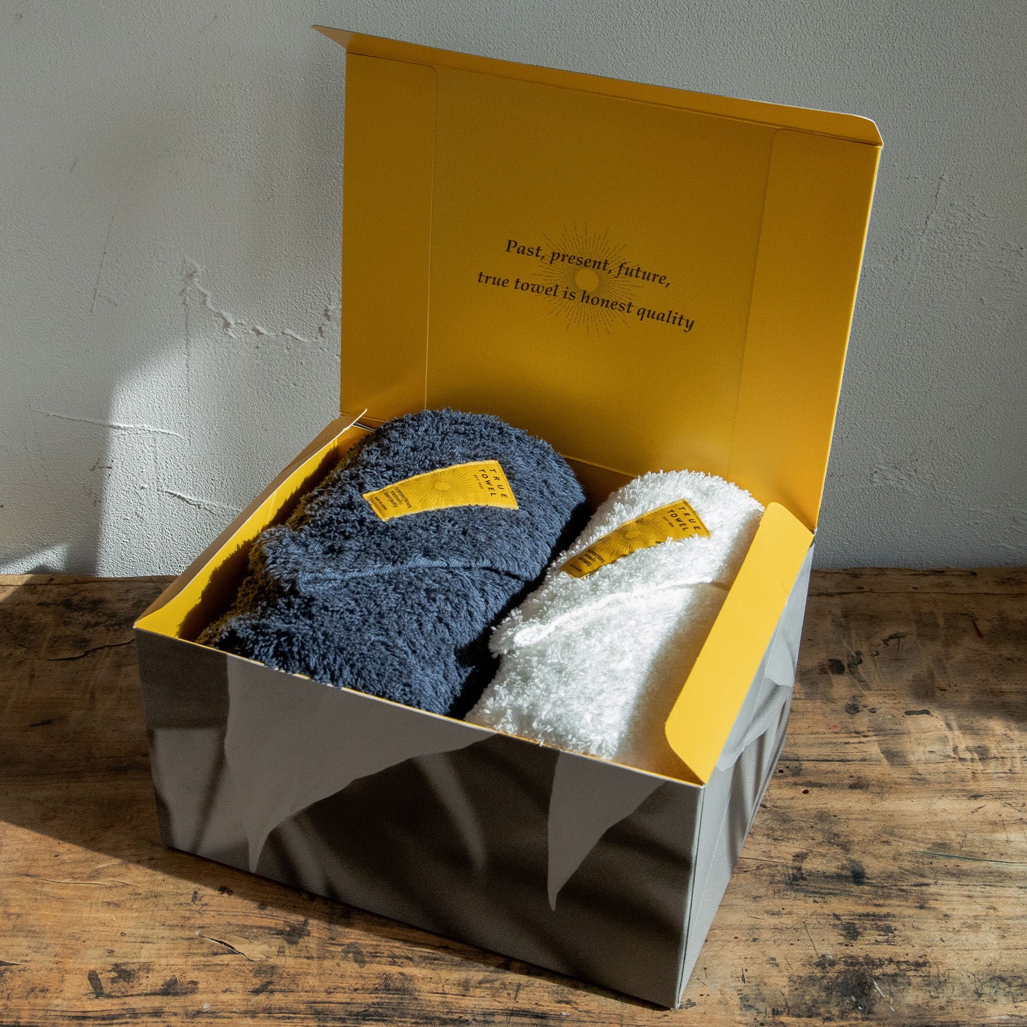 TRUE TOWELのギフトセットは、「TRUE BOX」に入れてお届けします。