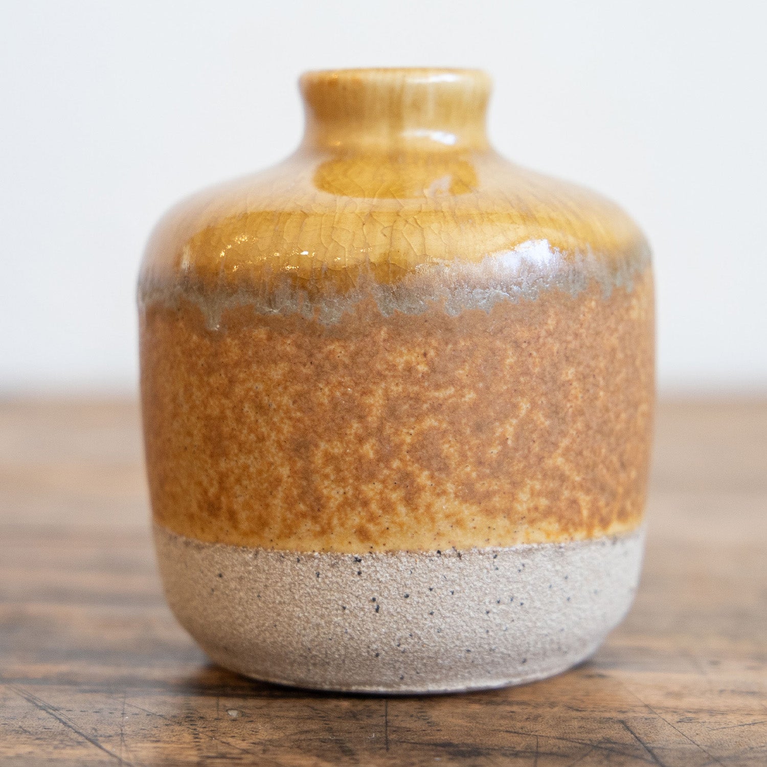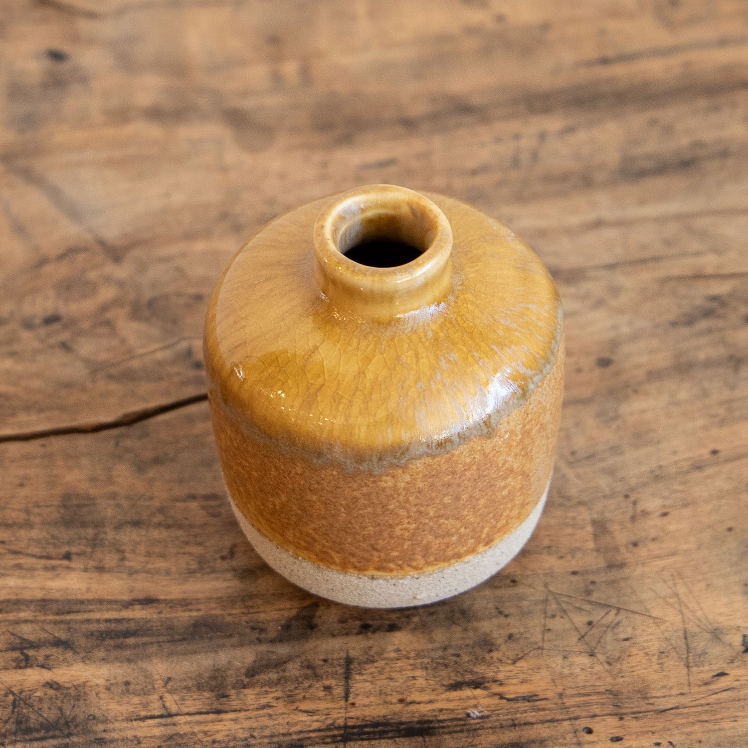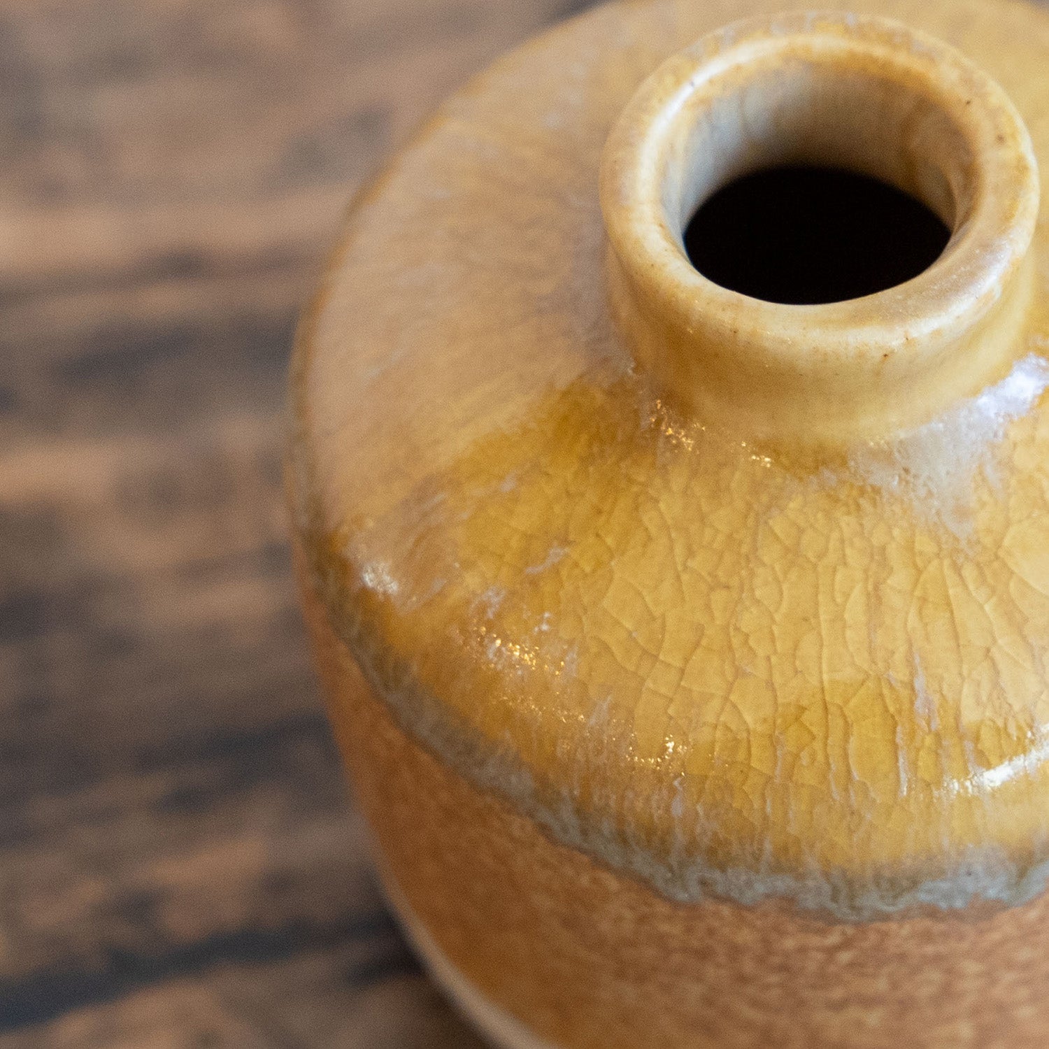 土の質感と釉薬の表情とのバランスが心地よい、陶器のフラワーベースシリーズ。