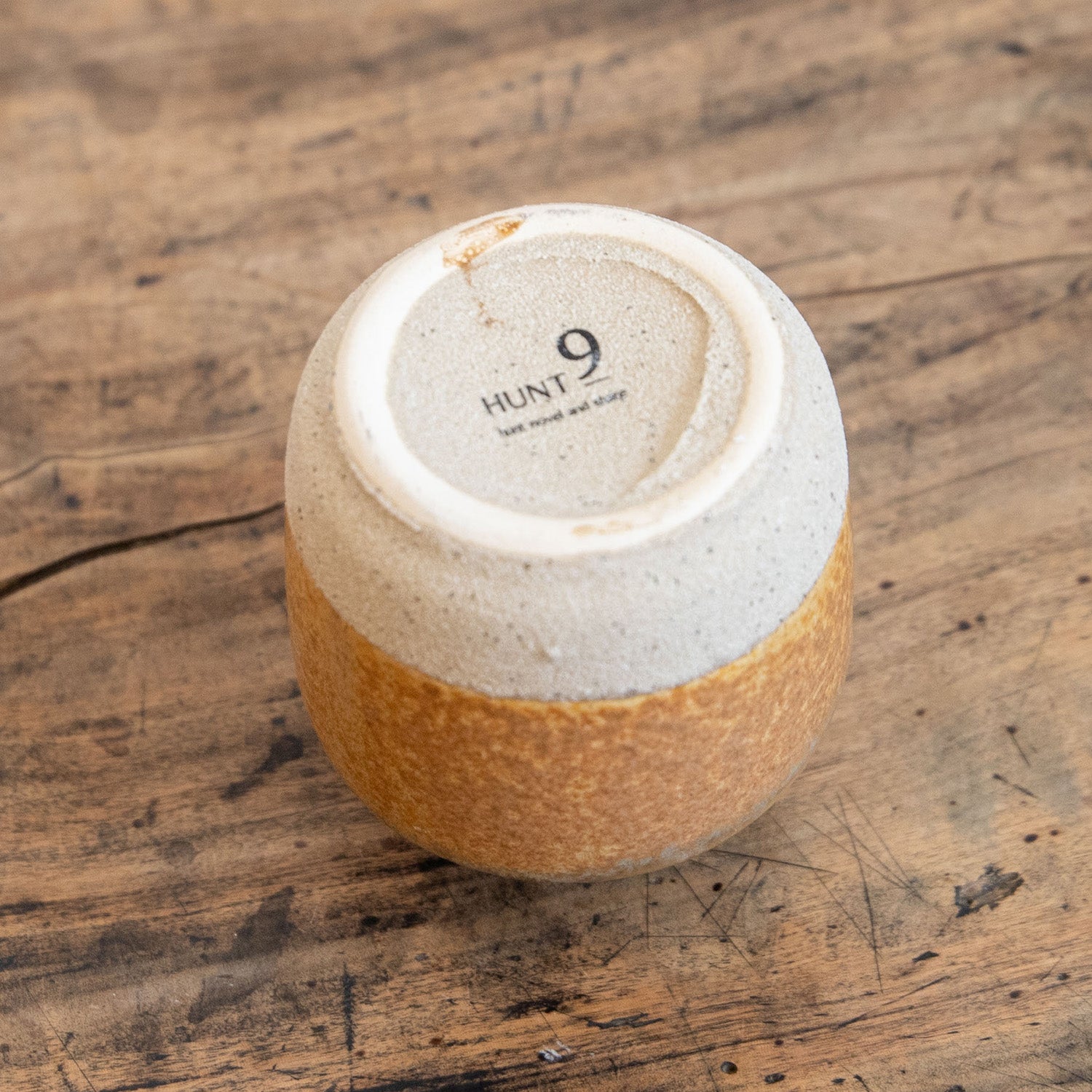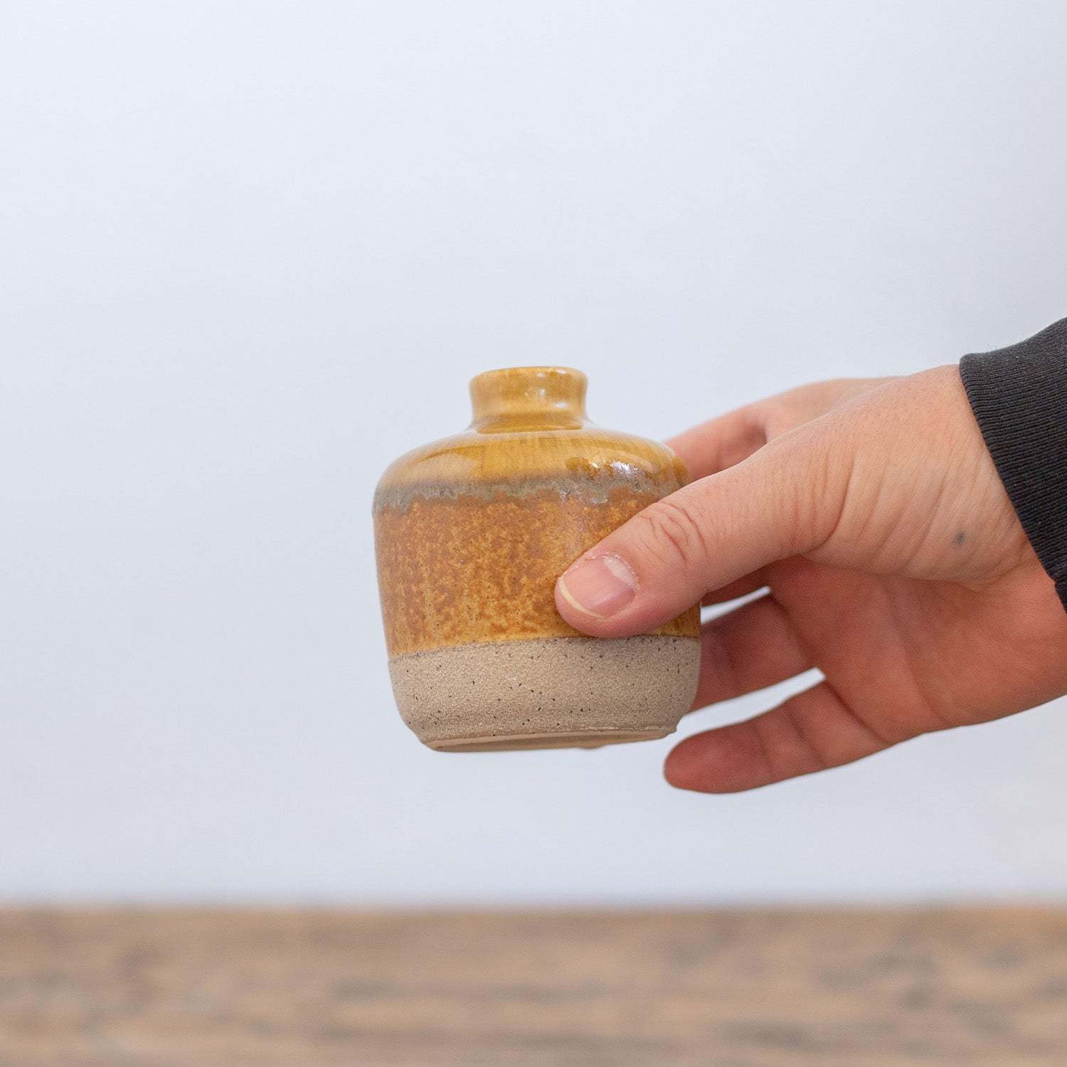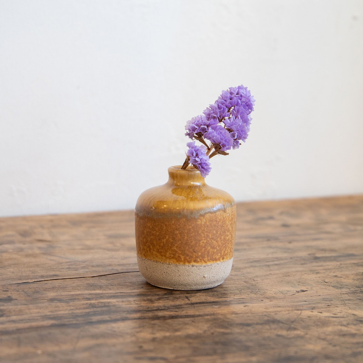 土の質感と釉薬の表情とのバランスが心地よい、陶器のフラワーベースシリーズ。