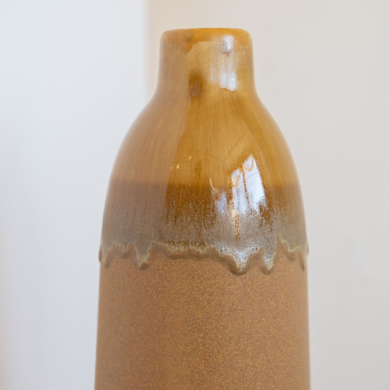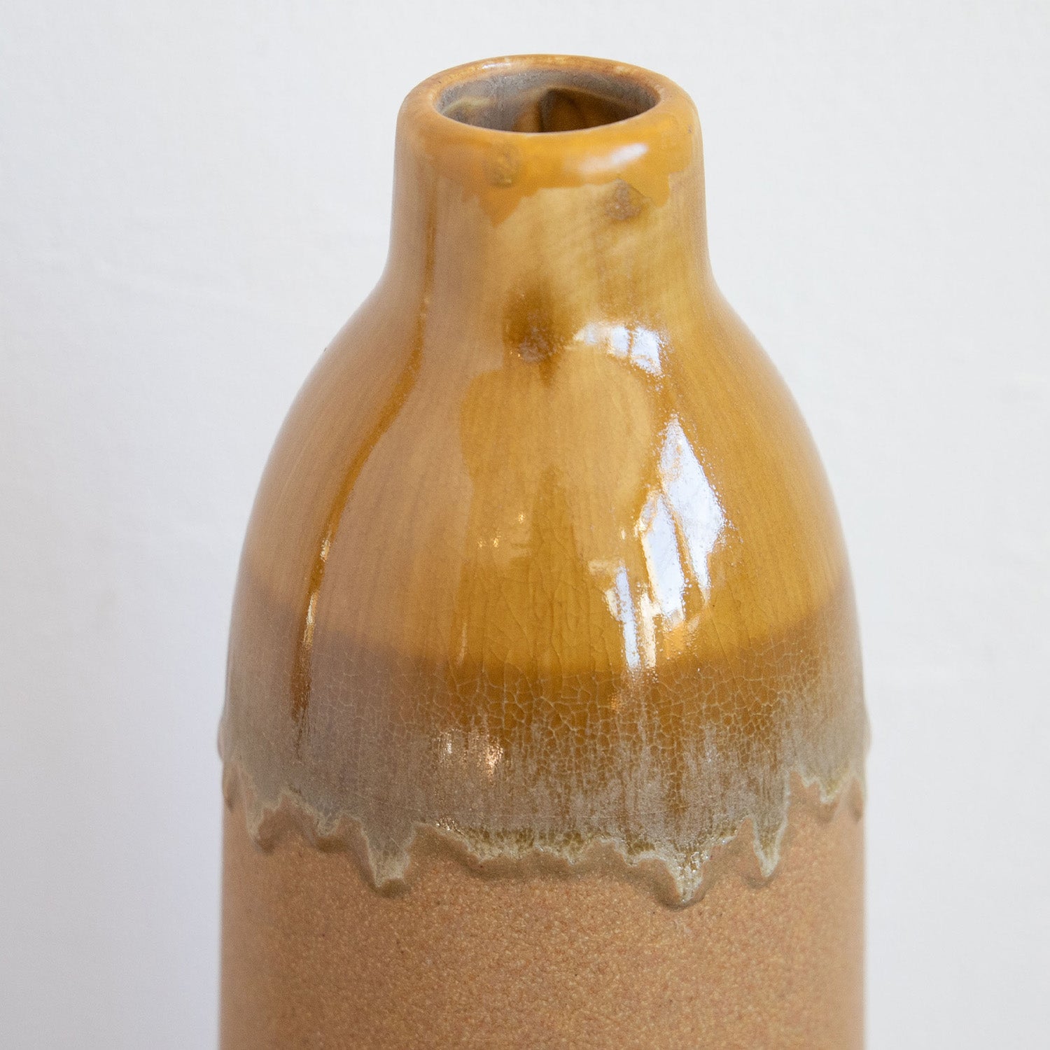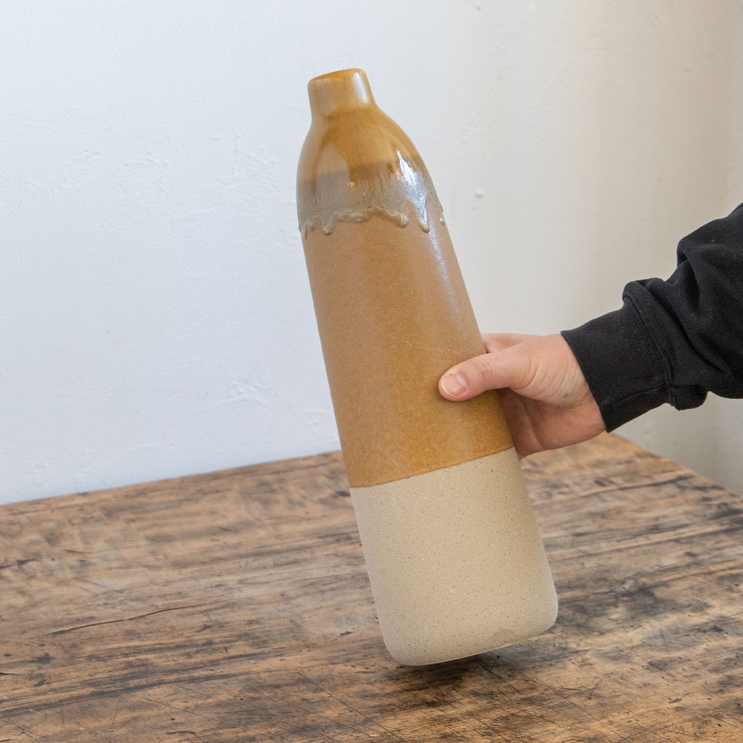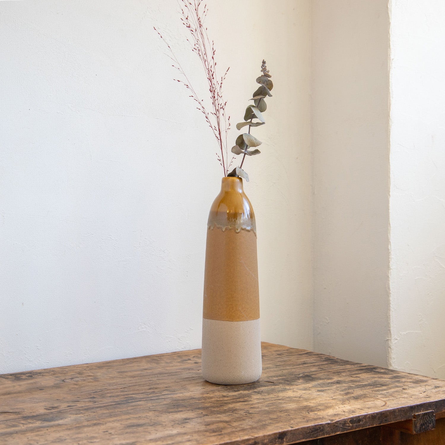 土の質感と釉薬の表情とのバランスが心地よい、陶器のフラワーベースシリーズ。