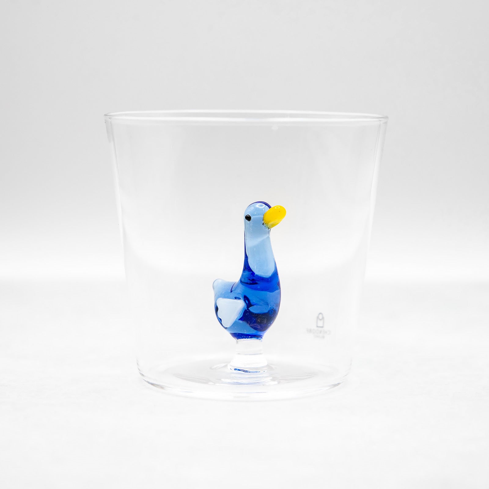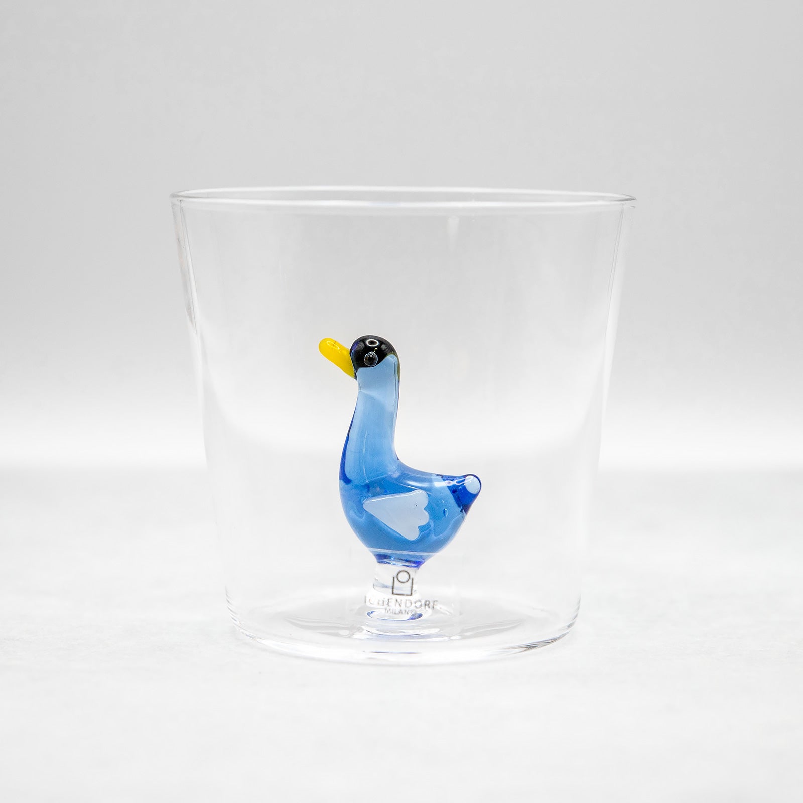 イタリアのガラスブランド「ICHENDORF MILANO(イッケンドルフ ミラノ)」の人気シリーズ、アニマルファームの青ガチョウモチーフ・タンブラーです。透明なグラスの中央に、熟練の職人が手仕事で仕上げた穏やかな表情の青ガチョウが佇み、飲み物を注ぐたびにゆったりとした癒しの空気が広がります。大人も子どもも思わず笑顔になる遊び心あふれるデザインは、ご自宅用にはもちろん、贈り物にもおすすめの一品です。