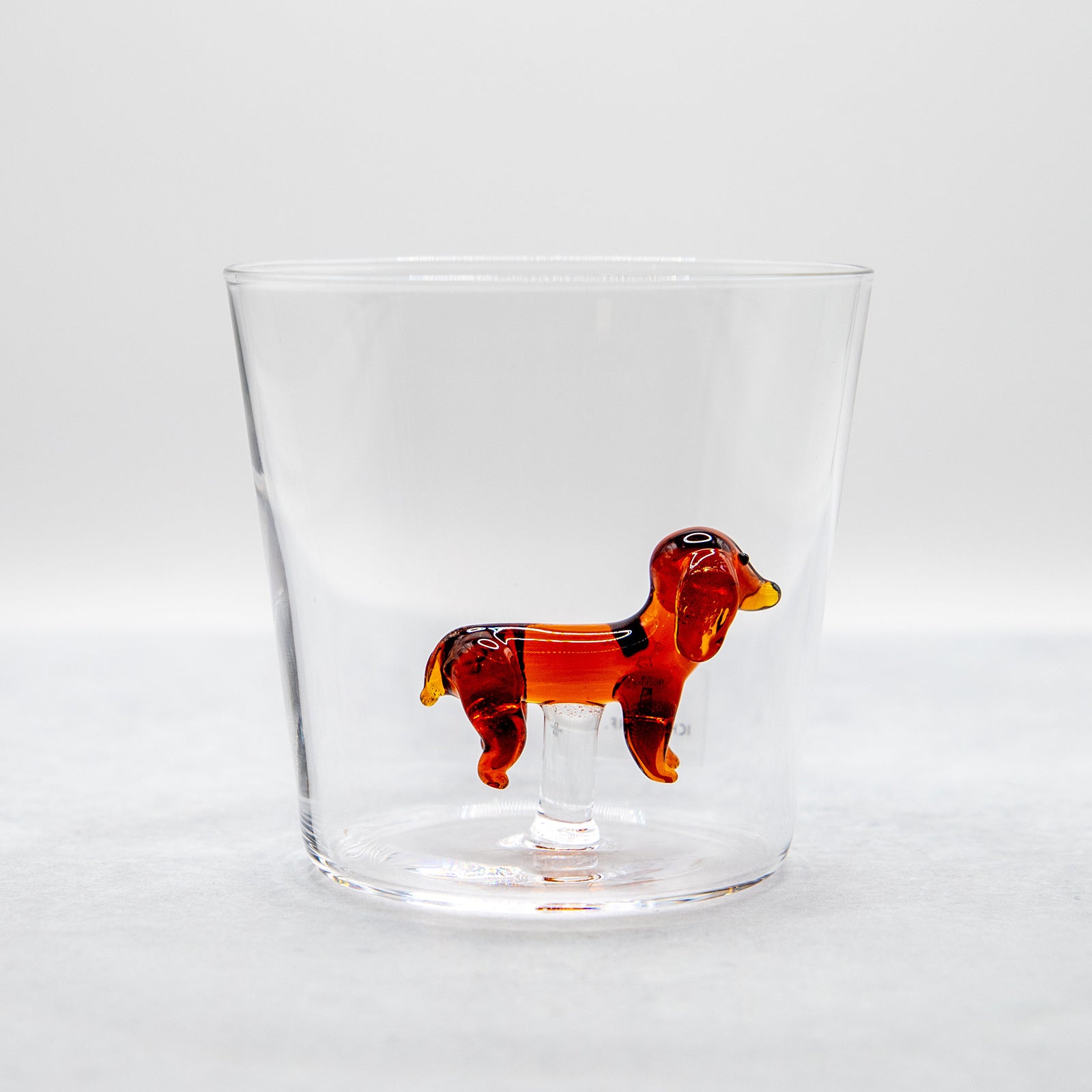 イタリアのガラスブランド「ICHENDORF MILANO(イッケンドルフ ミラノ)」、アレッサンドラ・バルデレスキが手がける「DOGS」シリーズのタンブラーです。グラスの中でちょこんと座り、こちらをじっと見つめる犬の姿は、まるで小さな友達がそばにいるかのよう。かわいいしっぽまで丁寧に表現され、職人の手仕事ならではの繊細さが光ります。愛らしい存在感は食卓に優しい彩りを添え、ご自宅用にはもちろん、犬好きの方への贈り物にもぴったりの一品です。