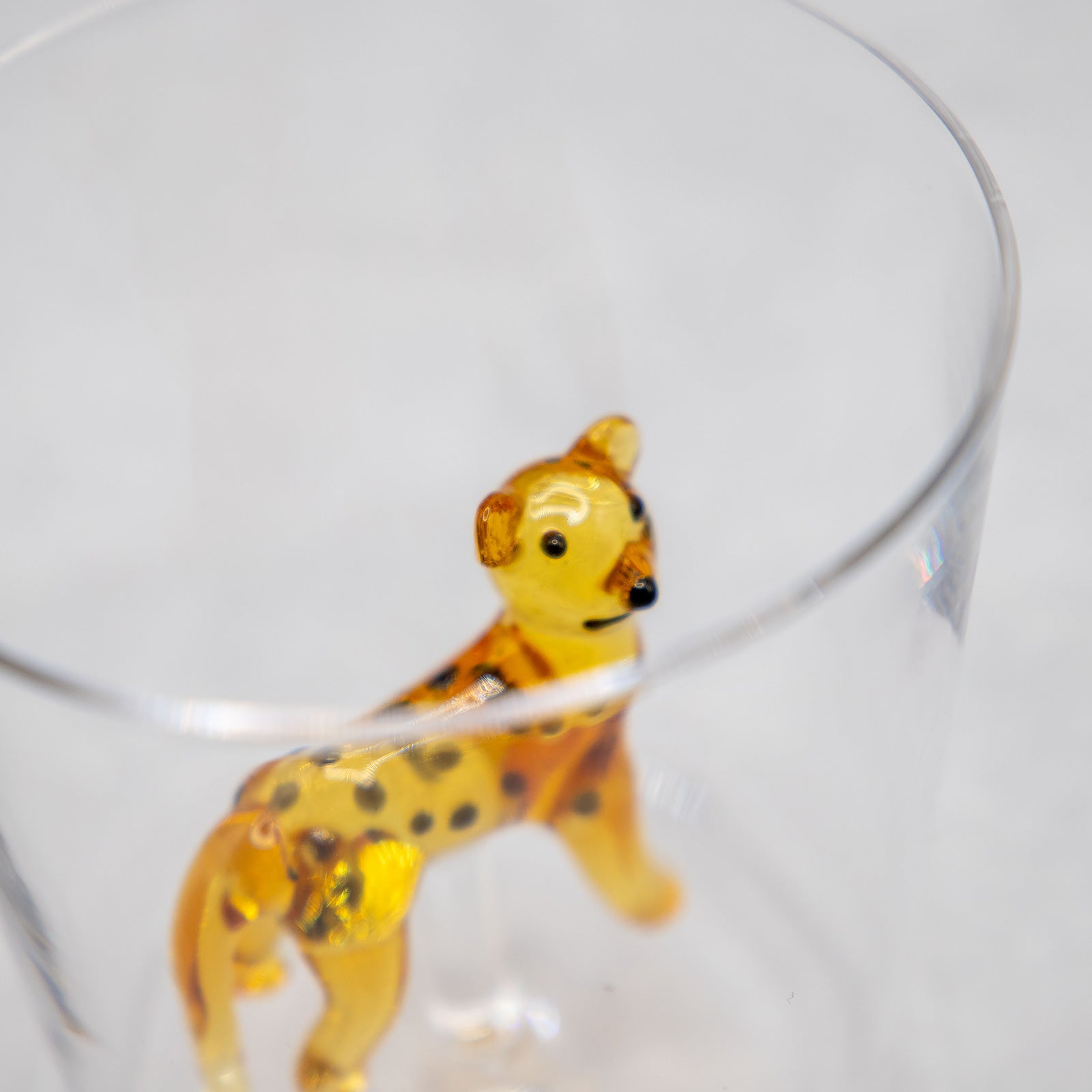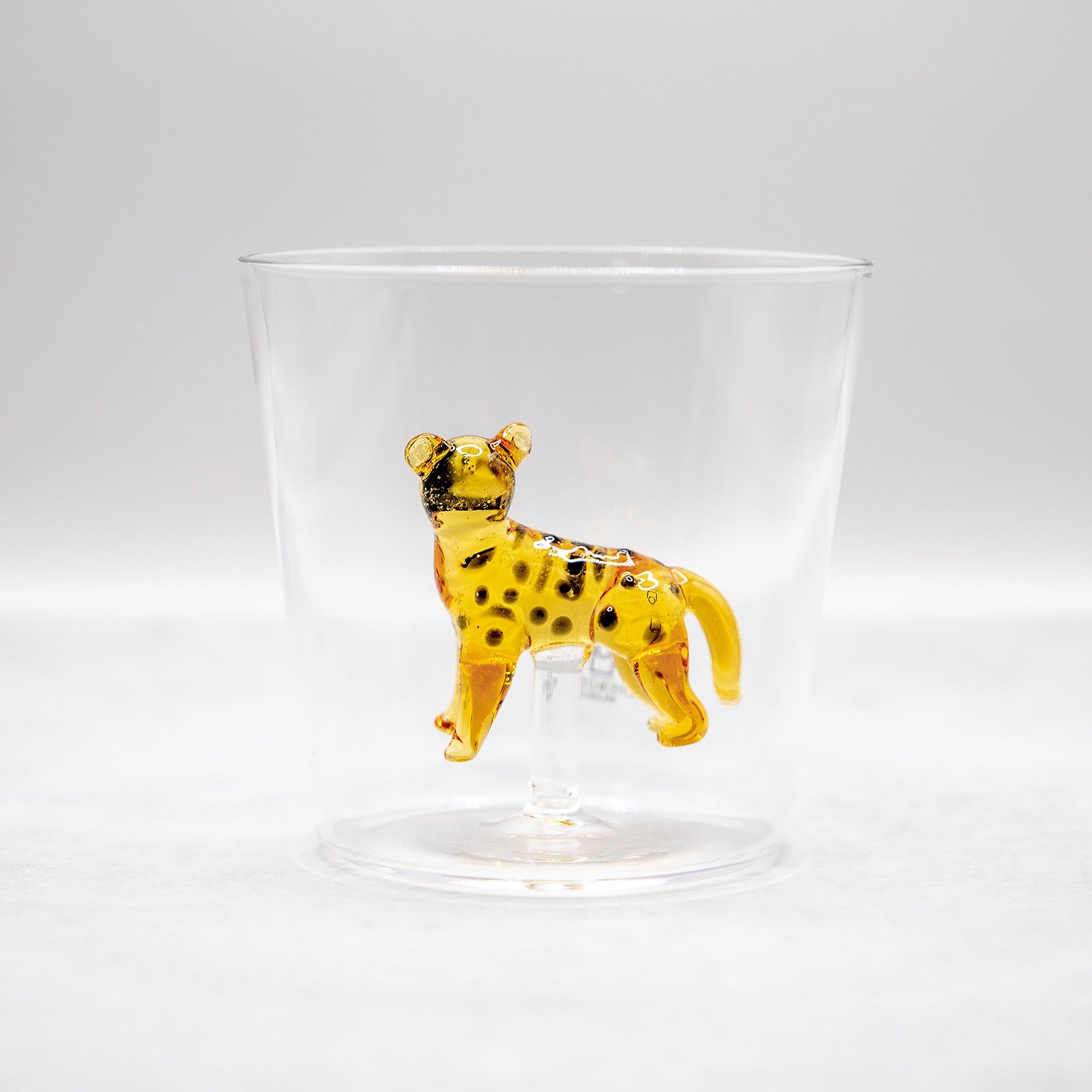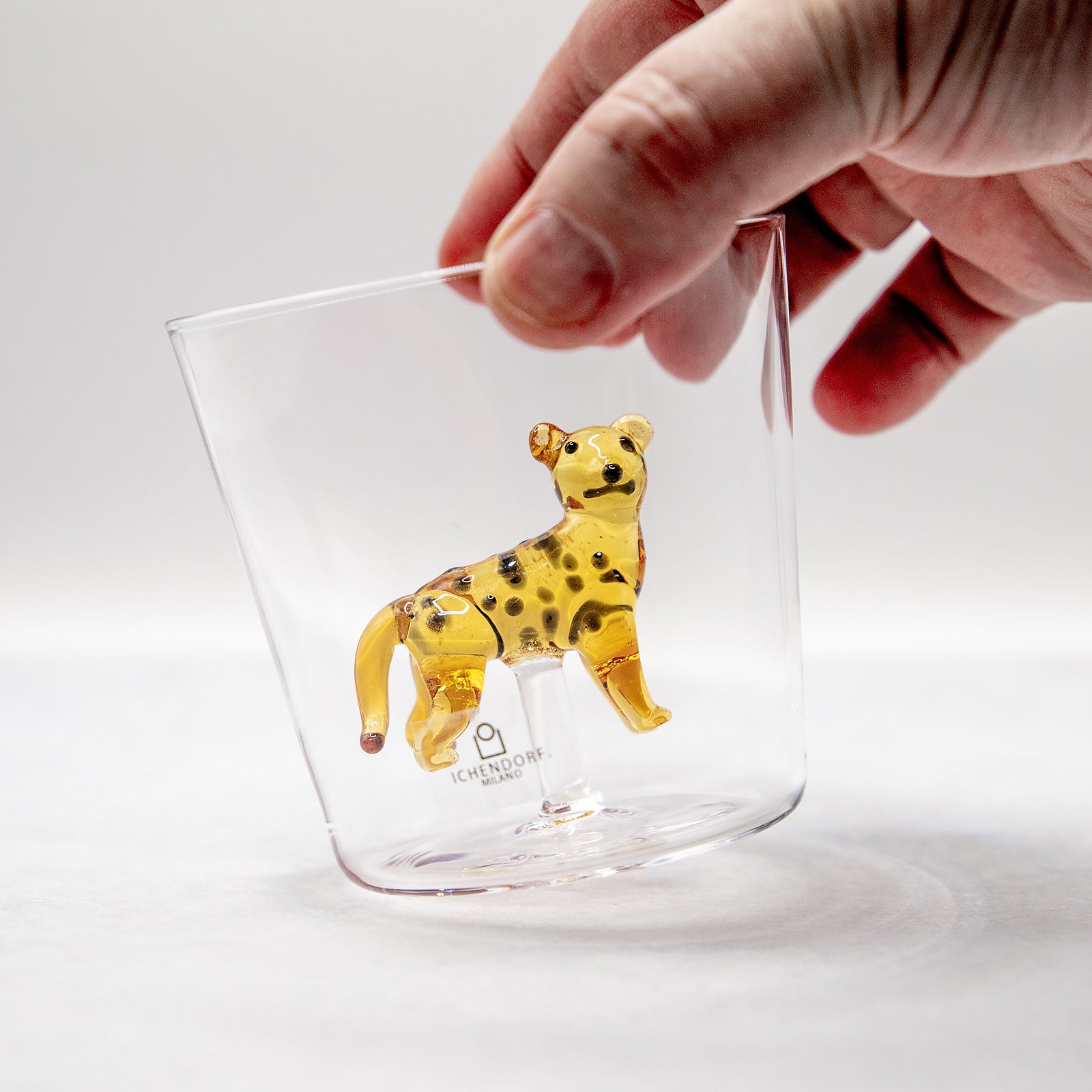イタリアのガラスブランド「ICHENDORF MILANO(イッケンドルフ ミラノ)」の人気シリーズ、SAVANNNAHのチーターモチーフ・タンブラーです。透明なグラスの中央に、熟練の職人が手仕事で仕上げた穏やかな表情のチーターが佇み、飲み物を注ぐたびにゆったりとした癒しの空気が広がります。大人も子どもも思わず笑顔になる遊び心あふれるデザインは、ご自宅用にはもちろん、贈り物にもおすすめの一品です。
