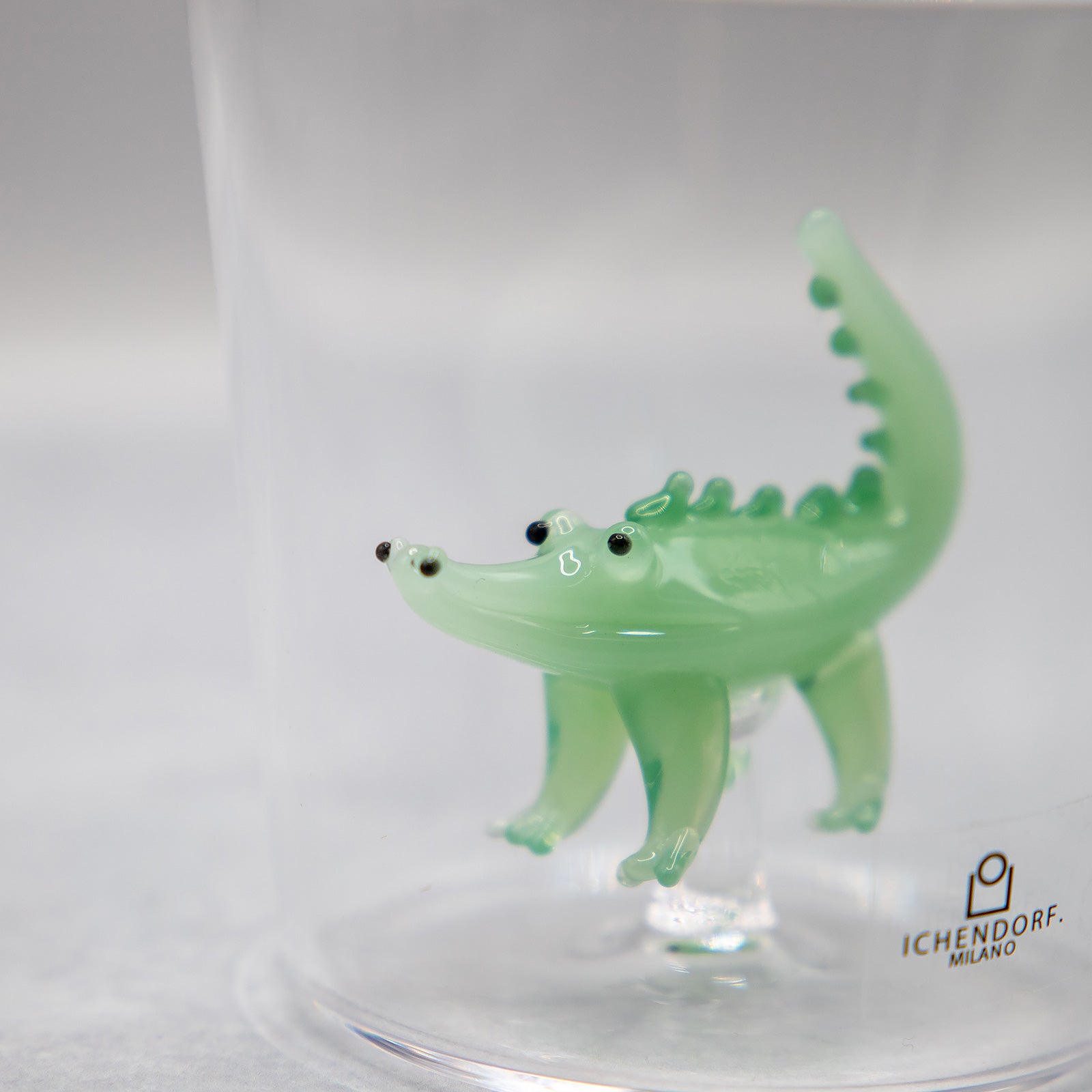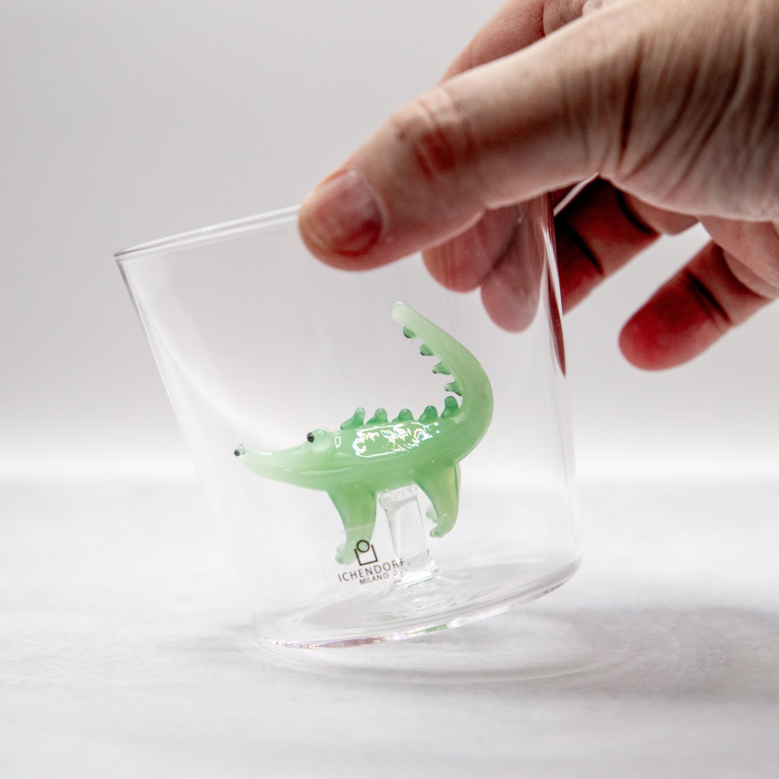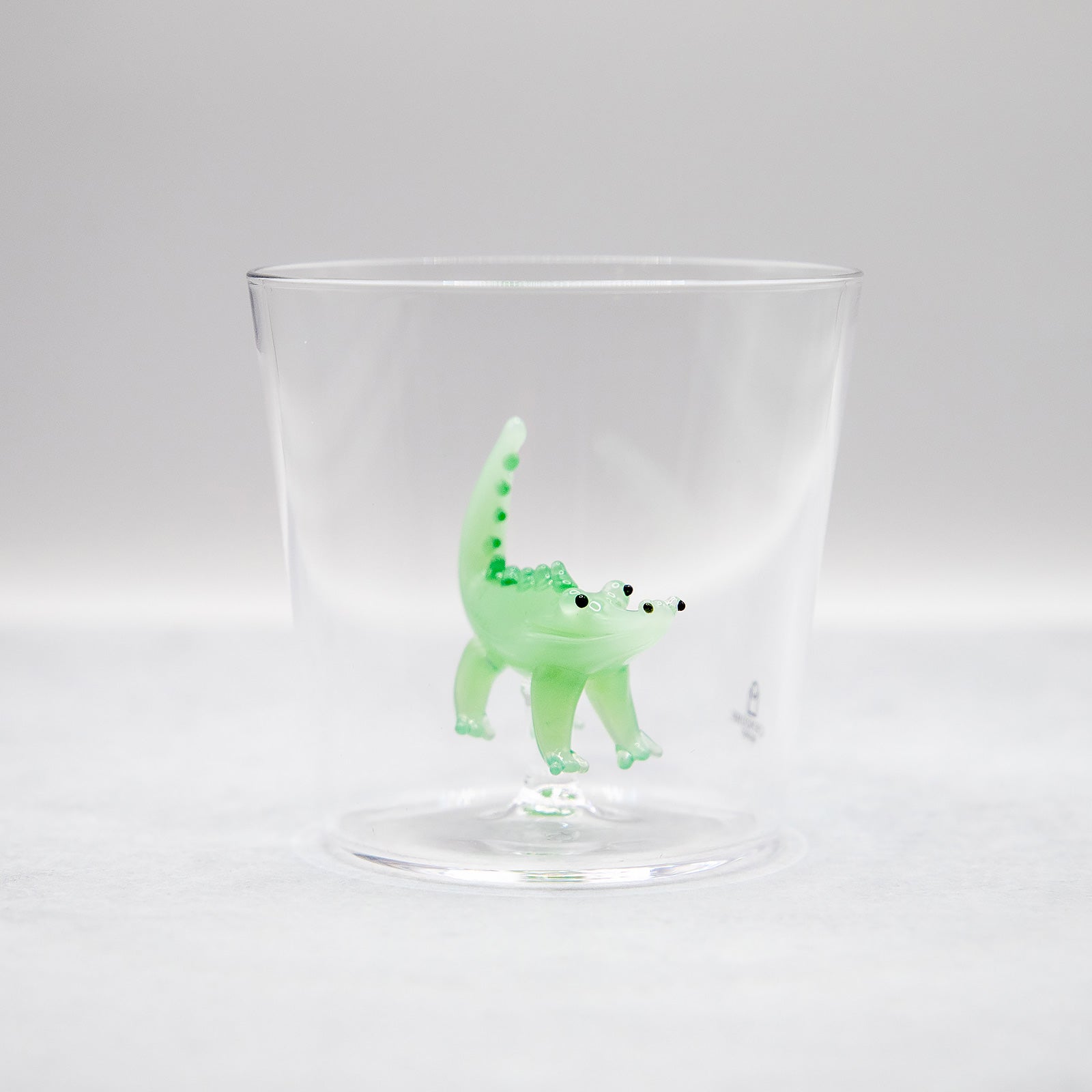 イタリアのガラスブランド「ICHENDORF MILANO(イッケンドルフ ミラノ)」の人気シリーズ、SAVANNNAHのワニモチーフ・タンブラーです。透明なグラスの中央に、熟練の職人が手仕事で仕上げた穏やかな表情のワニが佇み、飲み物を注ぐたびにゆったりとした癒しの空気が広がります。大人も子どもも思わず笑顔になる遊び心あふれるデザインは、ご自宅用にはもちろん、贈り物にもおすすめの一品です。