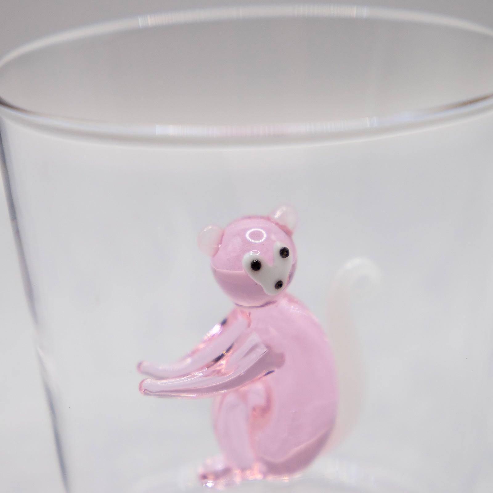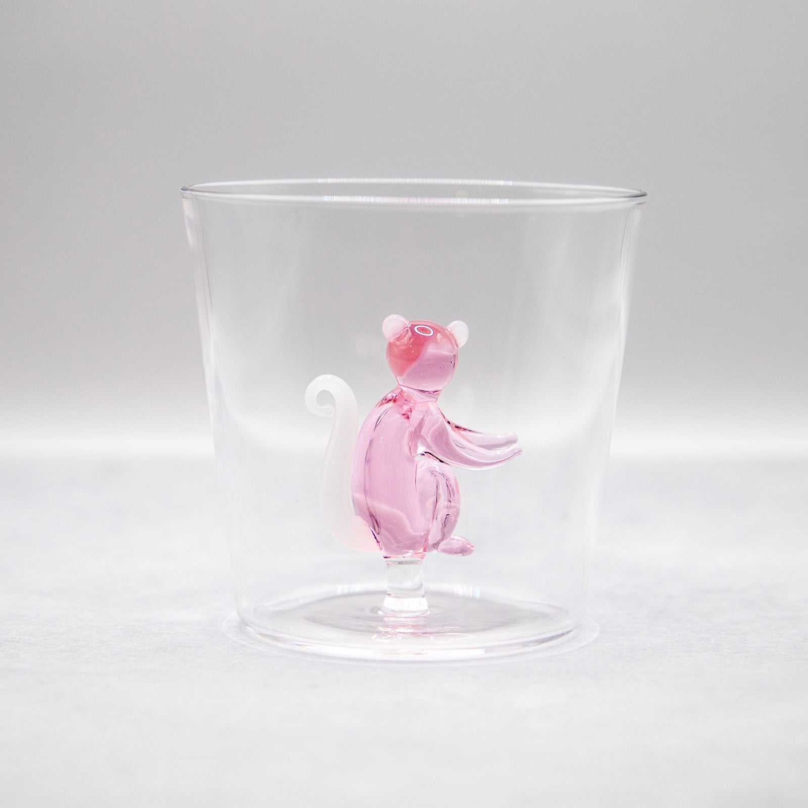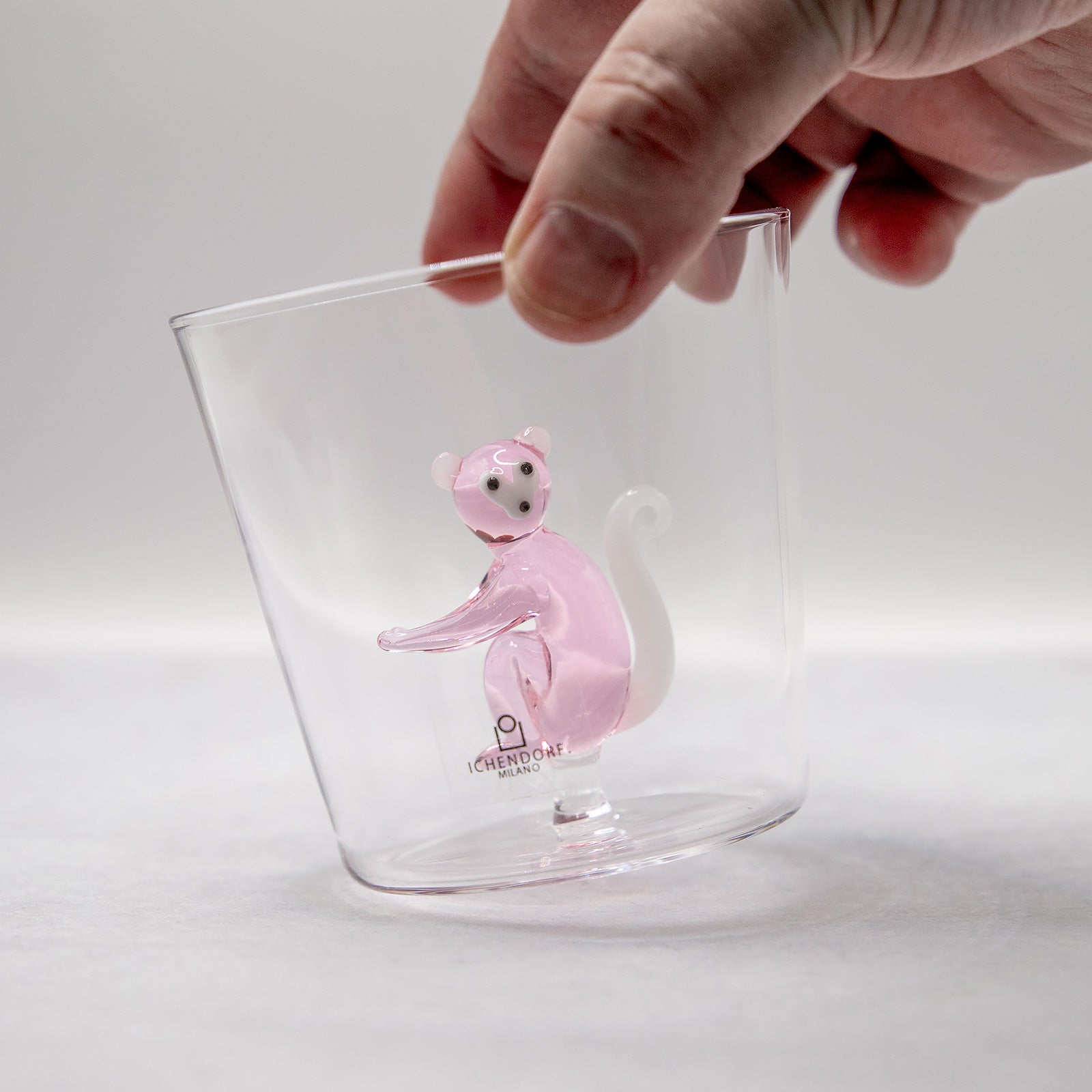 イタリアのガラスブランド「ICHENDORF MILANO(イッケンドルフ ミラノ)」の人気シリーズ、SAVANNNAHのピンクモンキーモチーフ・タンブラーです。透明なグラスの中央に、熟練の職人が手仕事で仕上げた穏やかな表情のピンクモンキーが佇み、飲み物を注ぐたびにゆったりとした癒しの空気が広がります。大人も子どもも思わず笑顔になる遊び心あふれるデザインは、ご自宅用にはもちろん、贈り物にもおすすめの一品です。