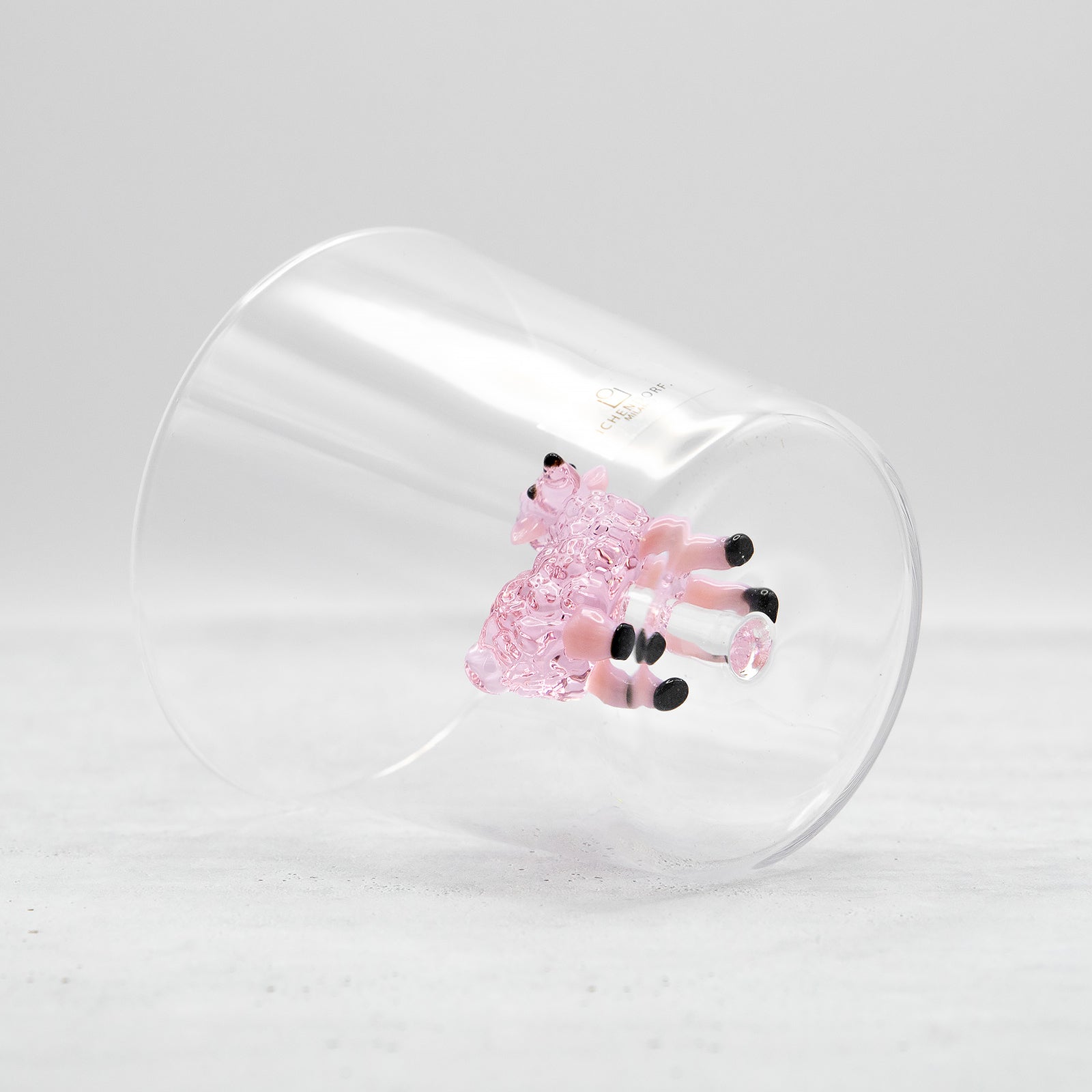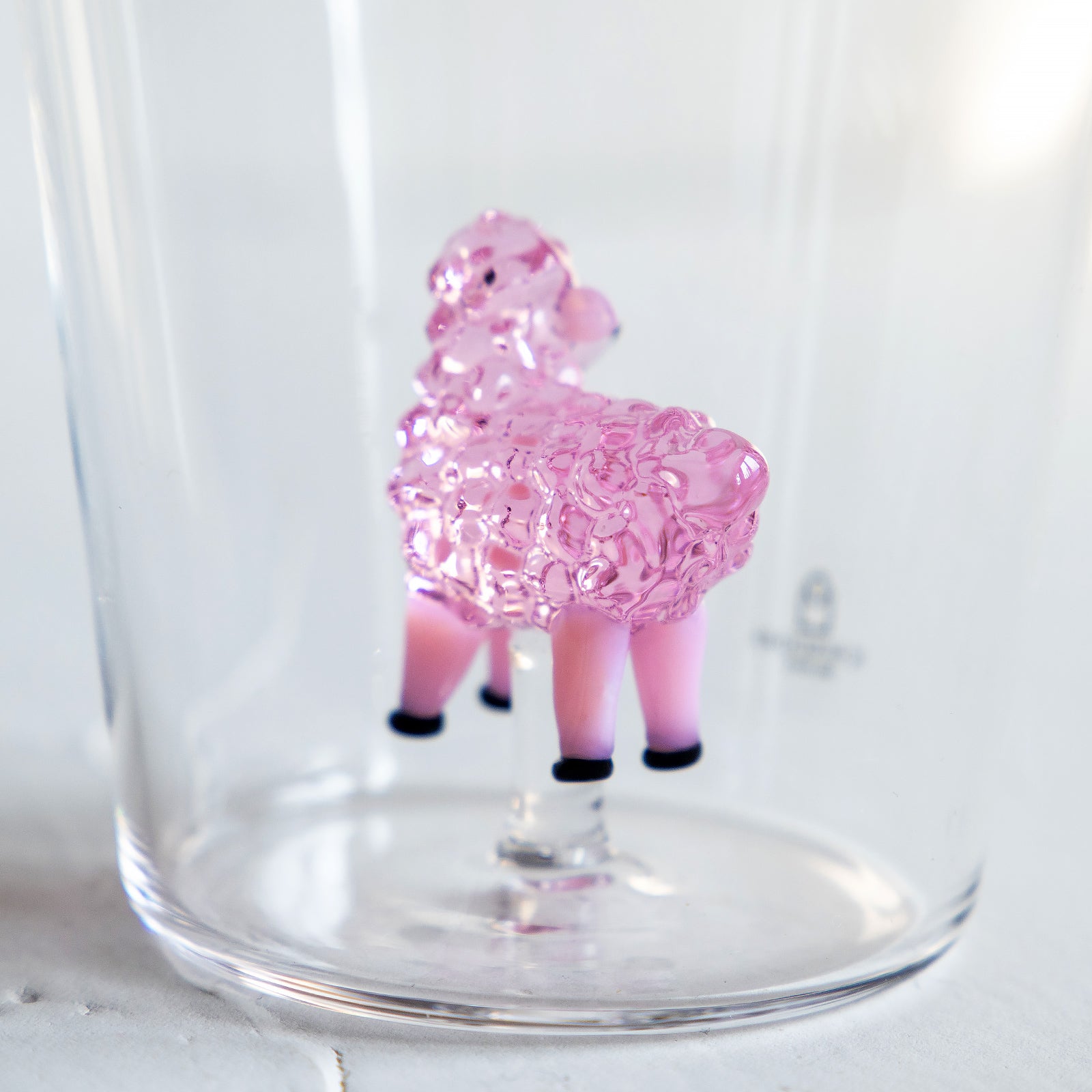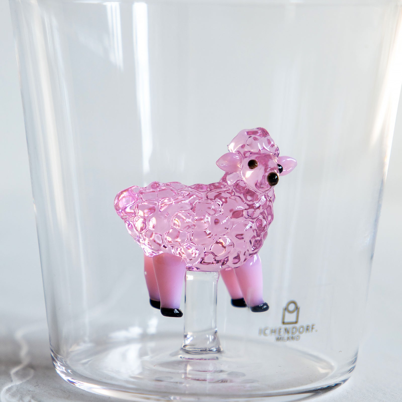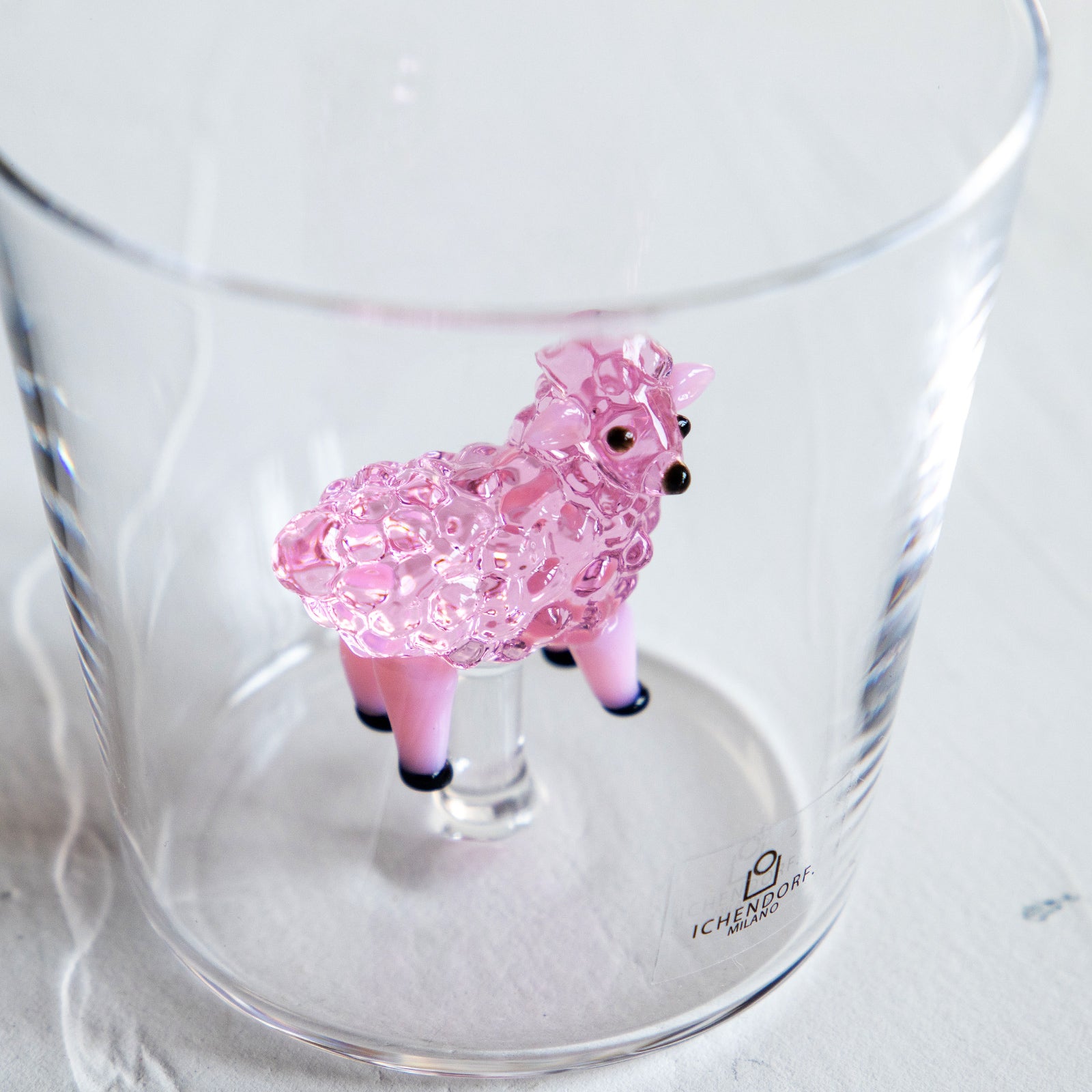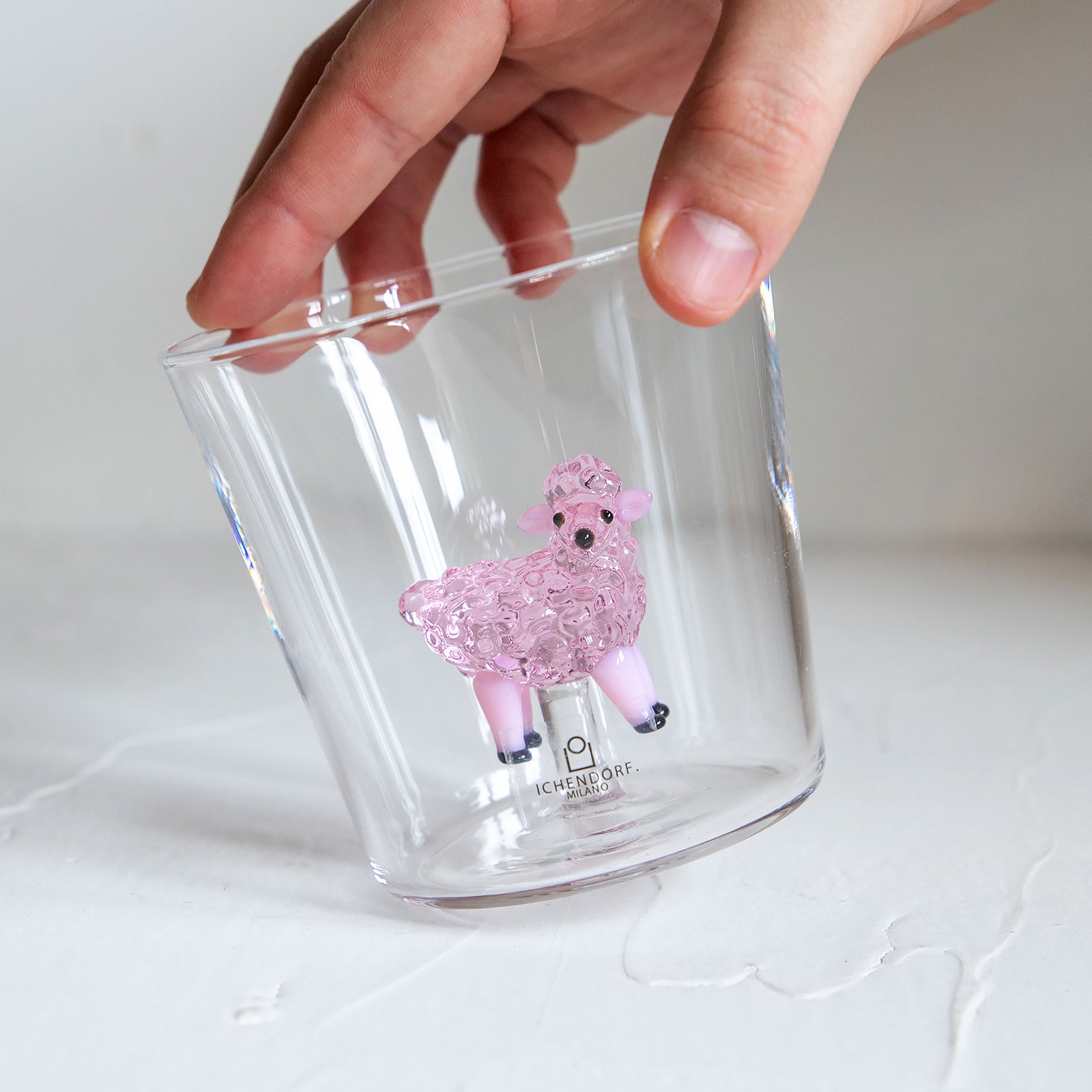 イタリアのガラスブランド「ICHENDORF MILANO(イッケンドルフ ミラノ)」より、アニマルファームシリーズのピンクのひつじモチーフ・タンブラーです。透明なグラスの中に佇むひつじは、熟練の職人がひとつひとつ丁寧に仕上げた手仕事の逸品。ふんわりとした毛並みを思わせるもこもこの造形に、ピンクのきらめきが加わり、可愛らしさと上品さを兼ね備えています。眺めるだけで心が和み、飲み物を注げば小さな物語が広がるような一品。日常に彩りを添えるグラスとして、ご自宅用にも贈り物にもおすすめです。
