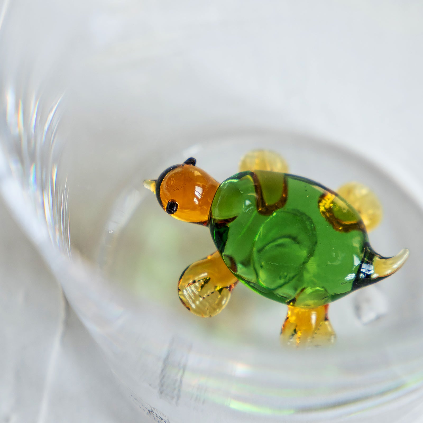 イタリアのガラスブランド「ICHENDORF MILANO(イッケンドルフ ミラノ)」の人気シリーズ、アニマルファームのカメモチーフ・タンブラーです。透明なグラスの中央に、熟練の職人が手仕事で仕上げた穏やかな表情のカメが佇み、飲み物を注ぐたびにゆったりとした癒しの空気が広がります。大人も子どもも思わず笑顔になる遊び心あふれるデザインは、ご自宅用にはもちろん、贈り物にもおすすめの一品です。