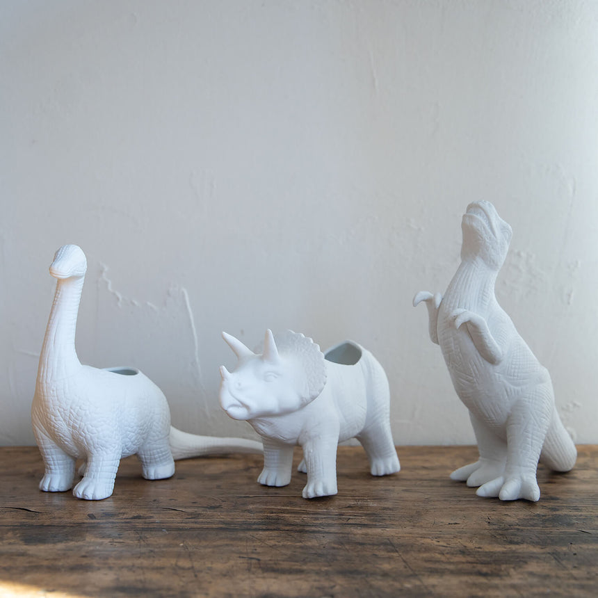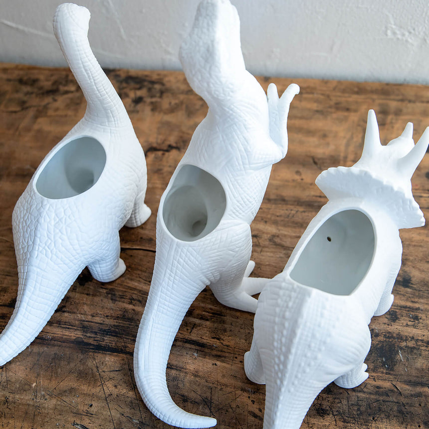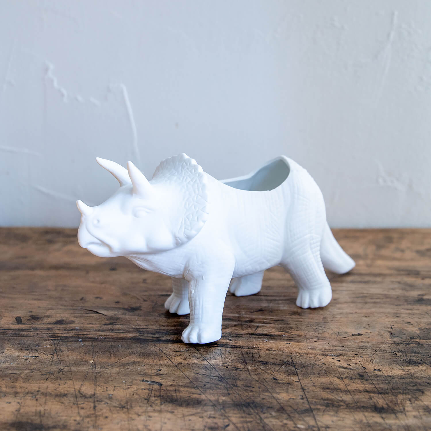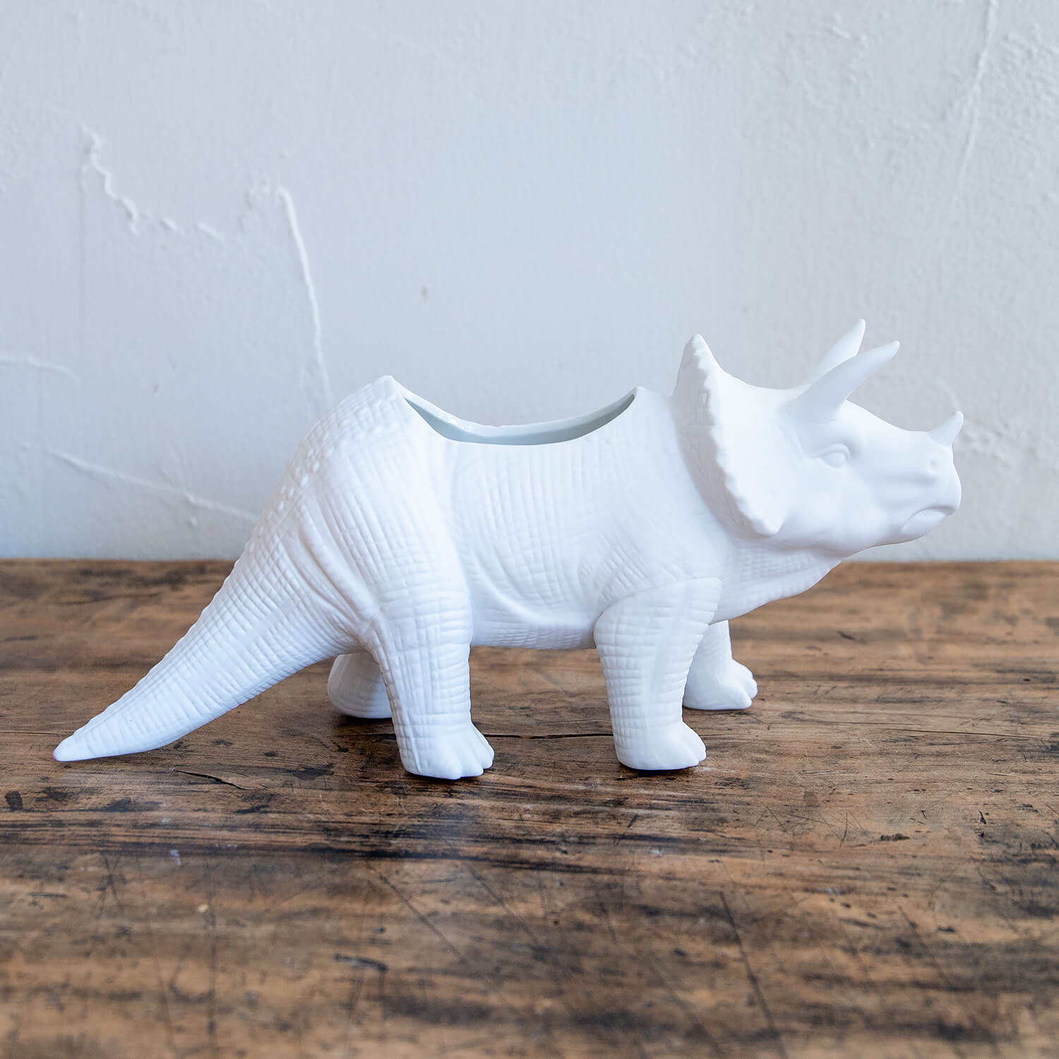 恐竜モチーフのマット仕上げ陶器製プランター。