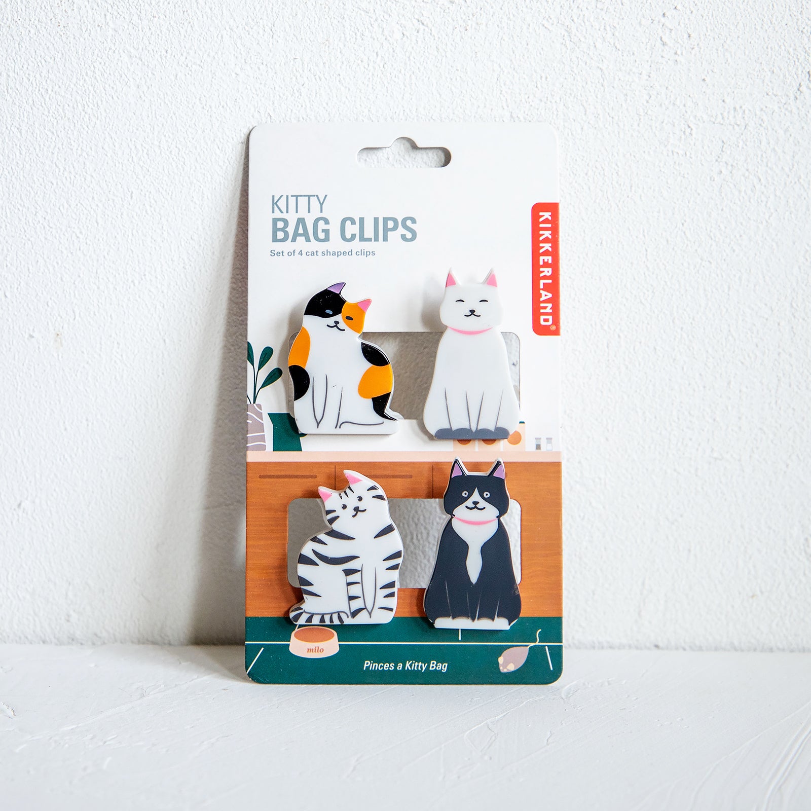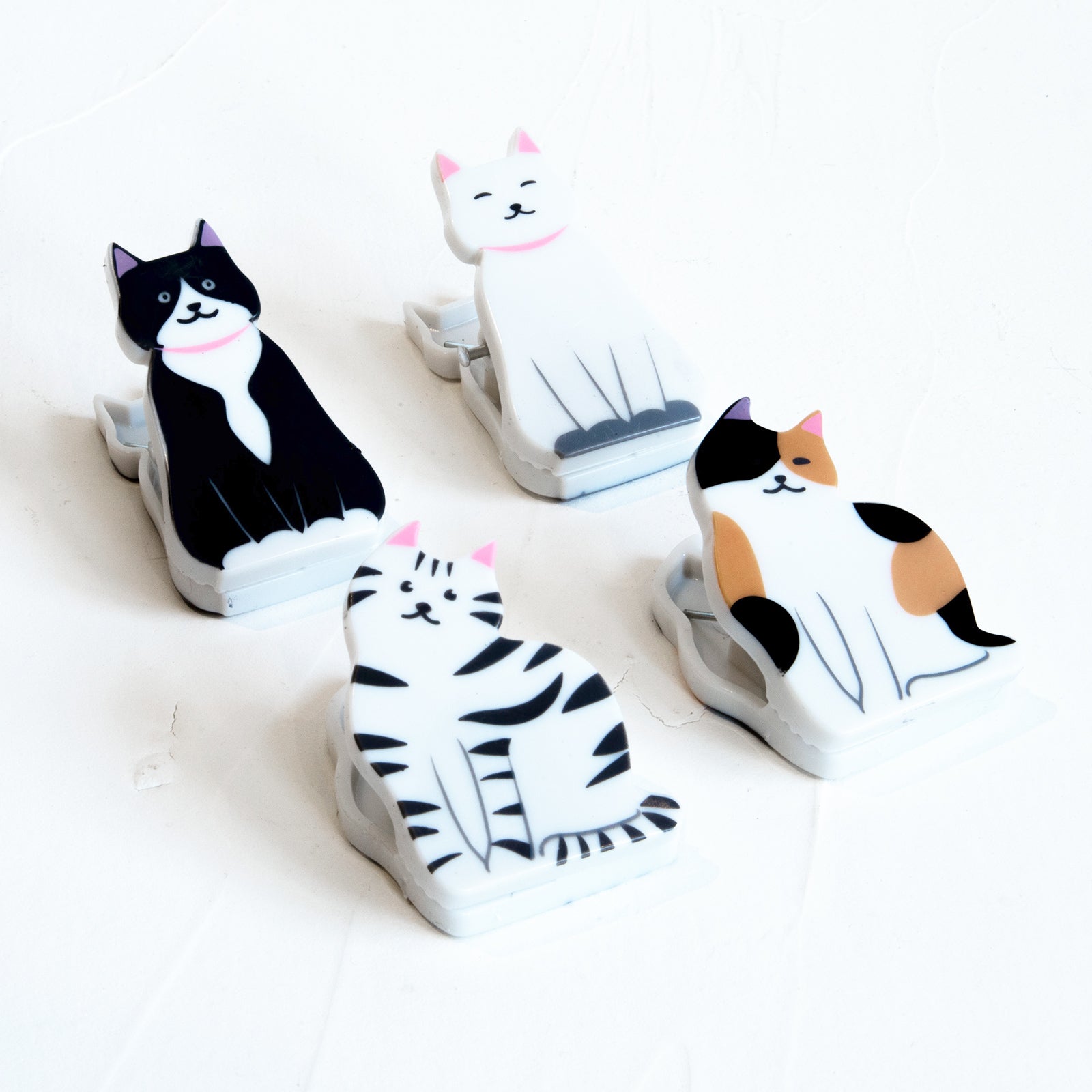 食材やお菓子の袋を留めるのを手伝ってくれる、4匹の猫のバッグクリップセット。