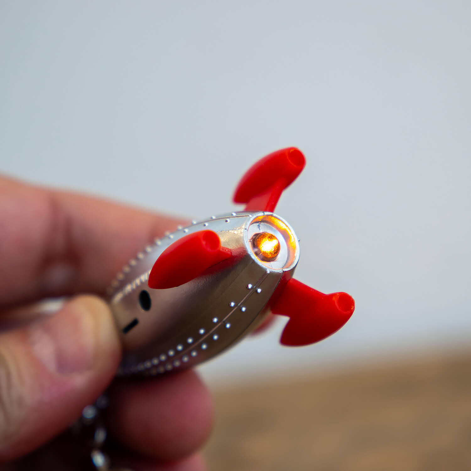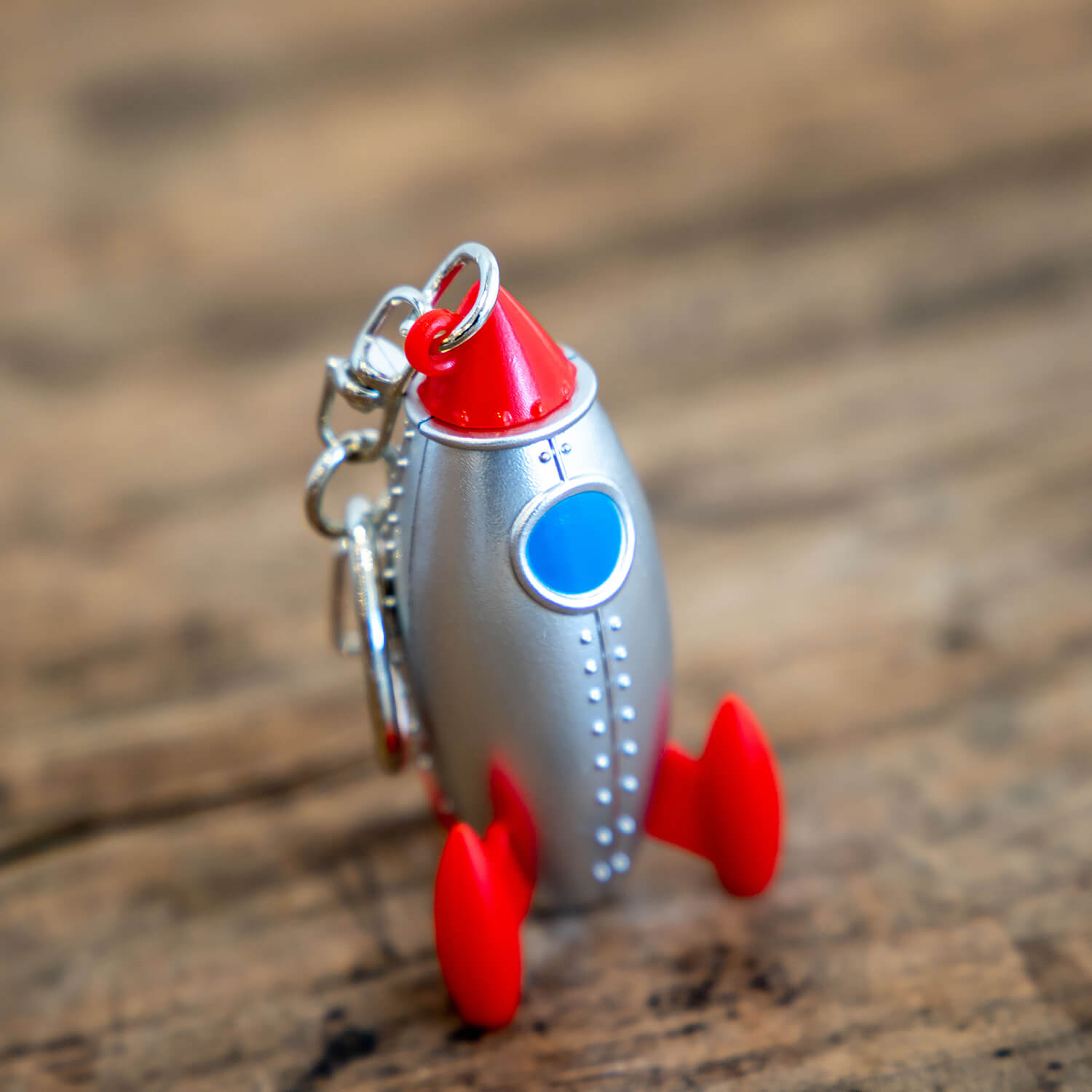 空に飛んでいくロケットを思い浮かべながら遊べるキーチェーン。