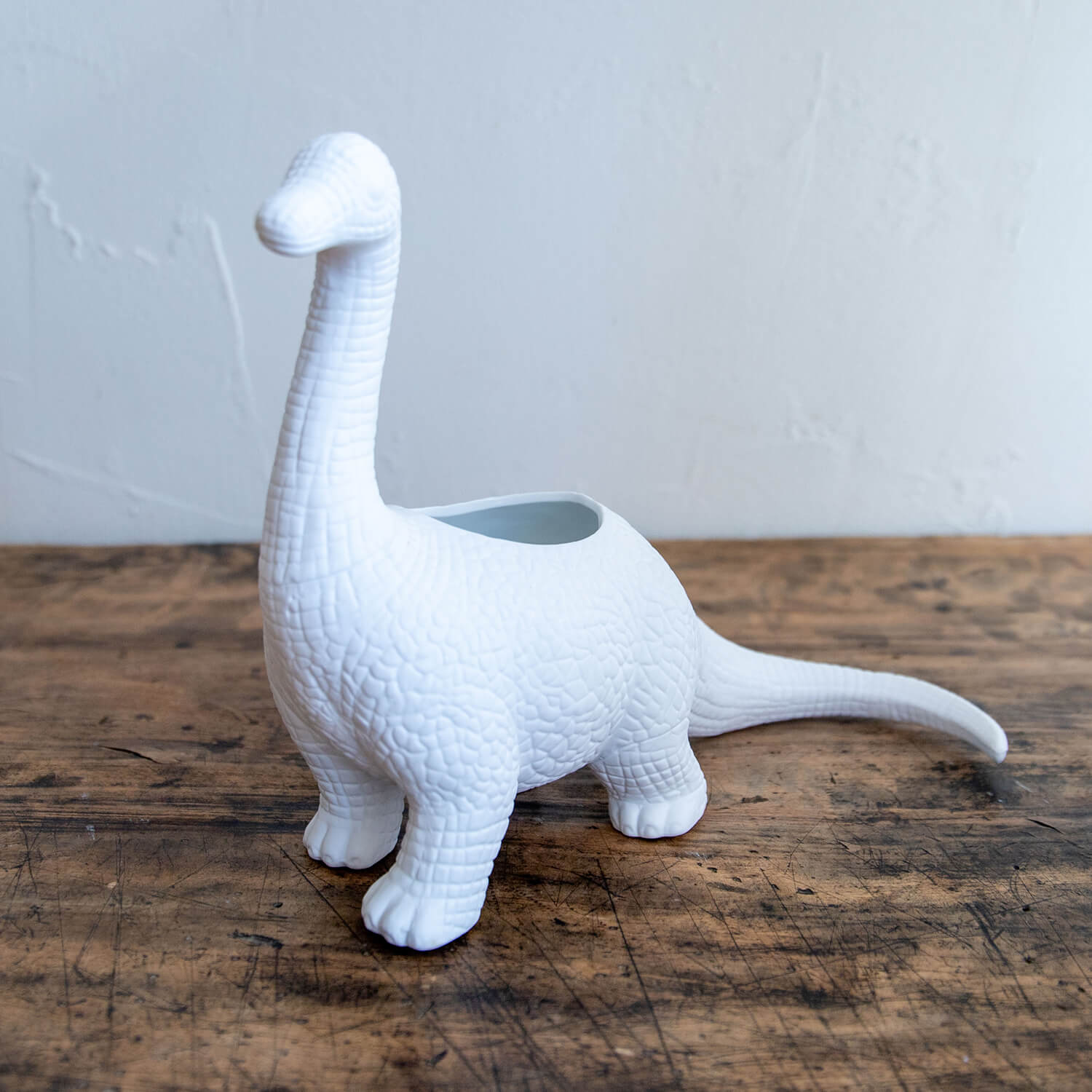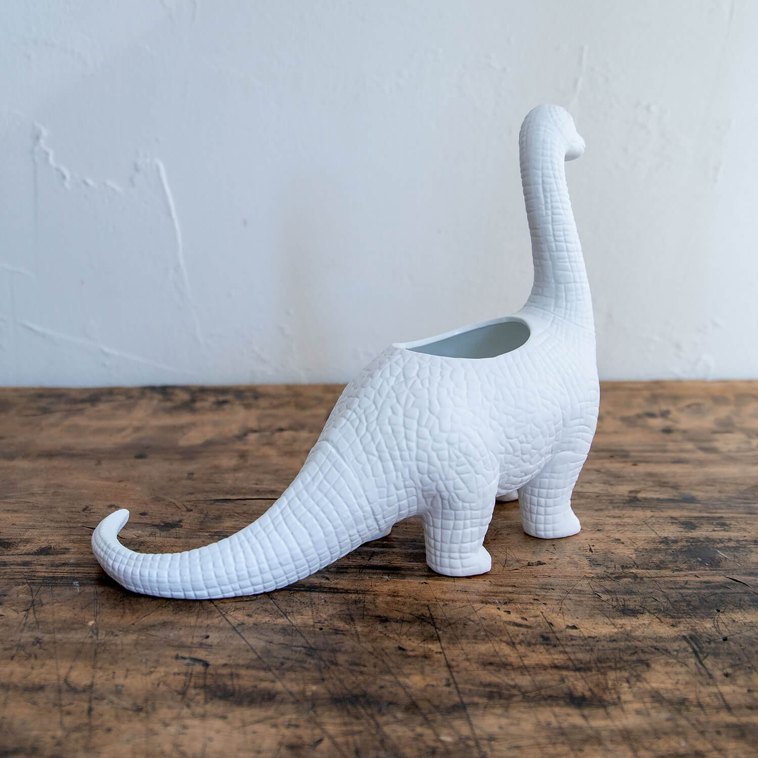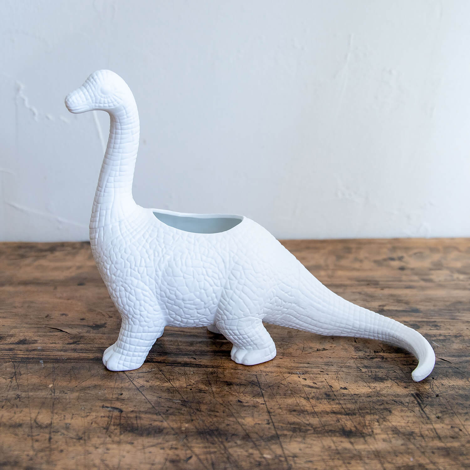 恐竜モチーフのマット仕上げ陶器製プランター。