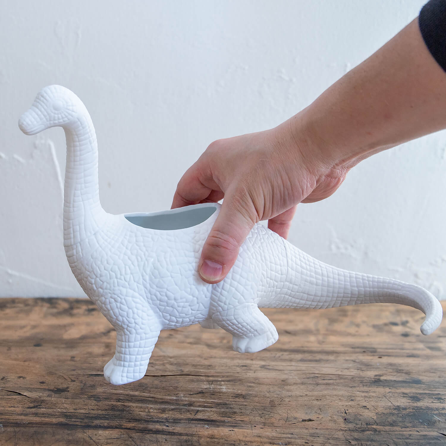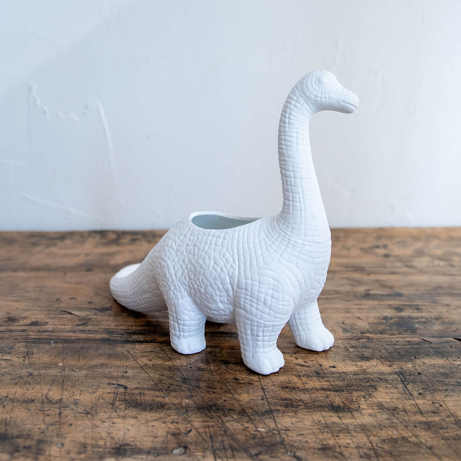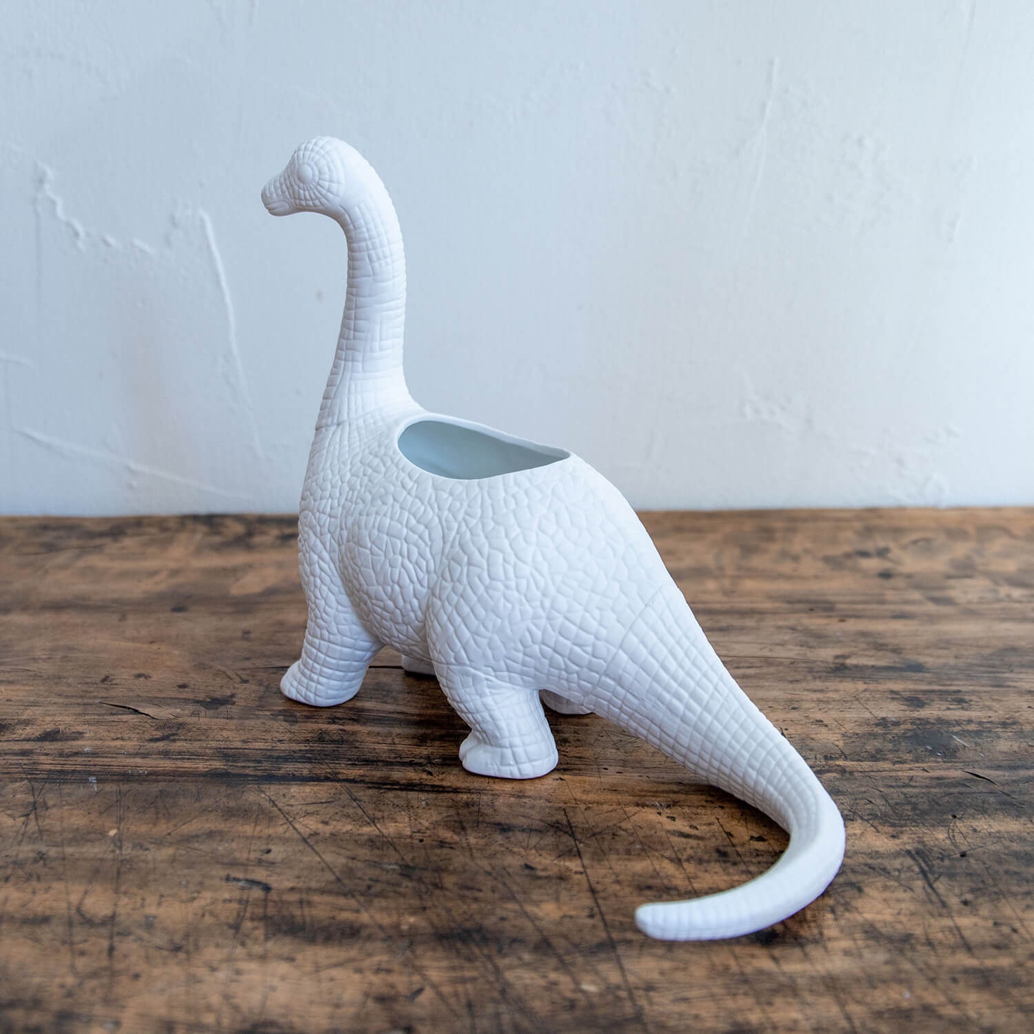 恐竜モチーフのマット仕上げ陶器製プランター。
