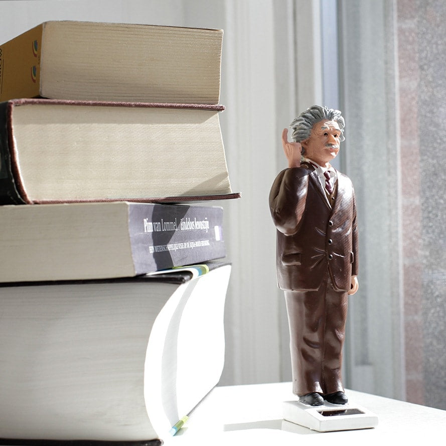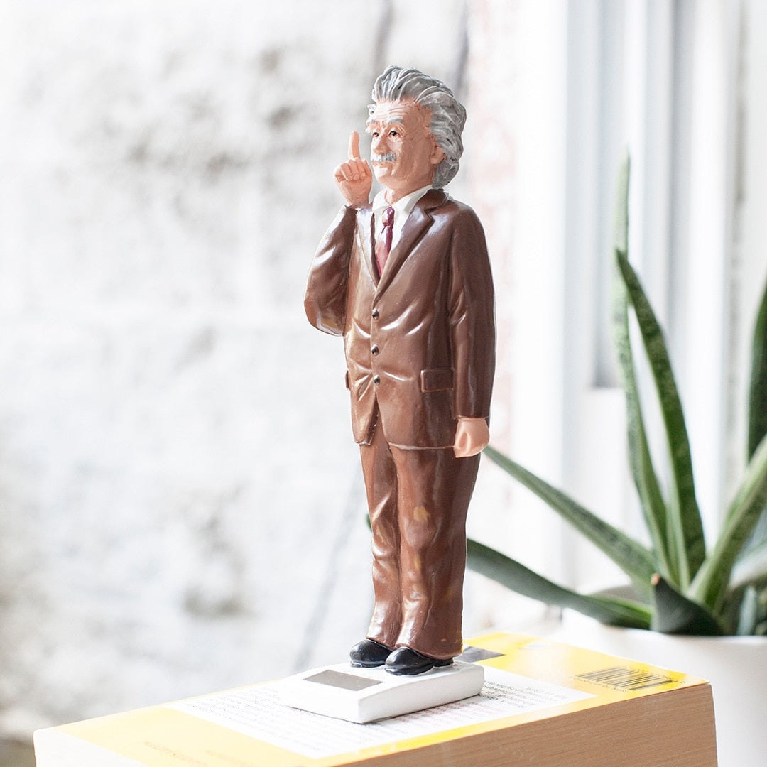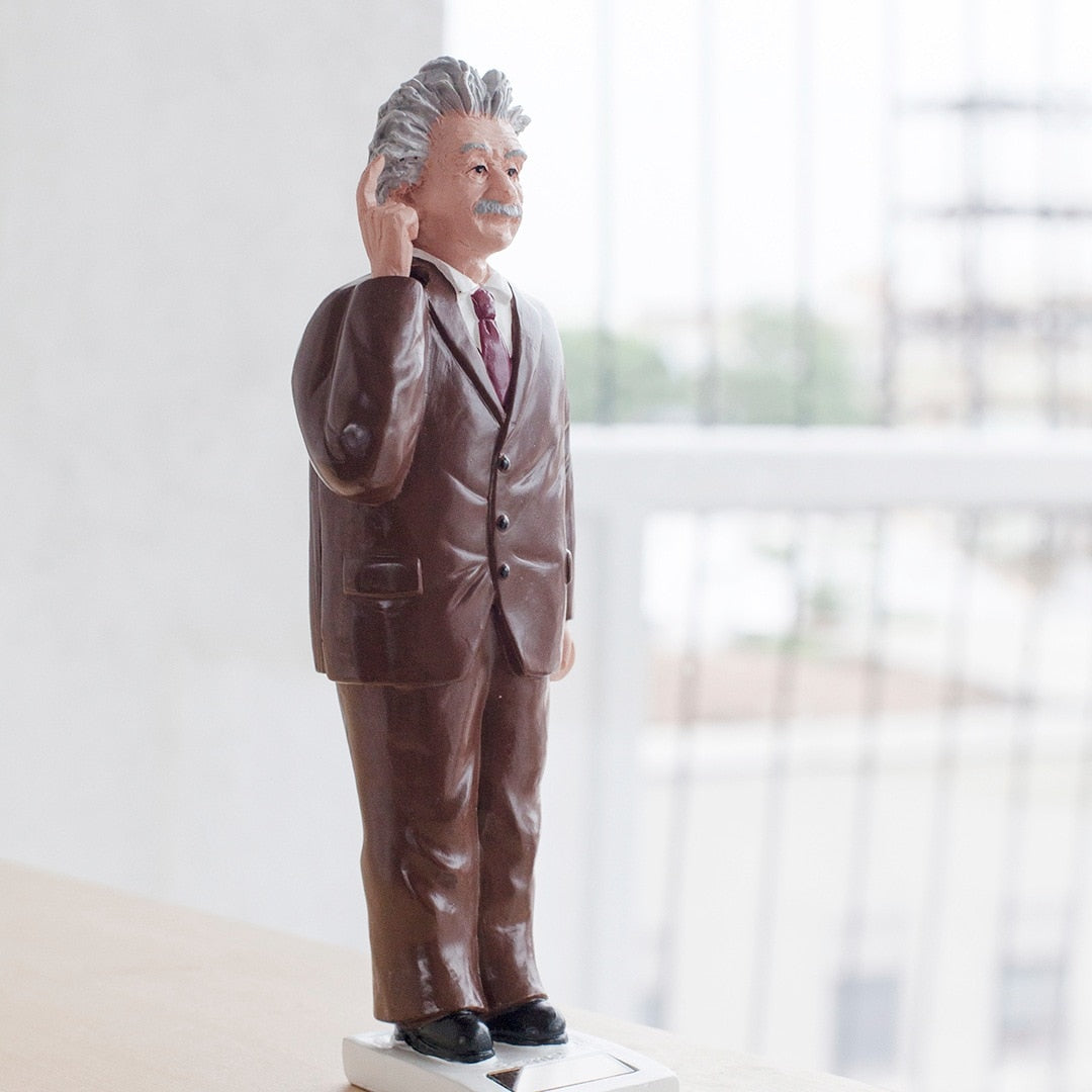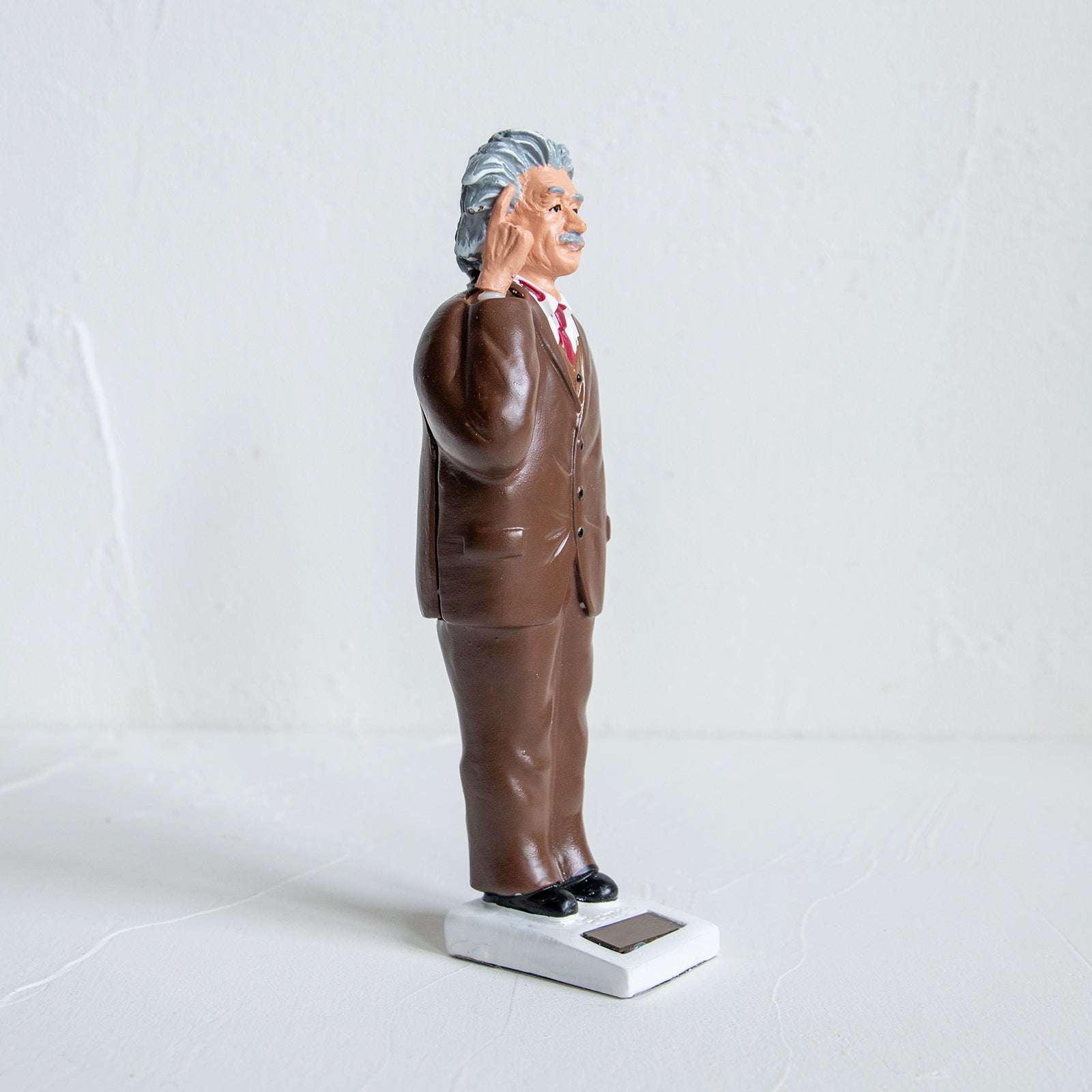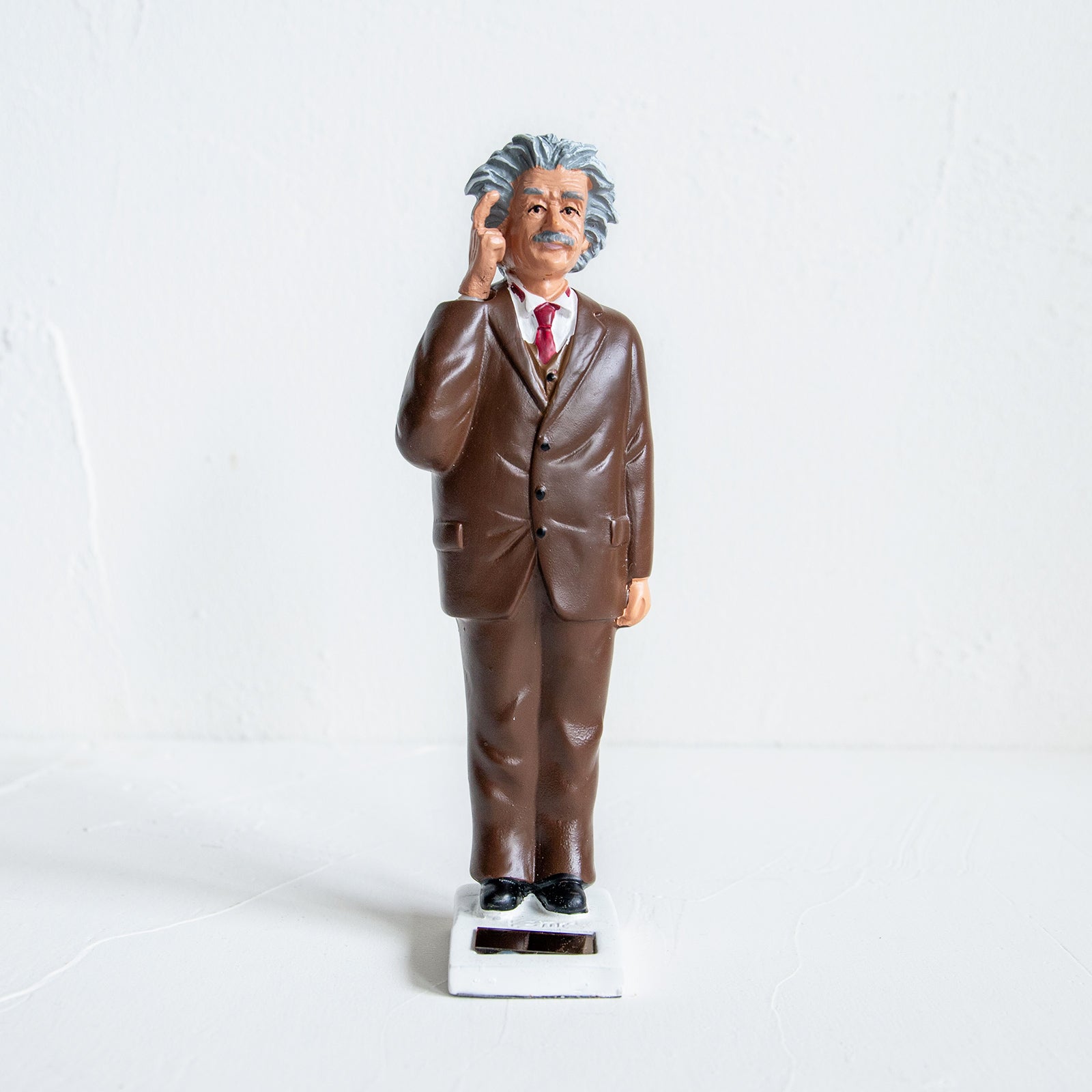 ソーラーパネルに太陽光があたると、何か考える仕草をするアインシュタインのオブジェ。見てるだけでいいひらめきがもらえそう。