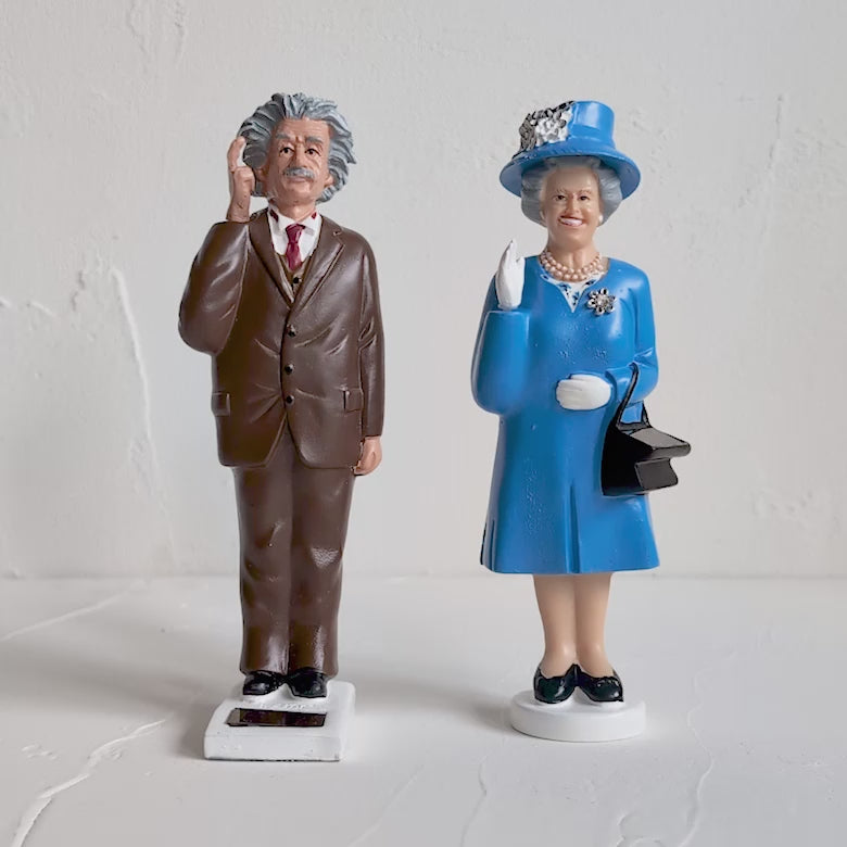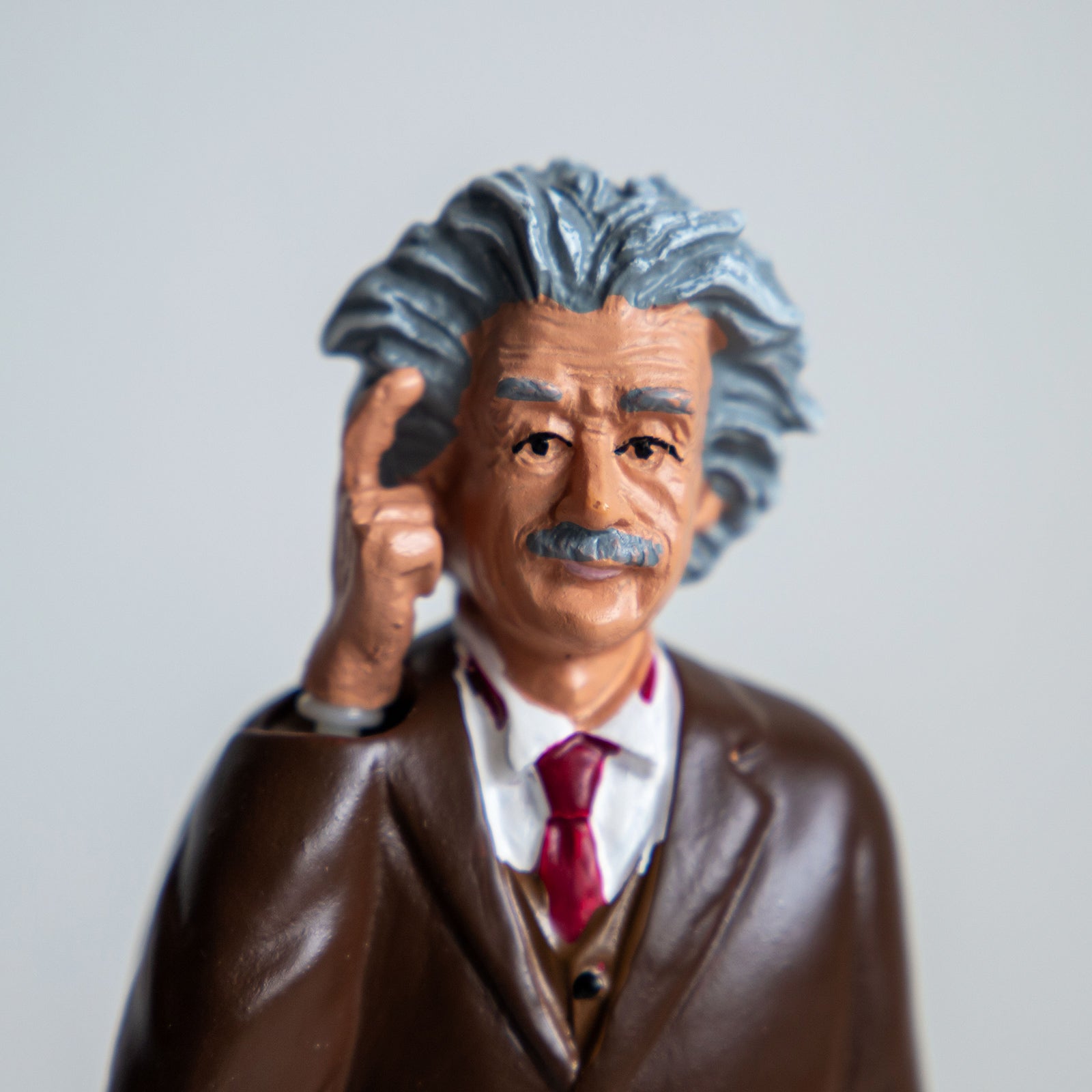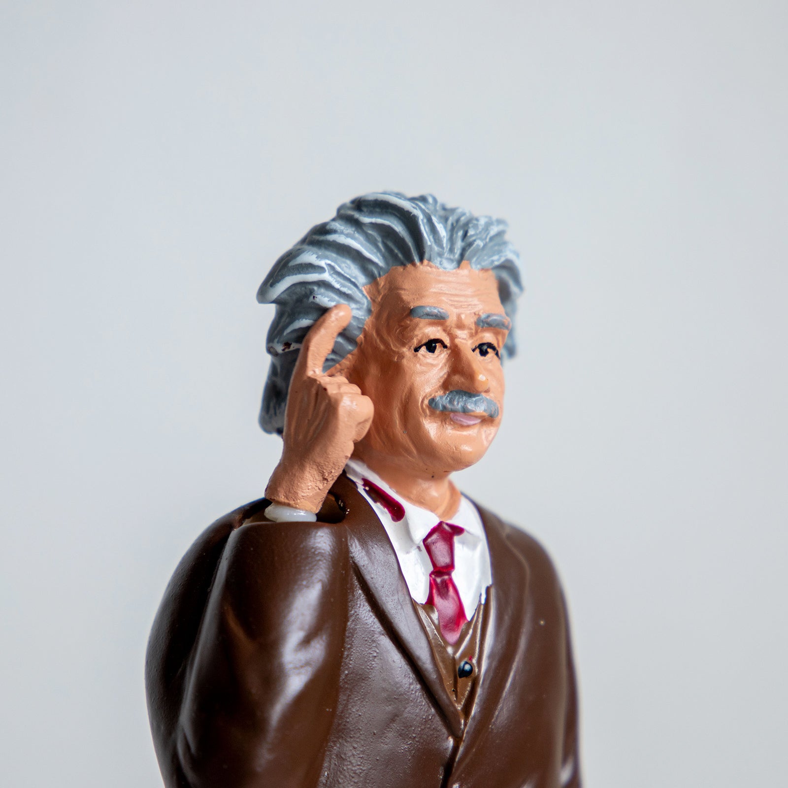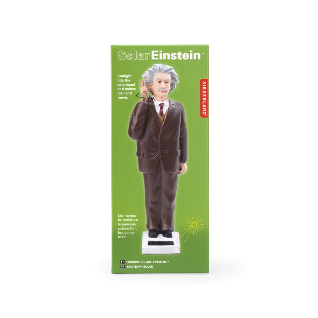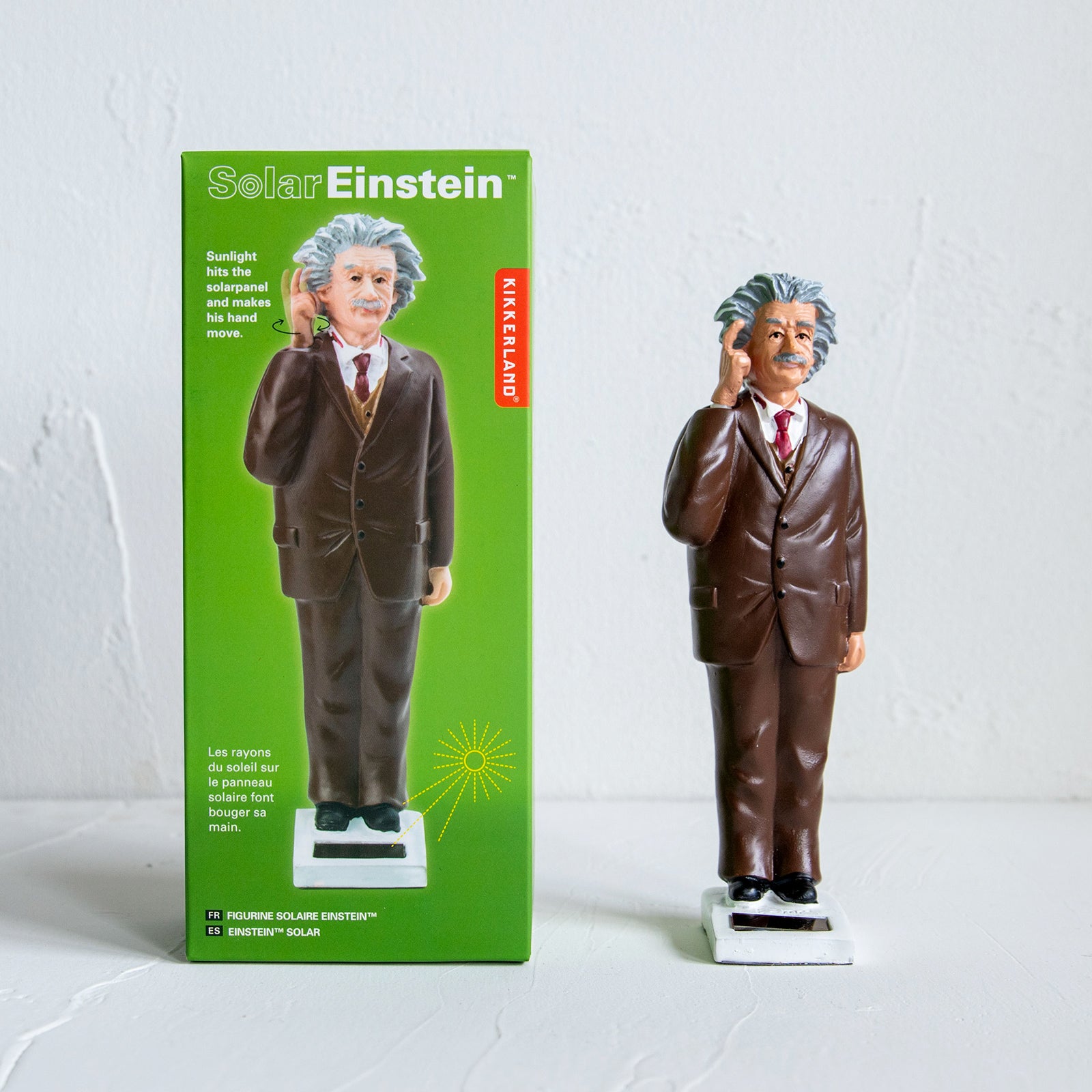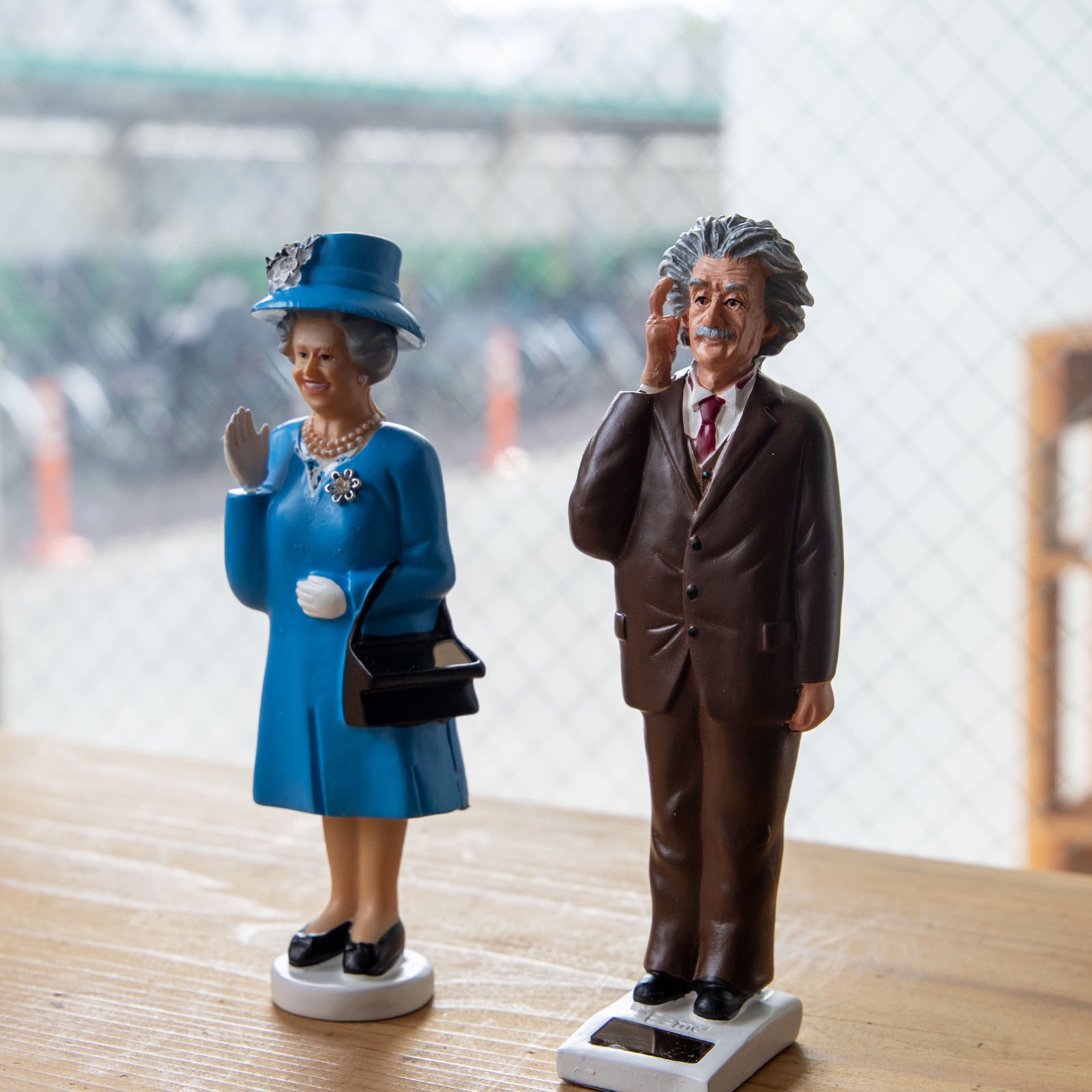 ソーラーパネルに太陽光があたると、何か考える仕草をするアインシュタインのオブジェ。見てるだけでいいひらめきがもらえそう。
