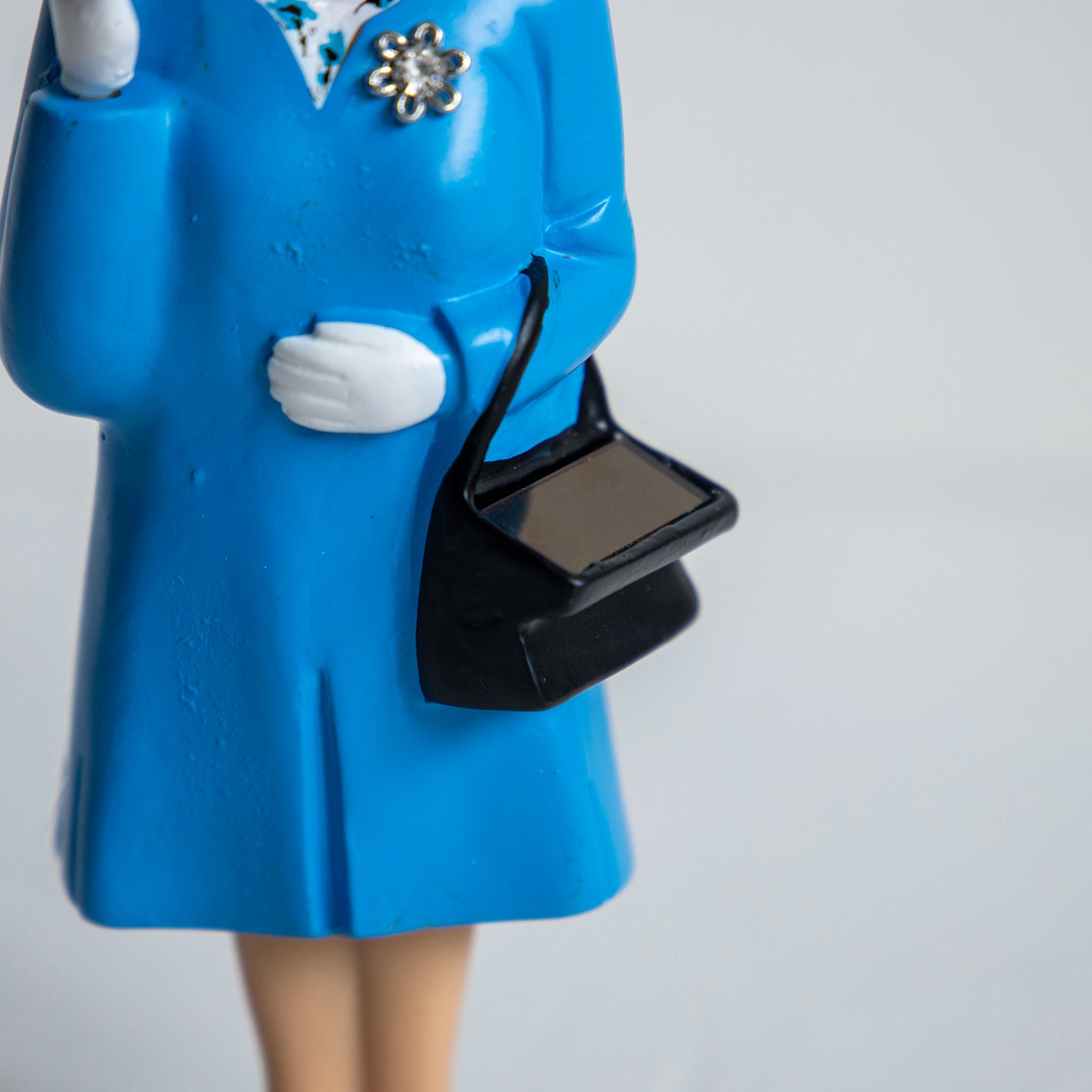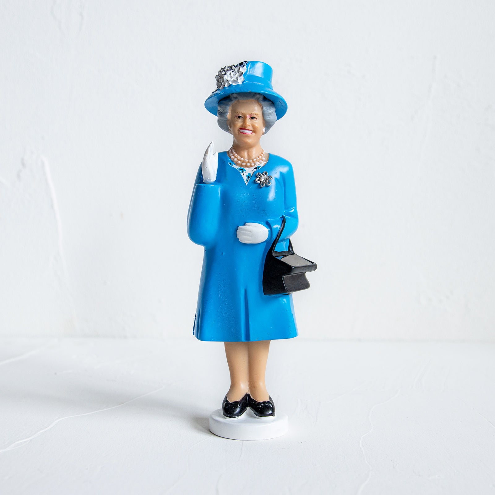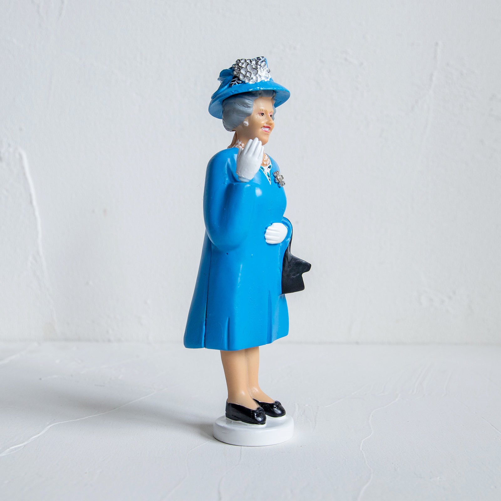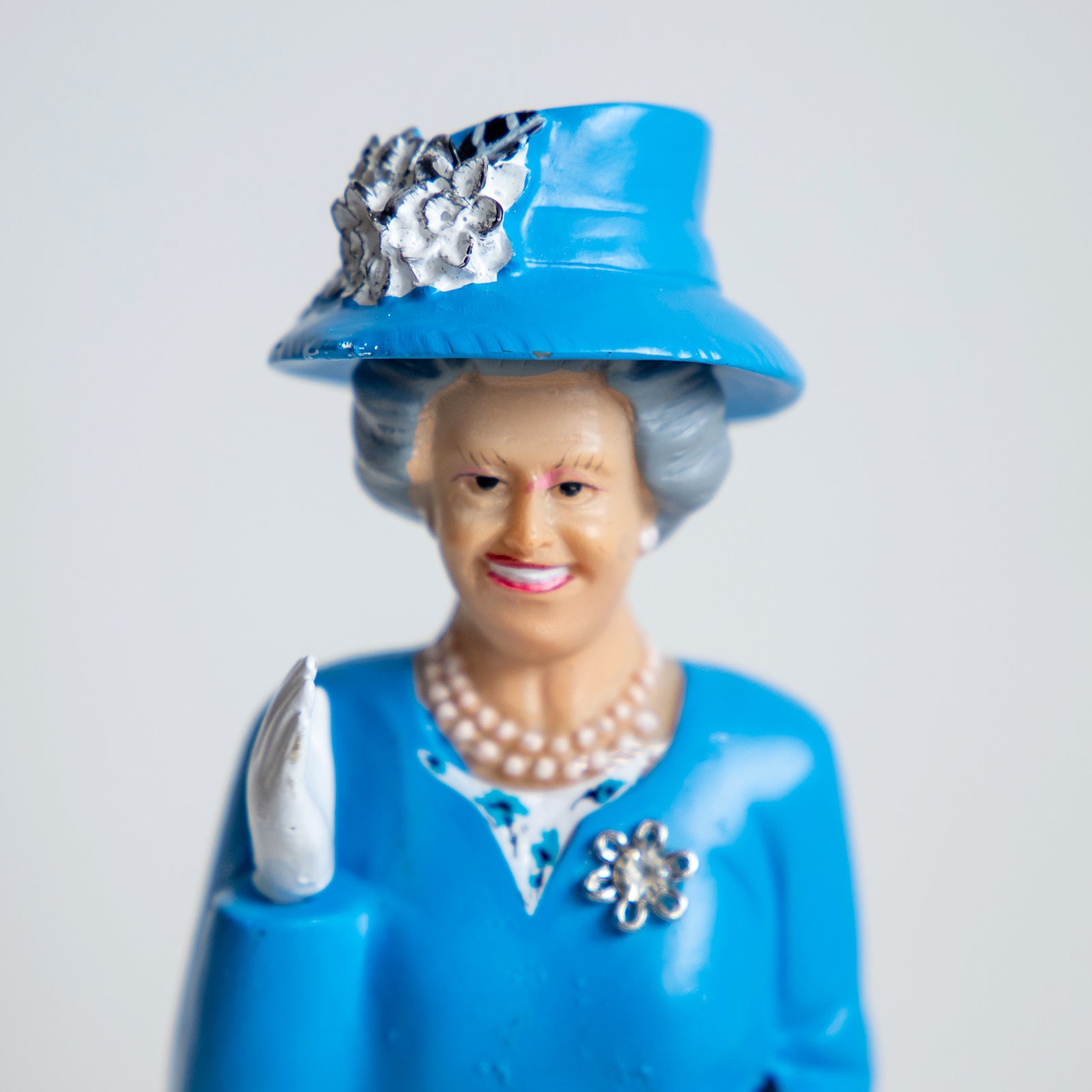 高貴なロイヤルブルーが女王の柔和な笑顔に映えます。