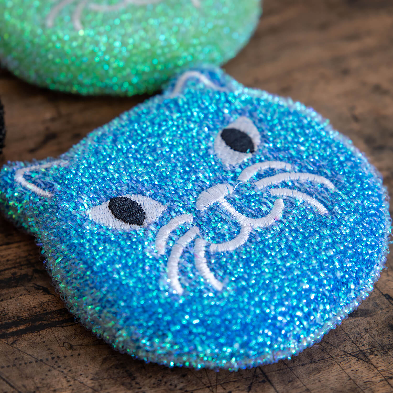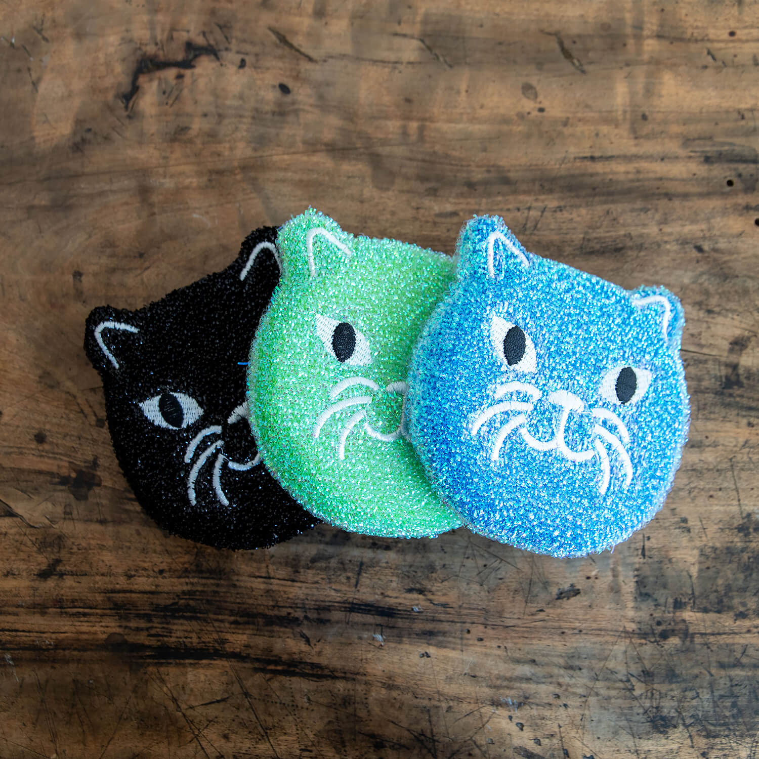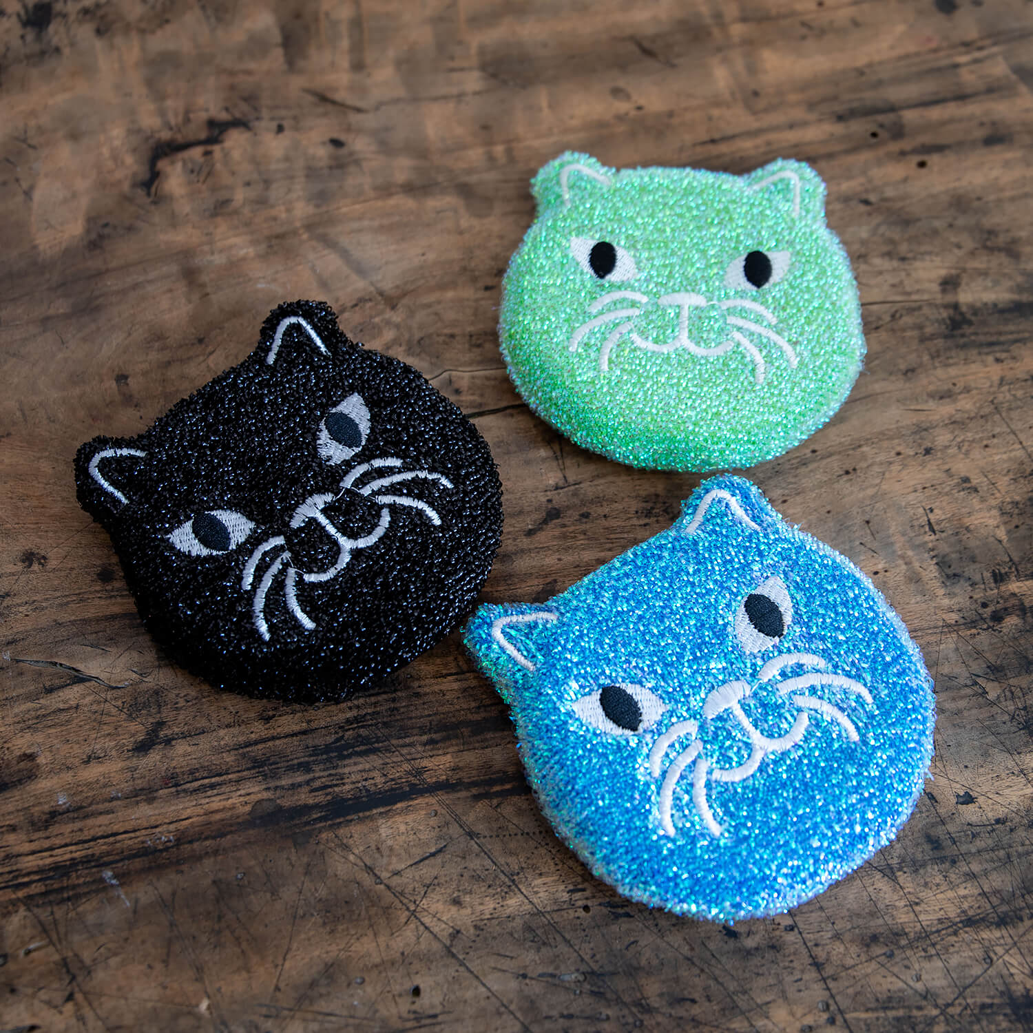 色とりどりの猫モチーフがにぎやかなスポンジセット。カラーはブラック、グリーン、ブルーの3色セット。置いておくだけでもキッチンが楽しげな雰囲気に。
