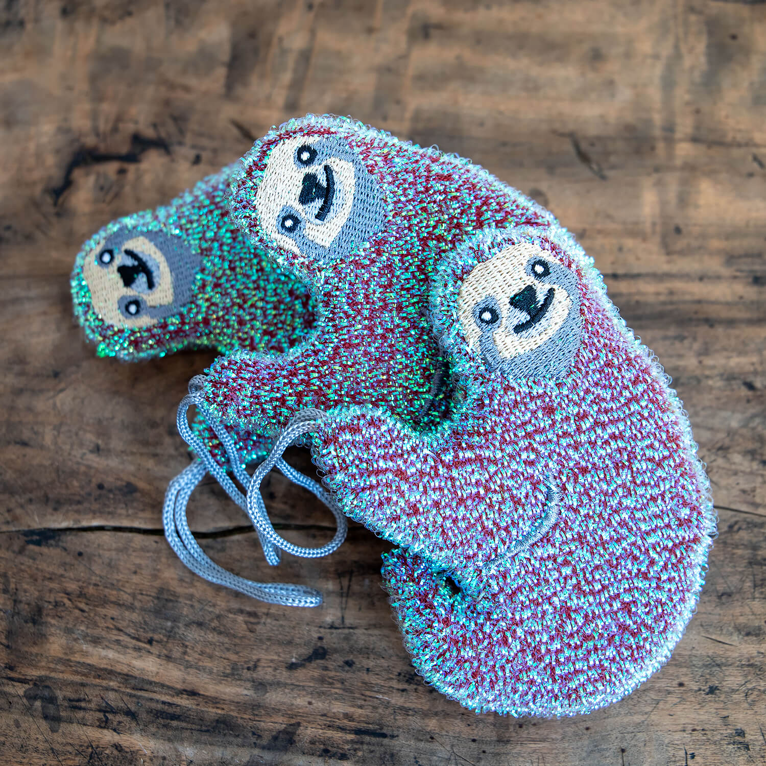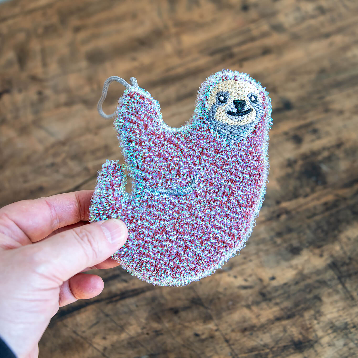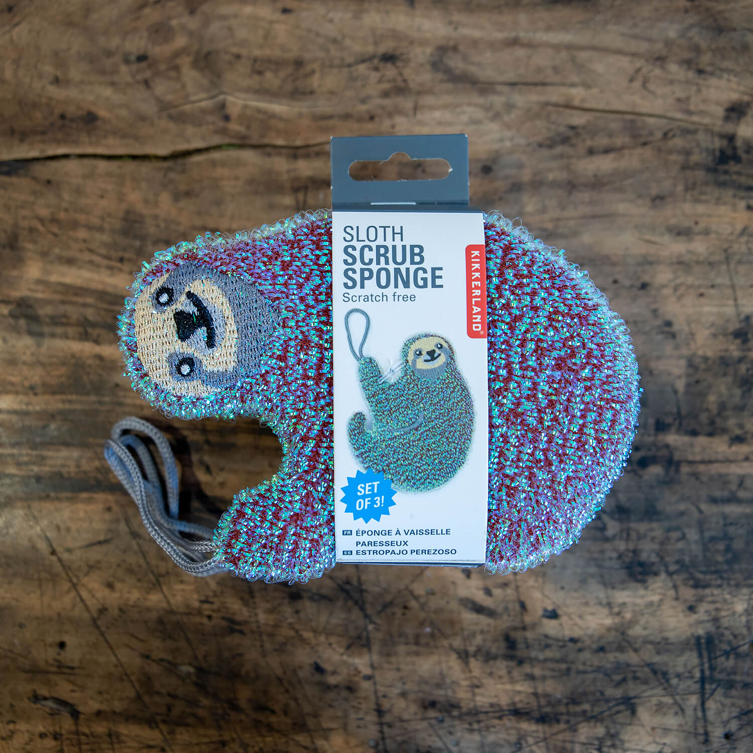 ぶら下がる様子が非常にかわいらしいナマケモノモチーフのスポンジ3個セット。置いておくだけでもキッチンが楽しげな雰囲気に。
