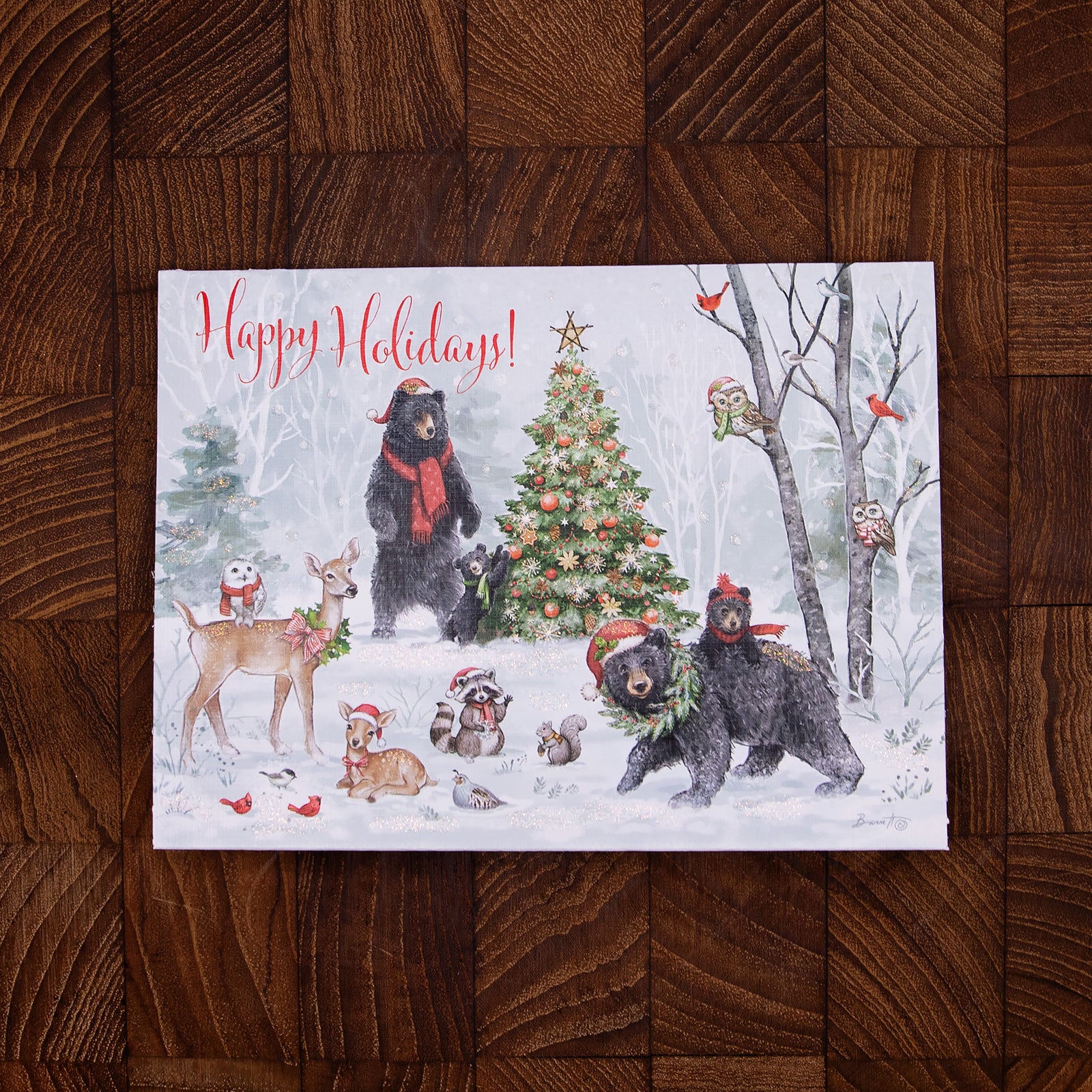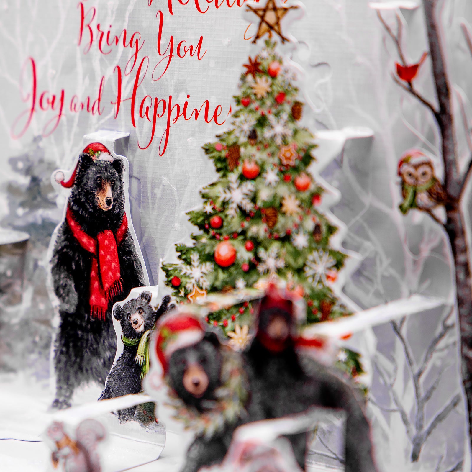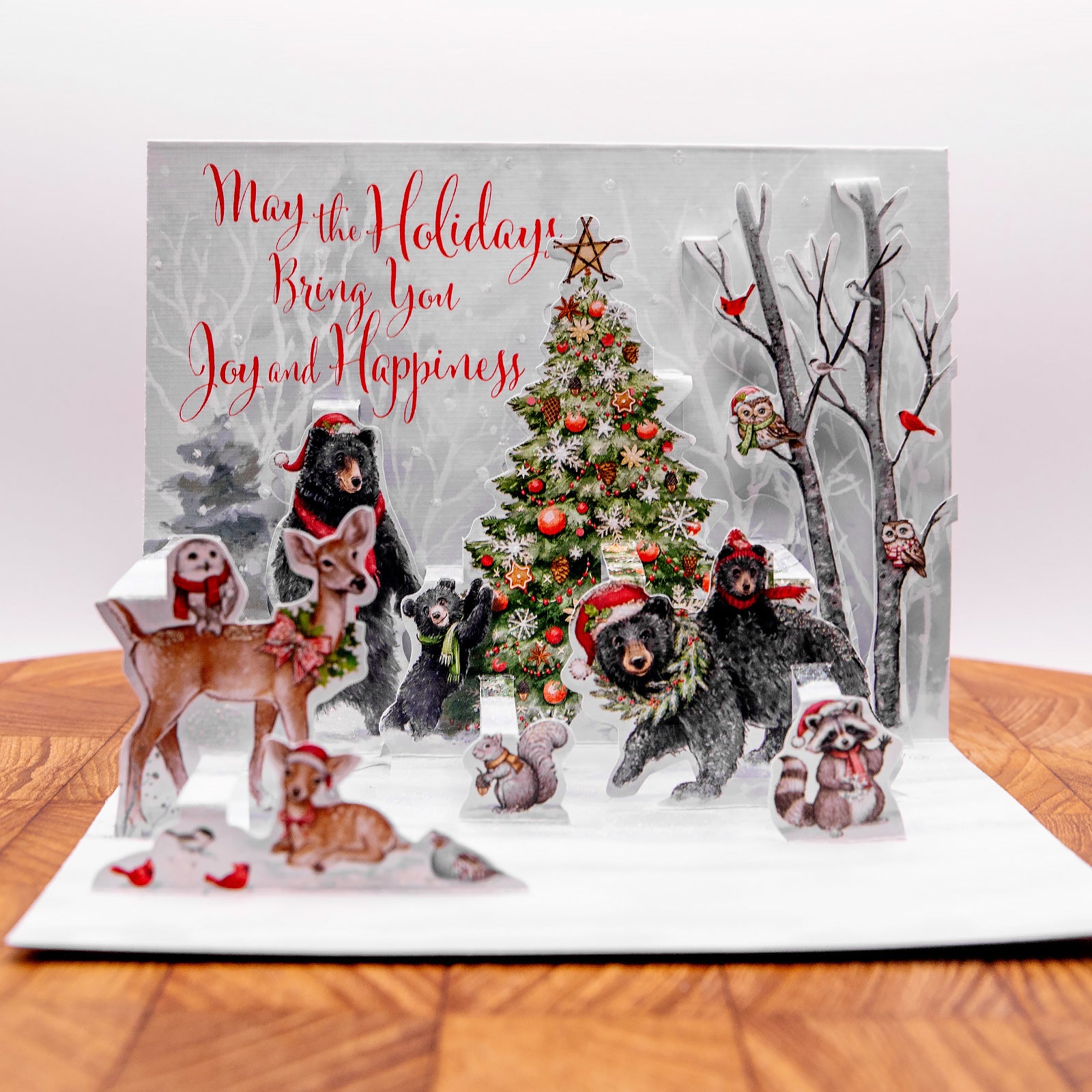 LANG社 クリスマスPOP-UP グリッターつきグリーティングカード カラーデザイン封筒付き Woodland Winter
