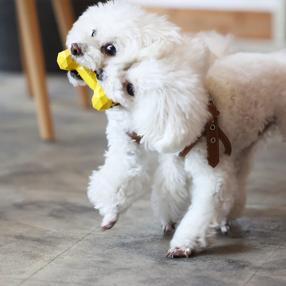 この「ポリゴンボーン」は、硬すぎず・柔らかすぎず、ワンちゃんが夢中になる“ちょうどいい噛みごたえ”を追求したおもちゃです。