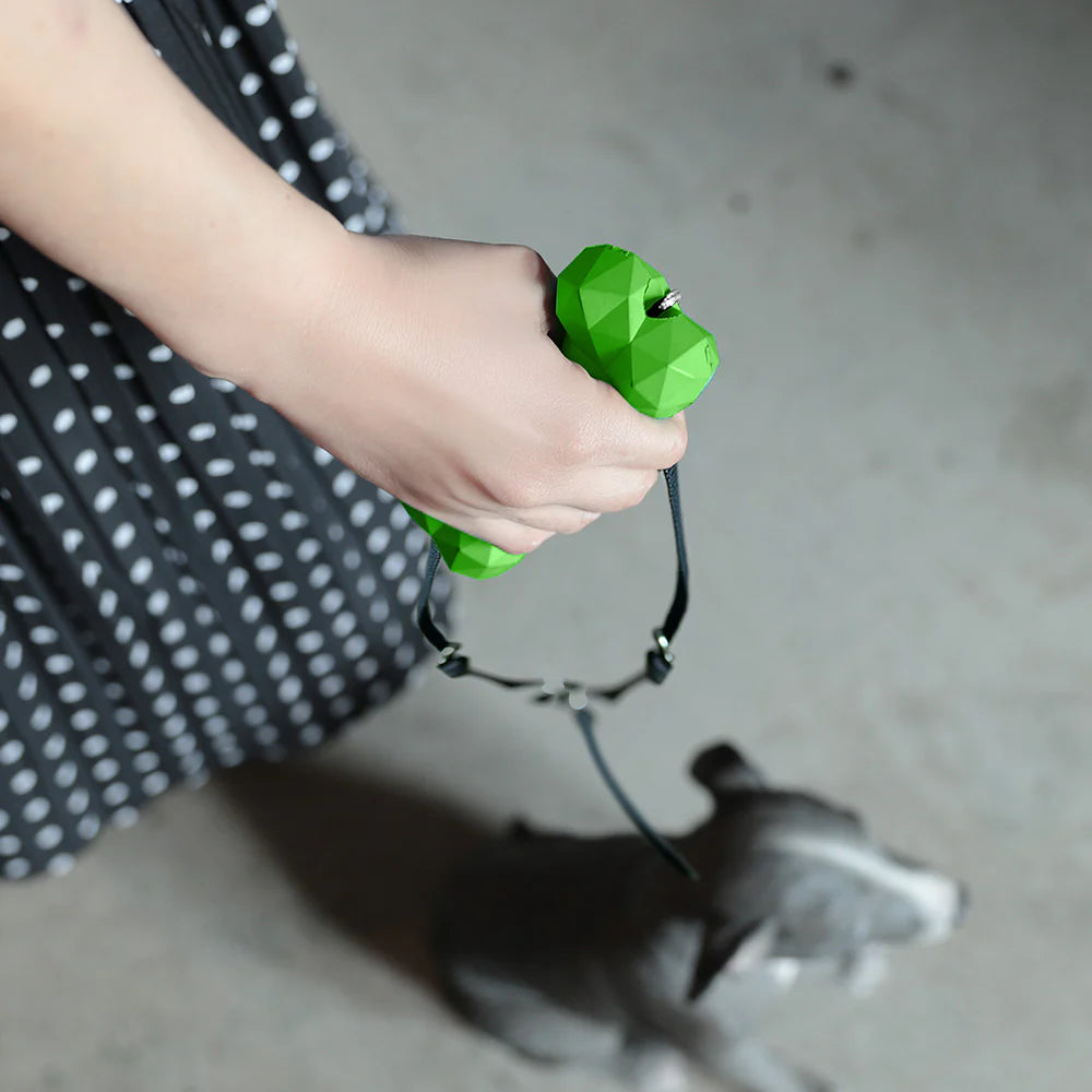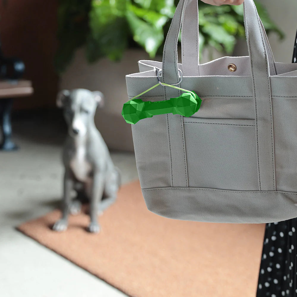 穴にリード・カラビナ・ヒモを通せば、お散歩バッグやベルトループにぶら下げて持ち運びOK。