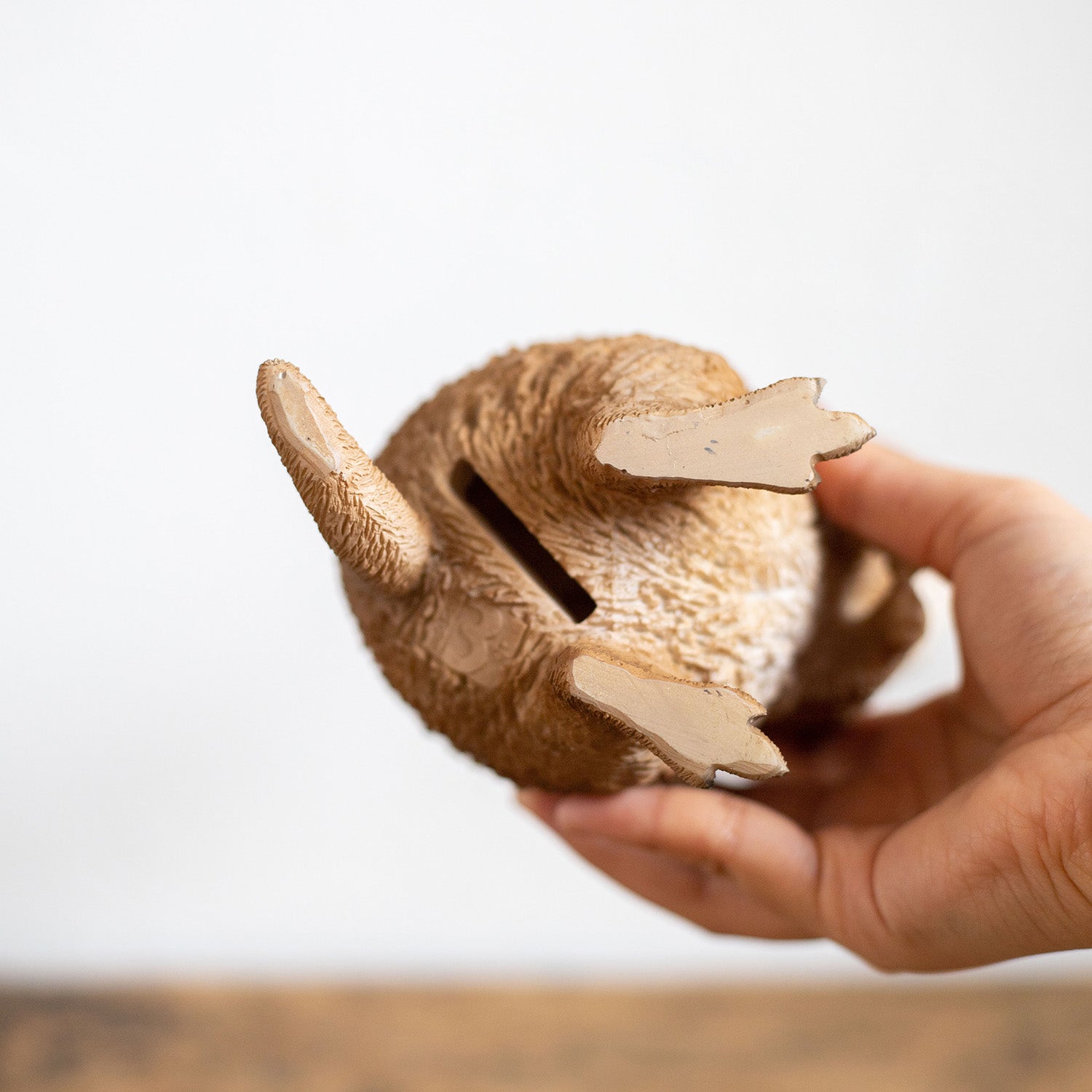 なんともいえない可愛い笑顔で思わずこちらも笑顔になってしまう癒し系貯金箱。