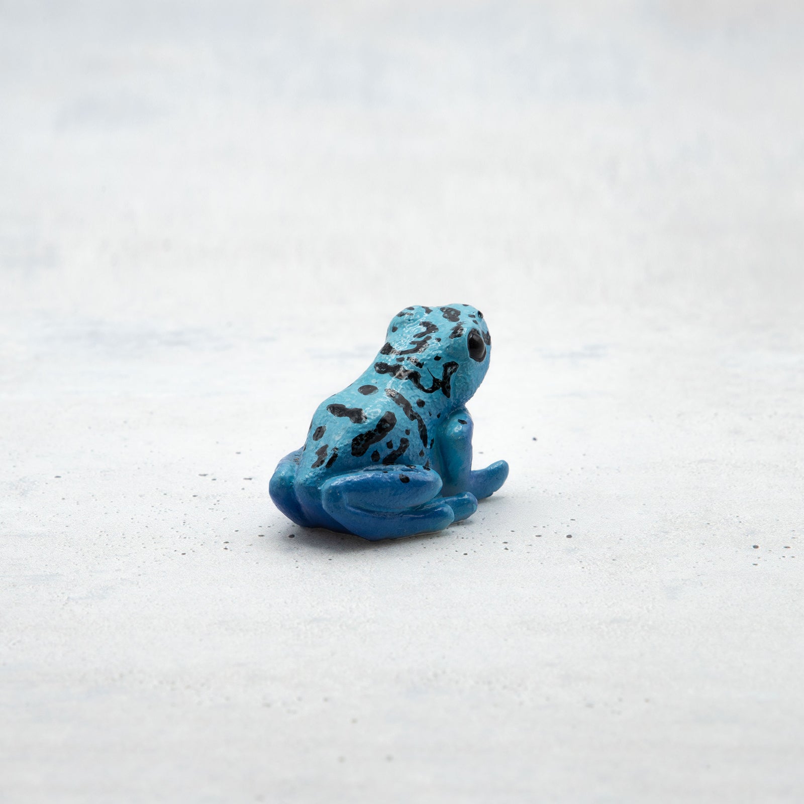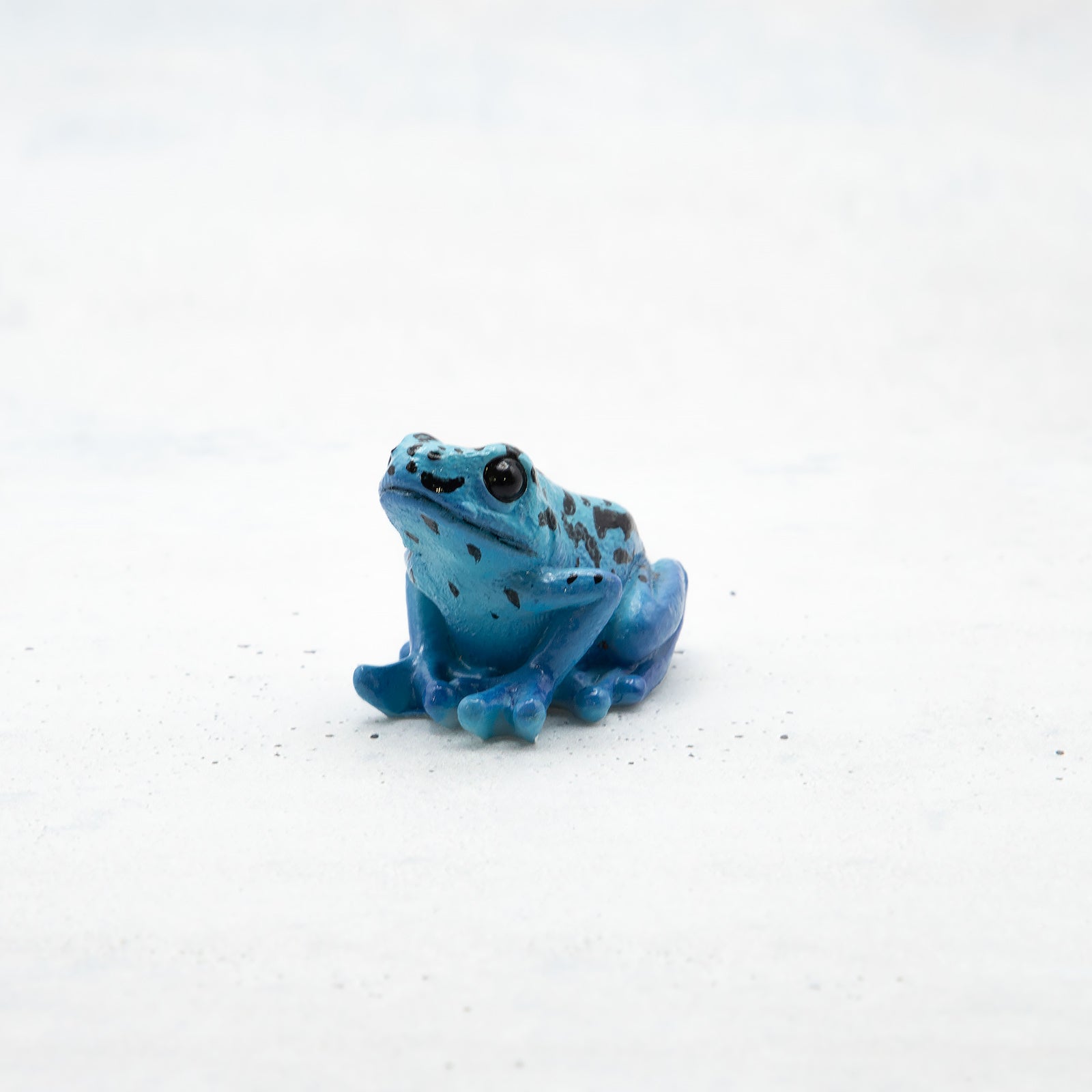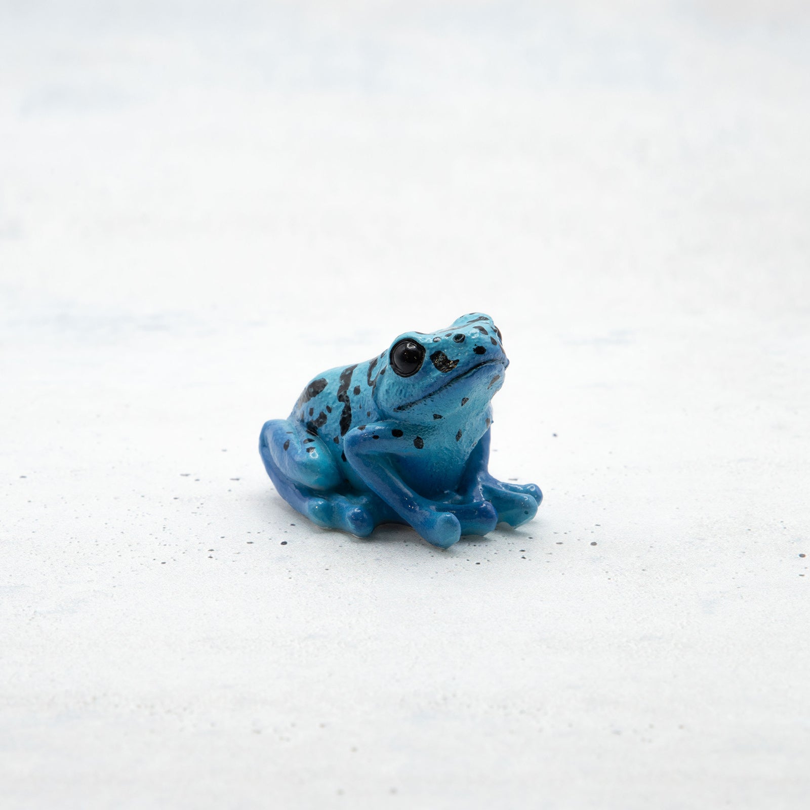 こちらのヤドクガエルは、色鮮やかな青色の体に黒いマダラ模様が特徴のコバルトヤドクガエル。非常に美しいカエルであると認識されるヤドクガエルの仲間を代表となるような小型のヤドクガエルです。