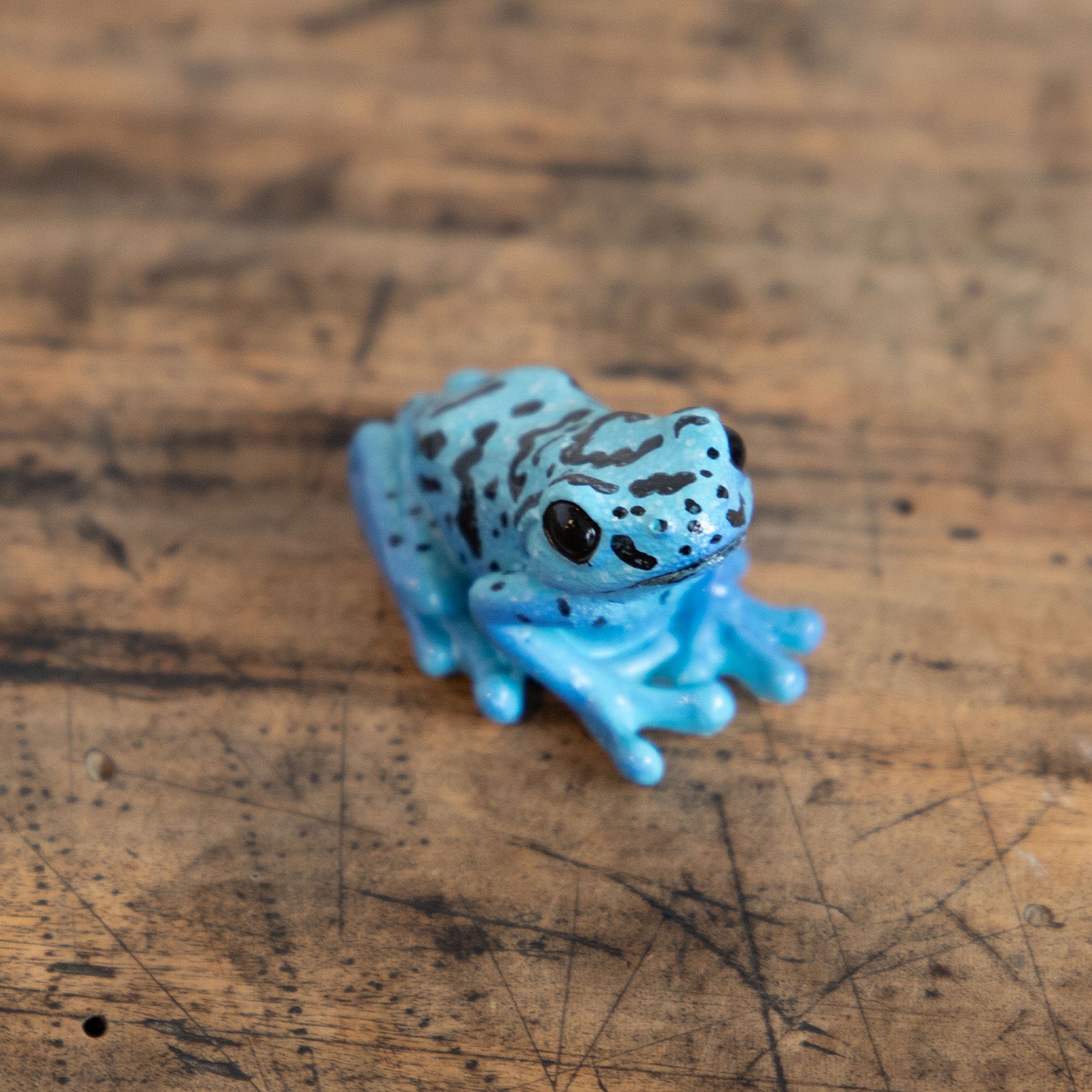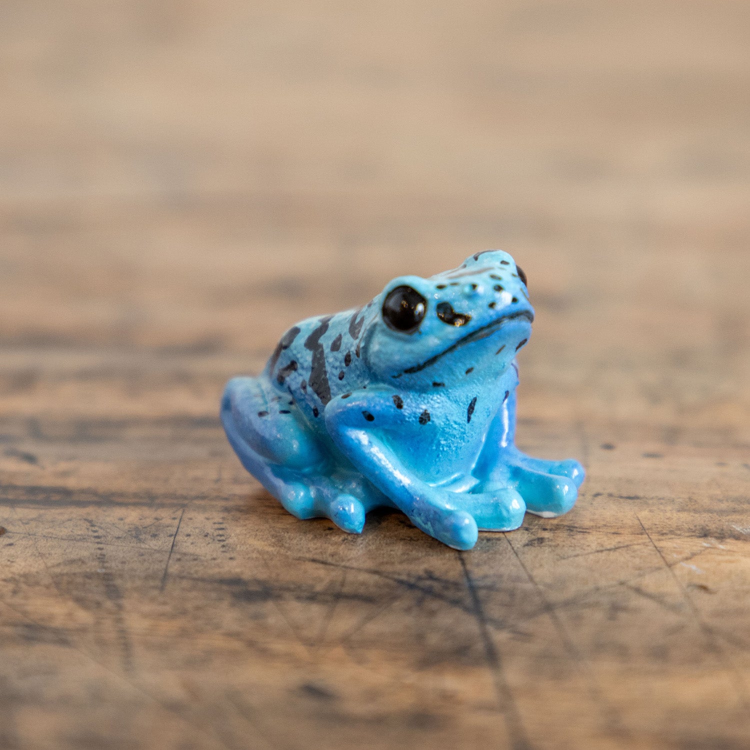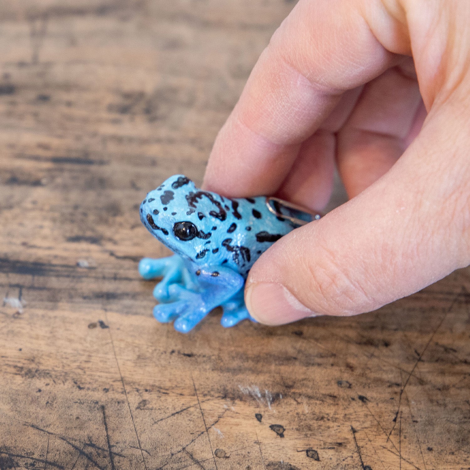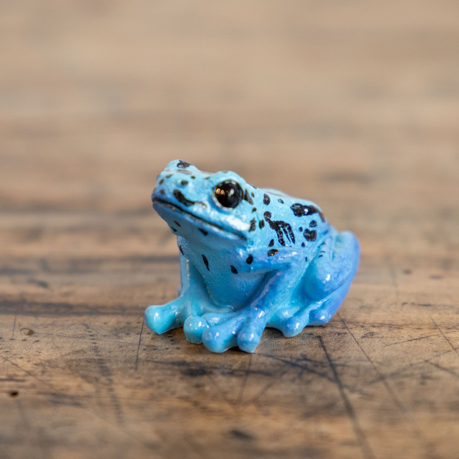 こちらのヤドクガエルは、色鮮やかな青色の体に黒いマダラ模様が特徴のコバルトヤドクガエル。非常に美しいカエルであると認識されるヤドクガエルの仲間を代表となるような小型のヤドクガエルです。