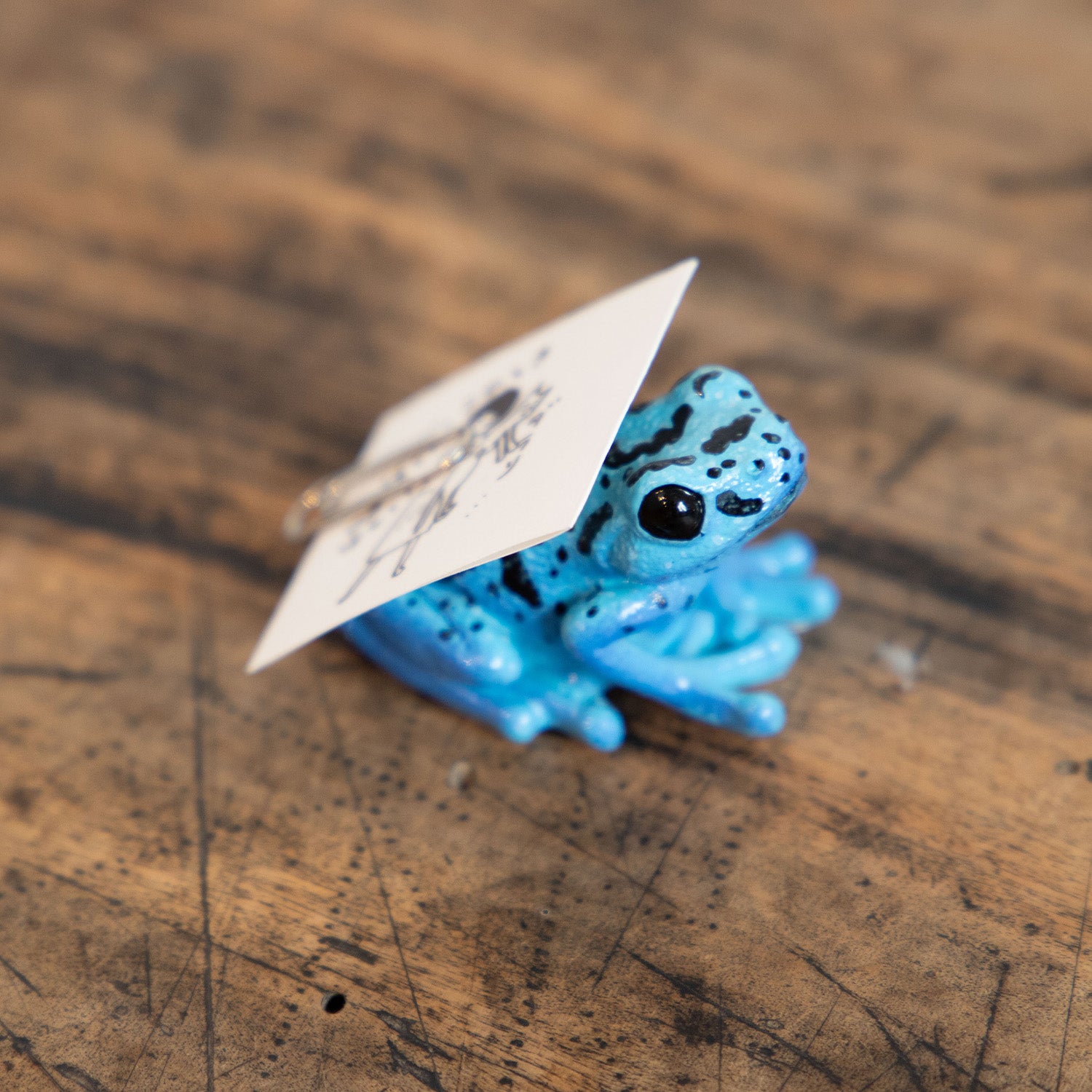 実際の野生のヤドクガエルは触ることすらできない猛毒の持ち主なので恐ろしいですが、それでもお好きな方はぜひこちらのマグネットで!! 毒の心配もないし、とってもカラフルで可愛いのでいつも側に置いときたくなります。