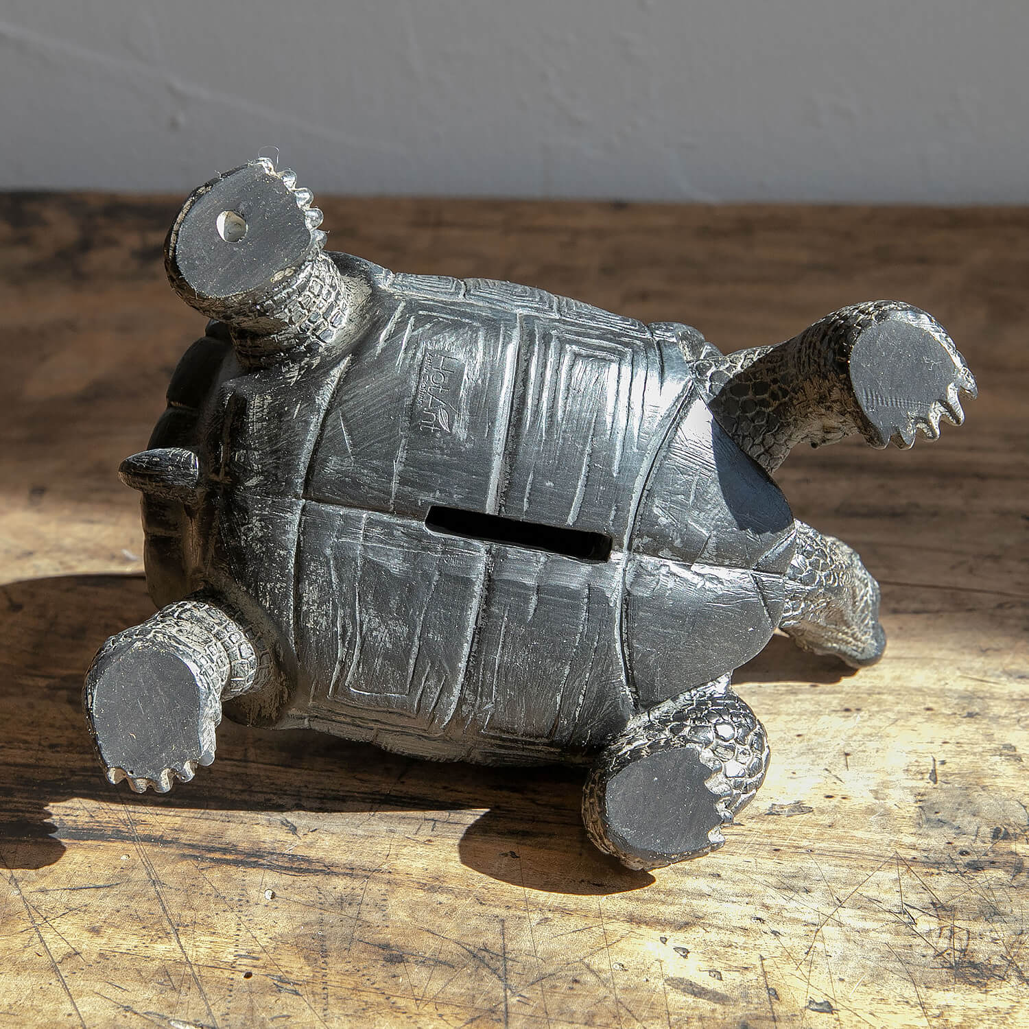 甲長は1mを超える個体もいて、陸地の砂漠などに住んでいて、ほとんど水には入りません。体が大きい事と足がゾウの足にそっくりなことからゾウガメと名づけられました。実際には巨大なので動物園などでしかお目にかかることはできませんが、この貯金箱ならいつでも側に置いとけます。
