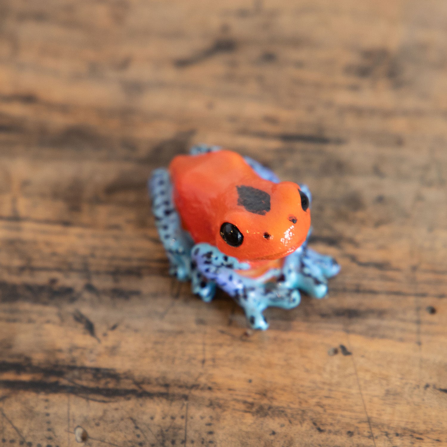 こちらのヤドクガエルは、全身が赤からオレンジ色であったり、四肢が青いというような体色がよく知られているイチゴヤドクガエル。非常に美しいカエルであると認識されるヤドクガエルの仲間を代表となるような小型のヤドクガエルです。