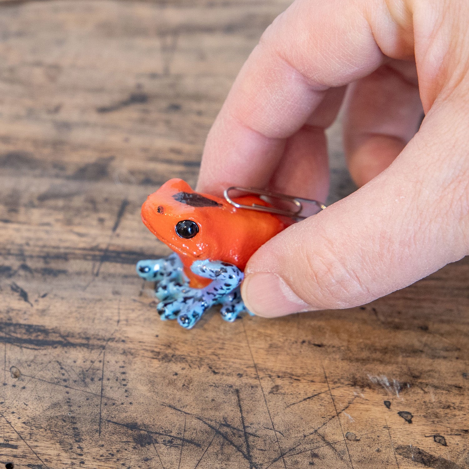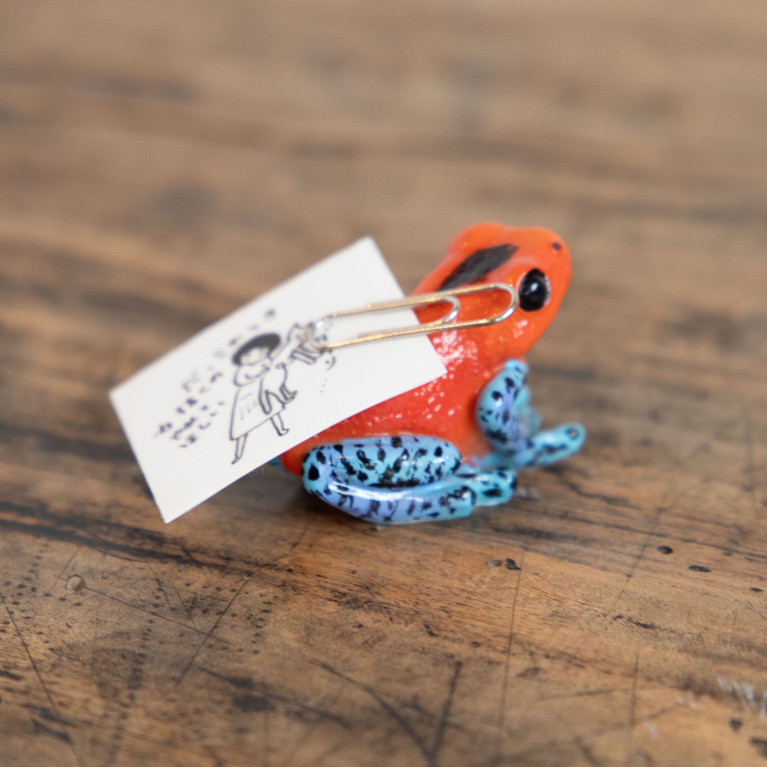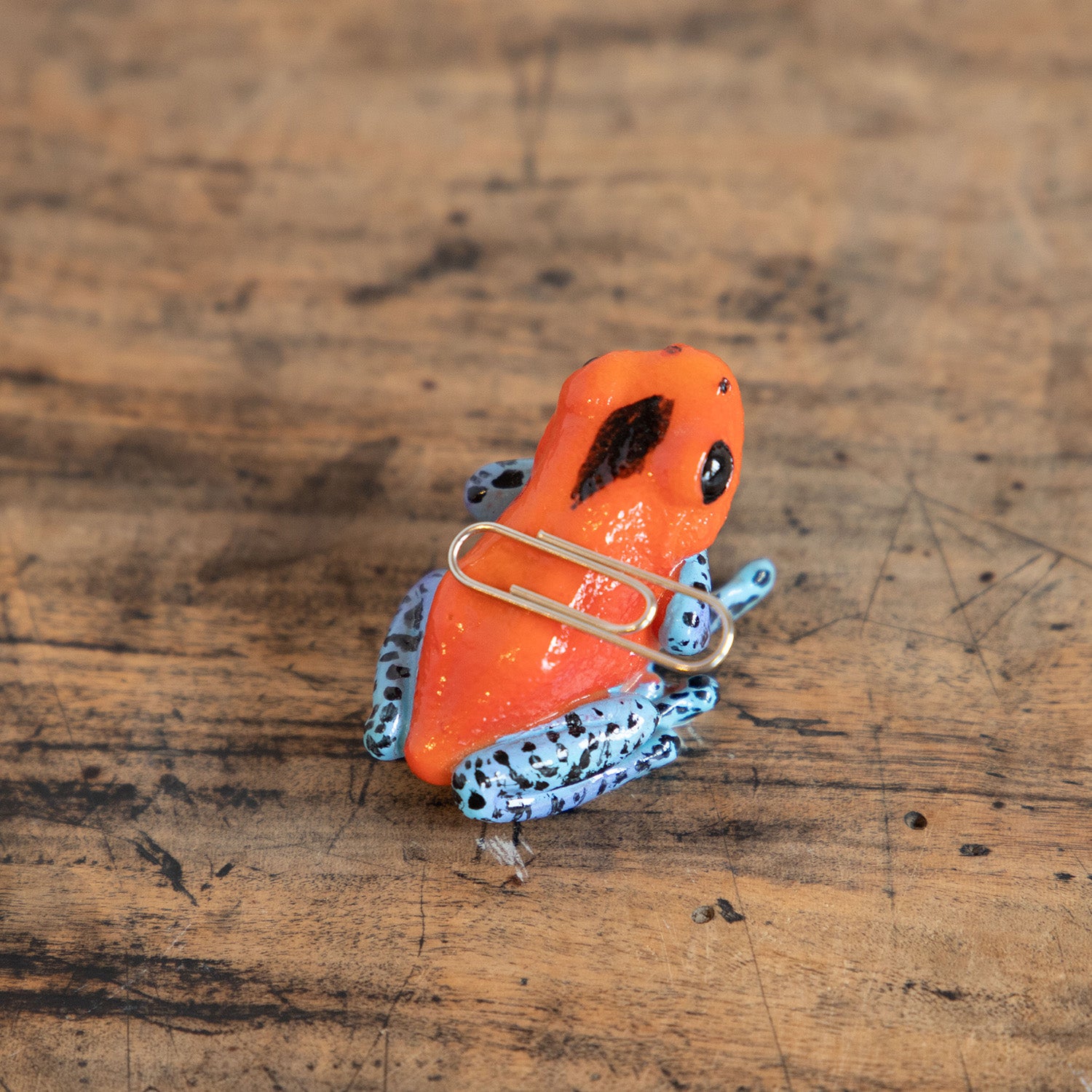 ◆ ヤドクガエルの背中にはマグネット内臓で、クリップなどをそこに付けるとデスクのお片付けにも便利!