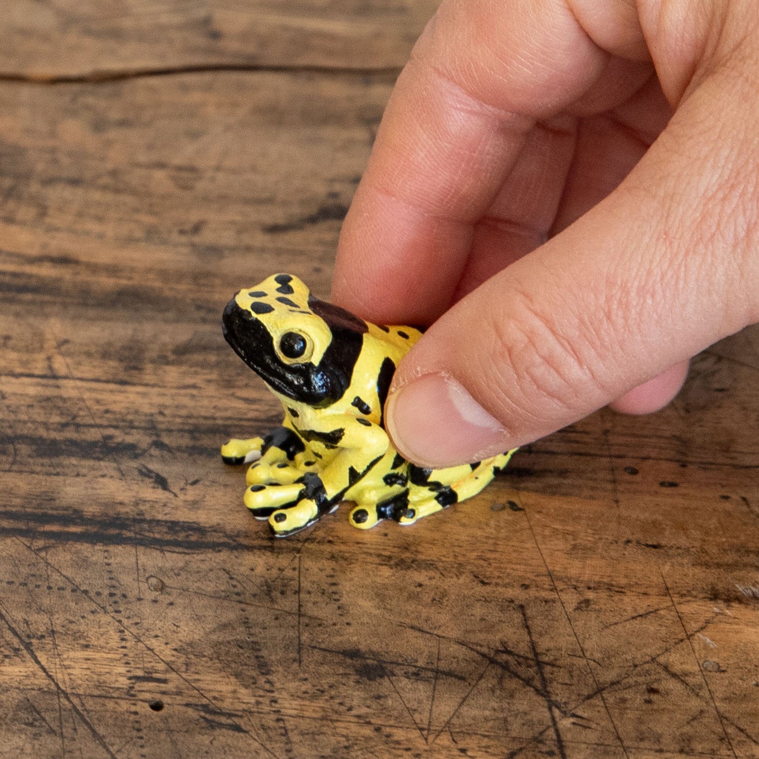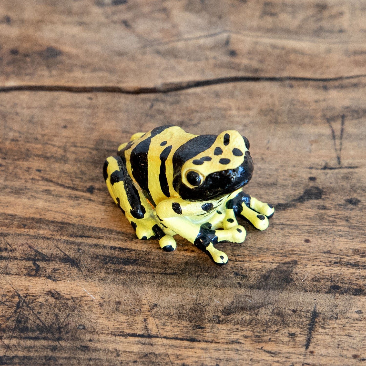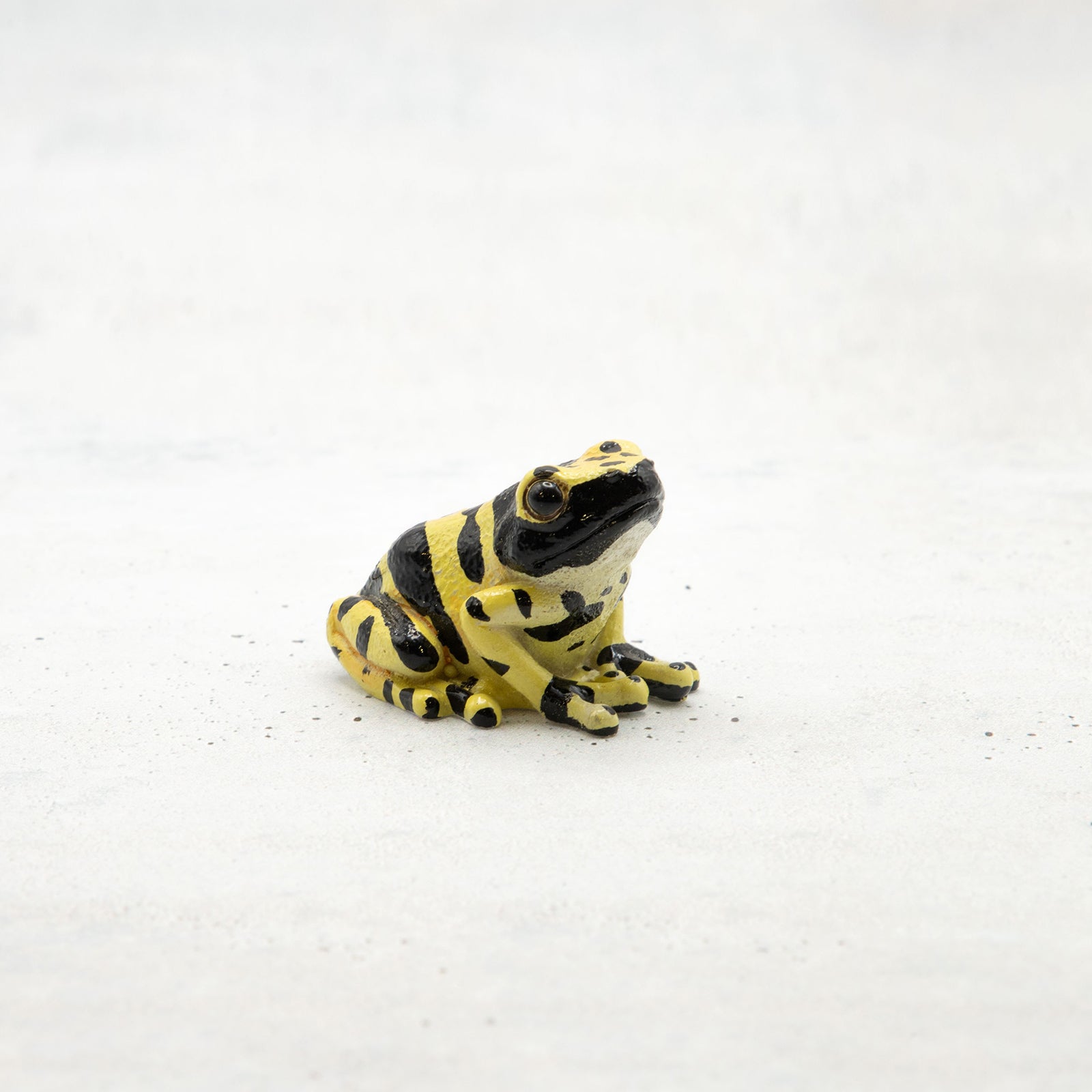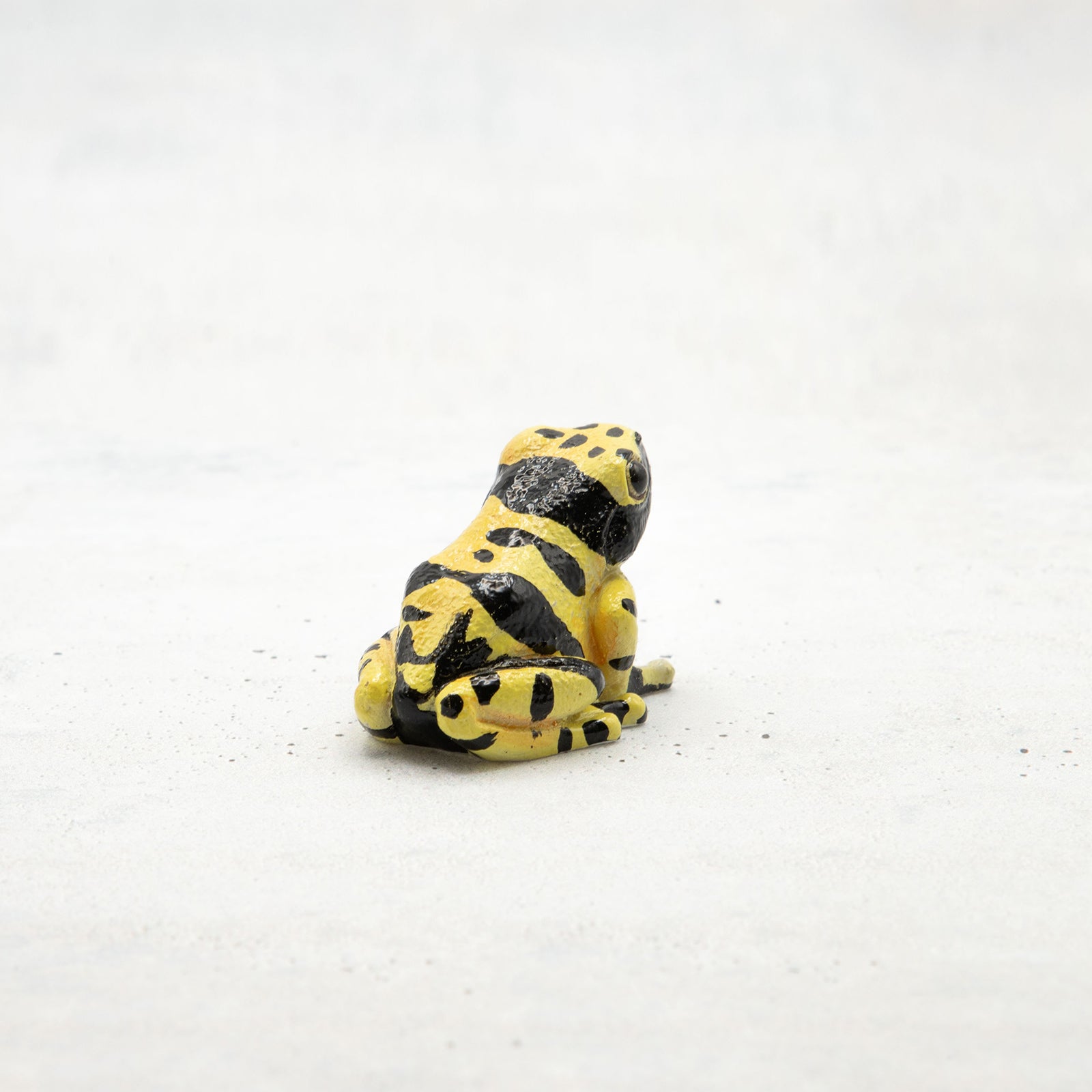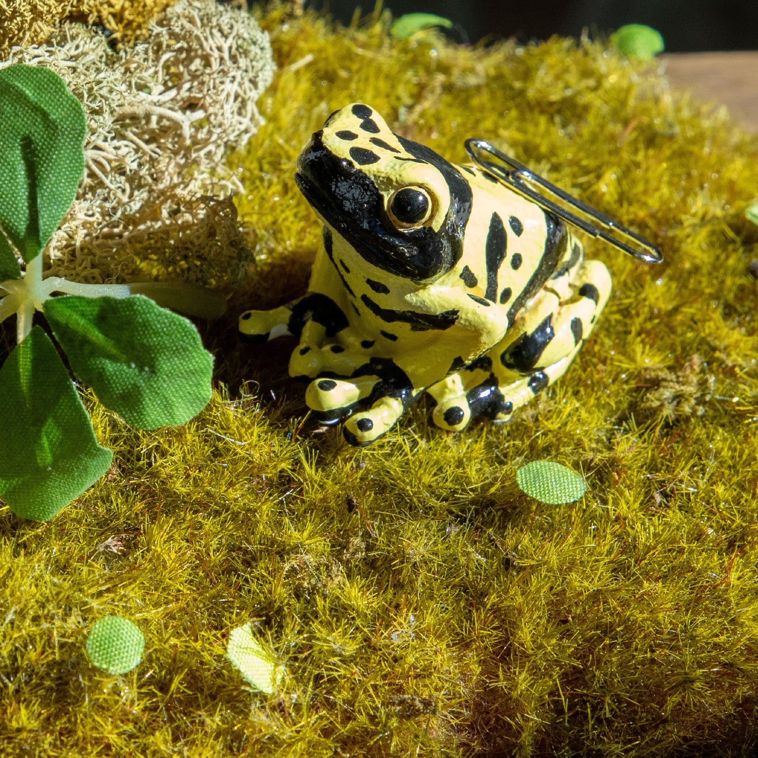 こちらのヤドクガエルは、黄色と黒の斑点模様が特徴的なキオビヤドクガエル。非常に美しいカエルであると認識されるヤドクガエルの仲間を代表となるような小型のヤドクガエルです。