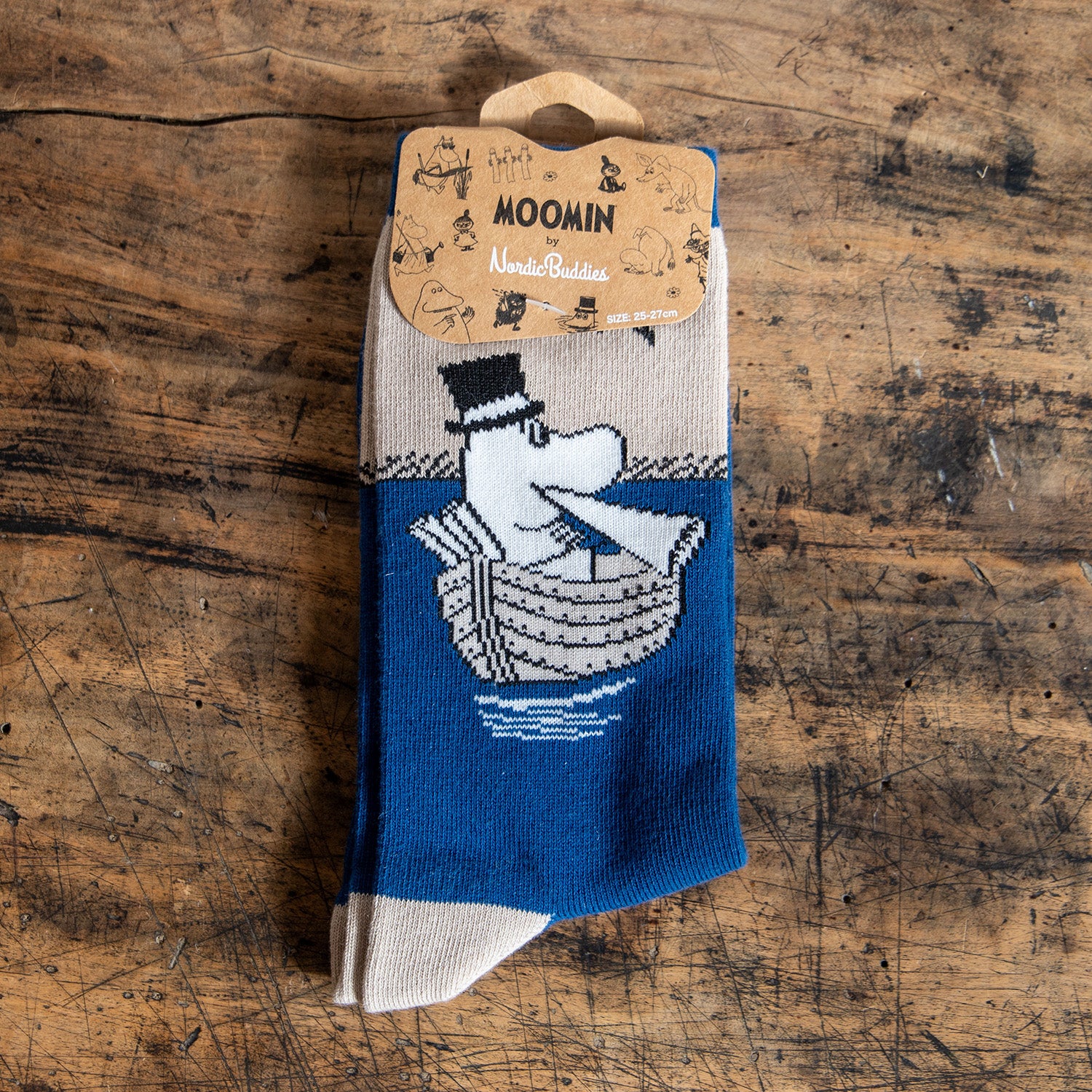 Moomin/ムーミン メンズ クラシック ソックス ムーミンパパボート ネイビーxベージュ