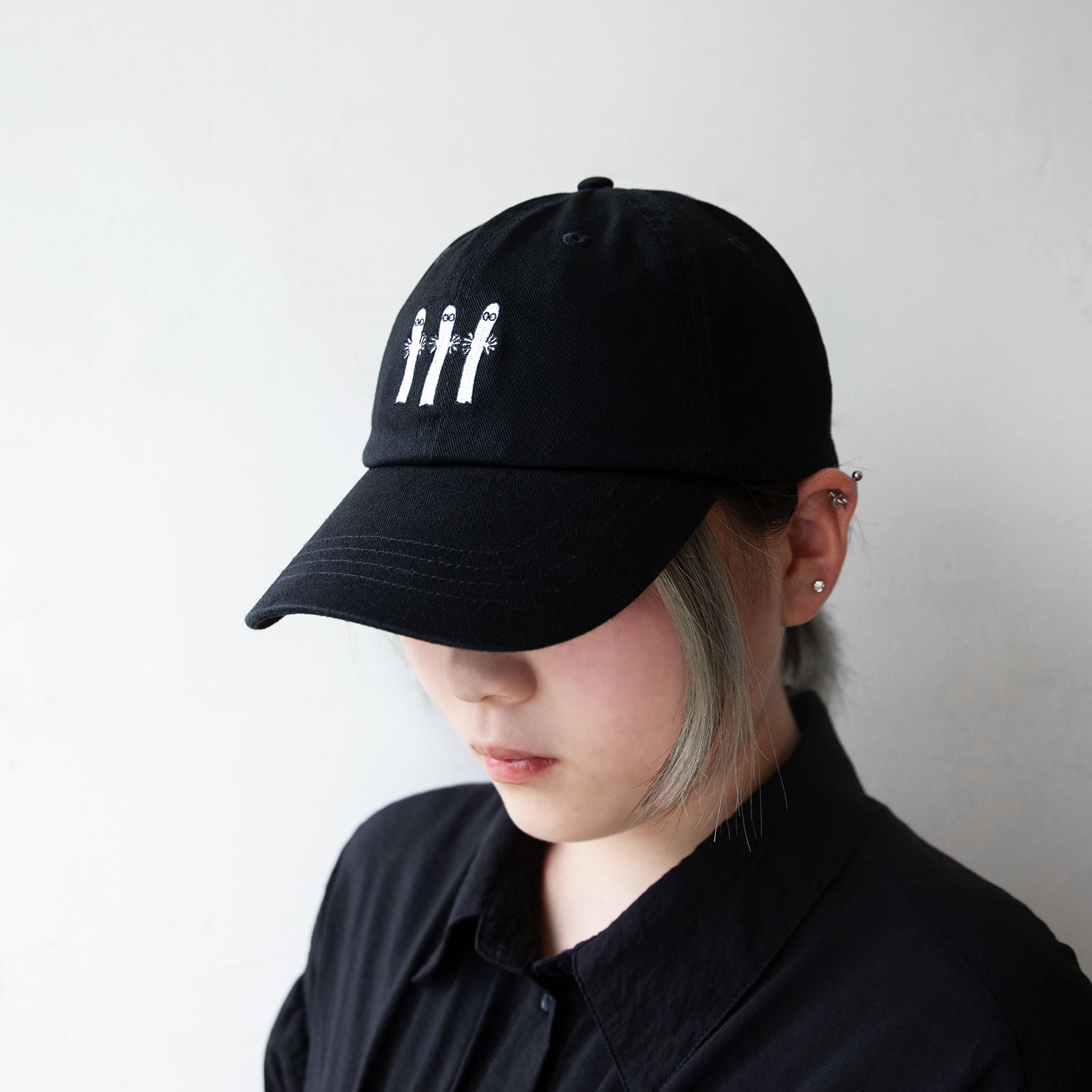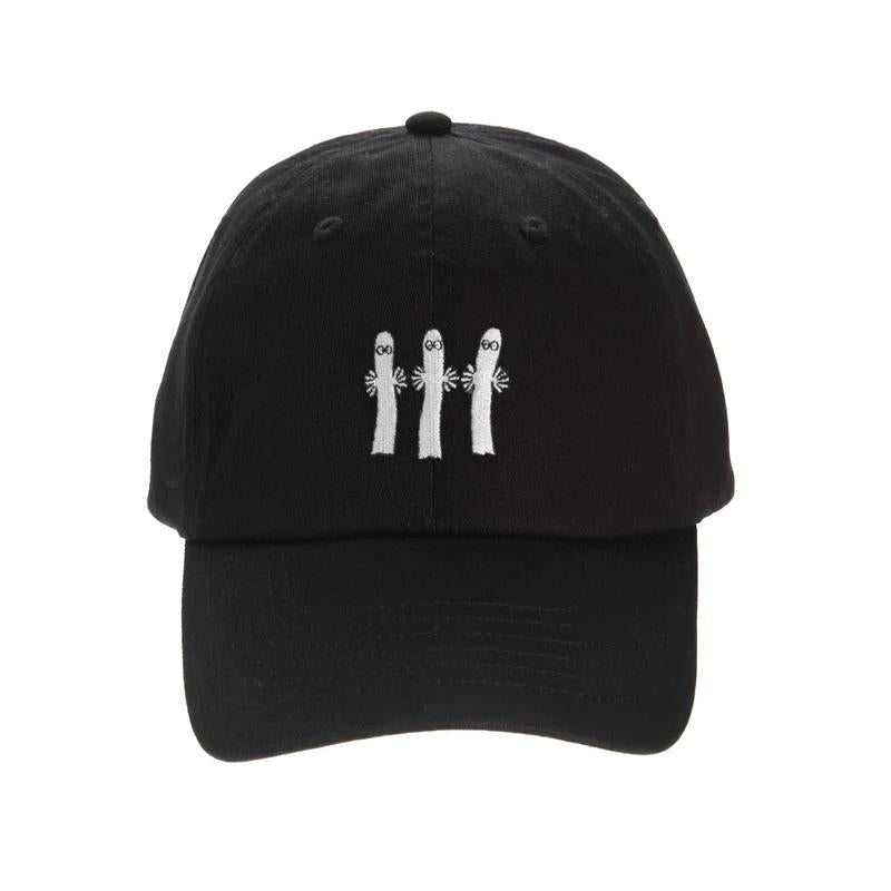 3匹のニョロニョロの刺繍が入った大人用キャップ。