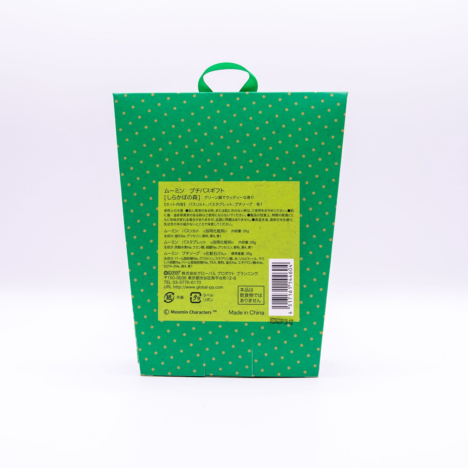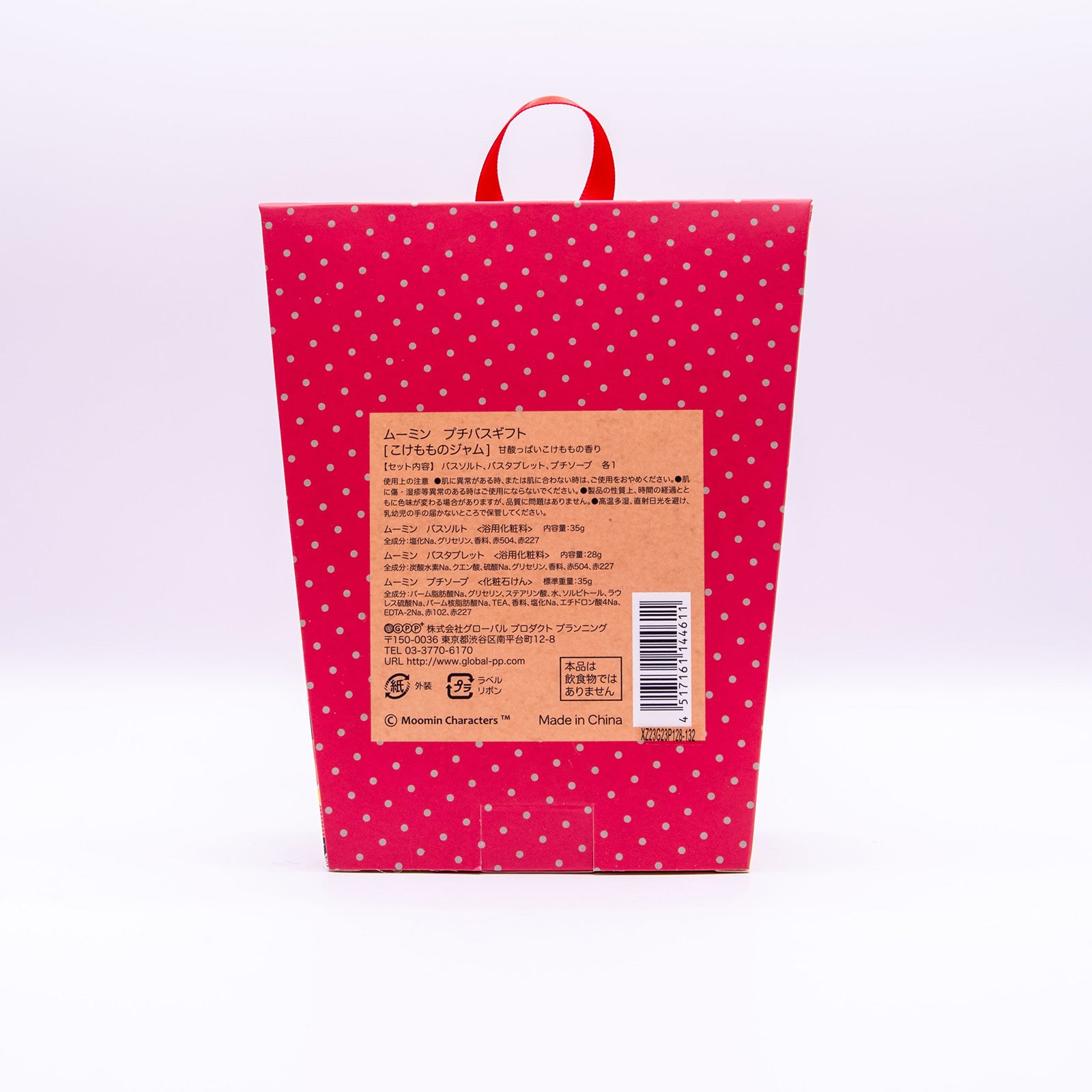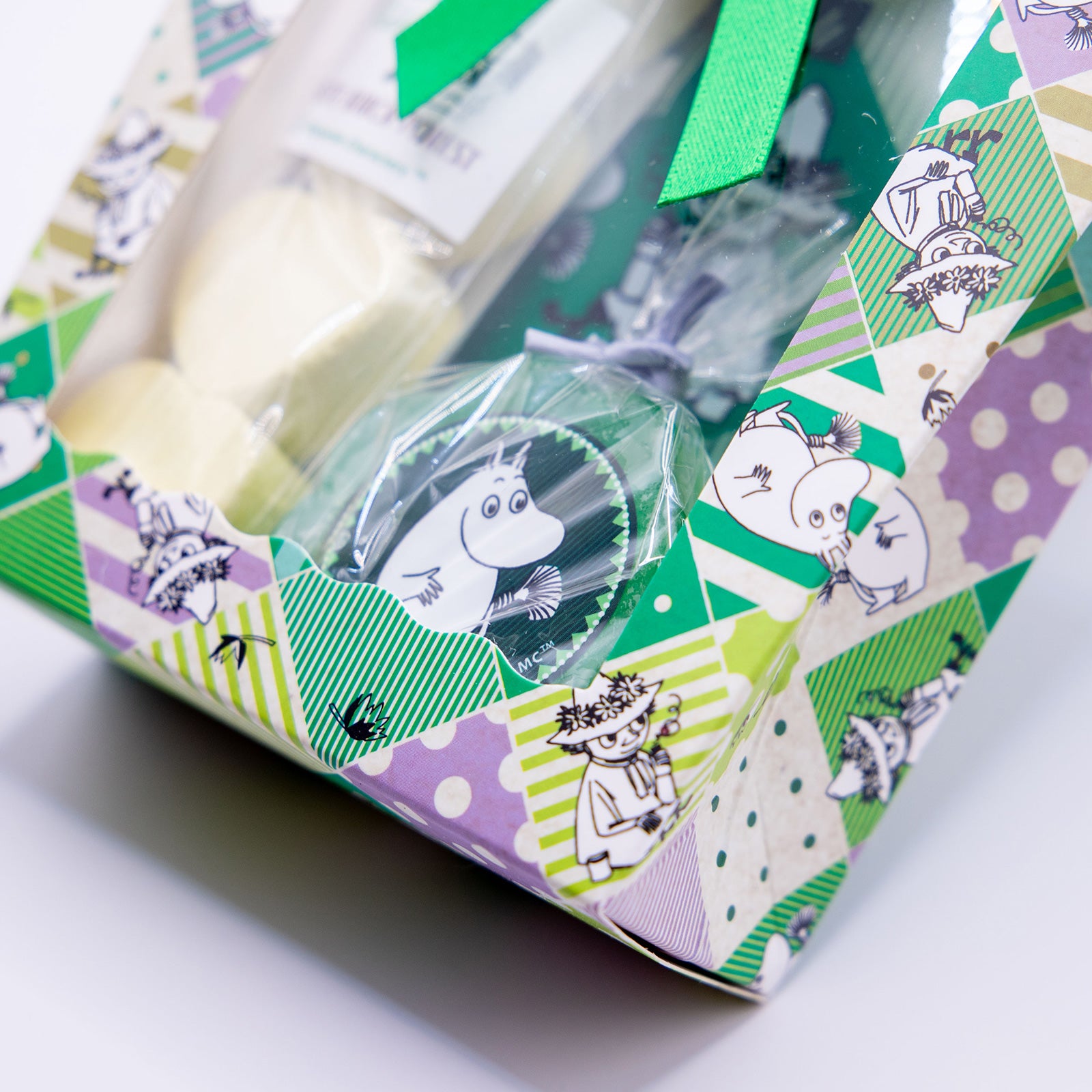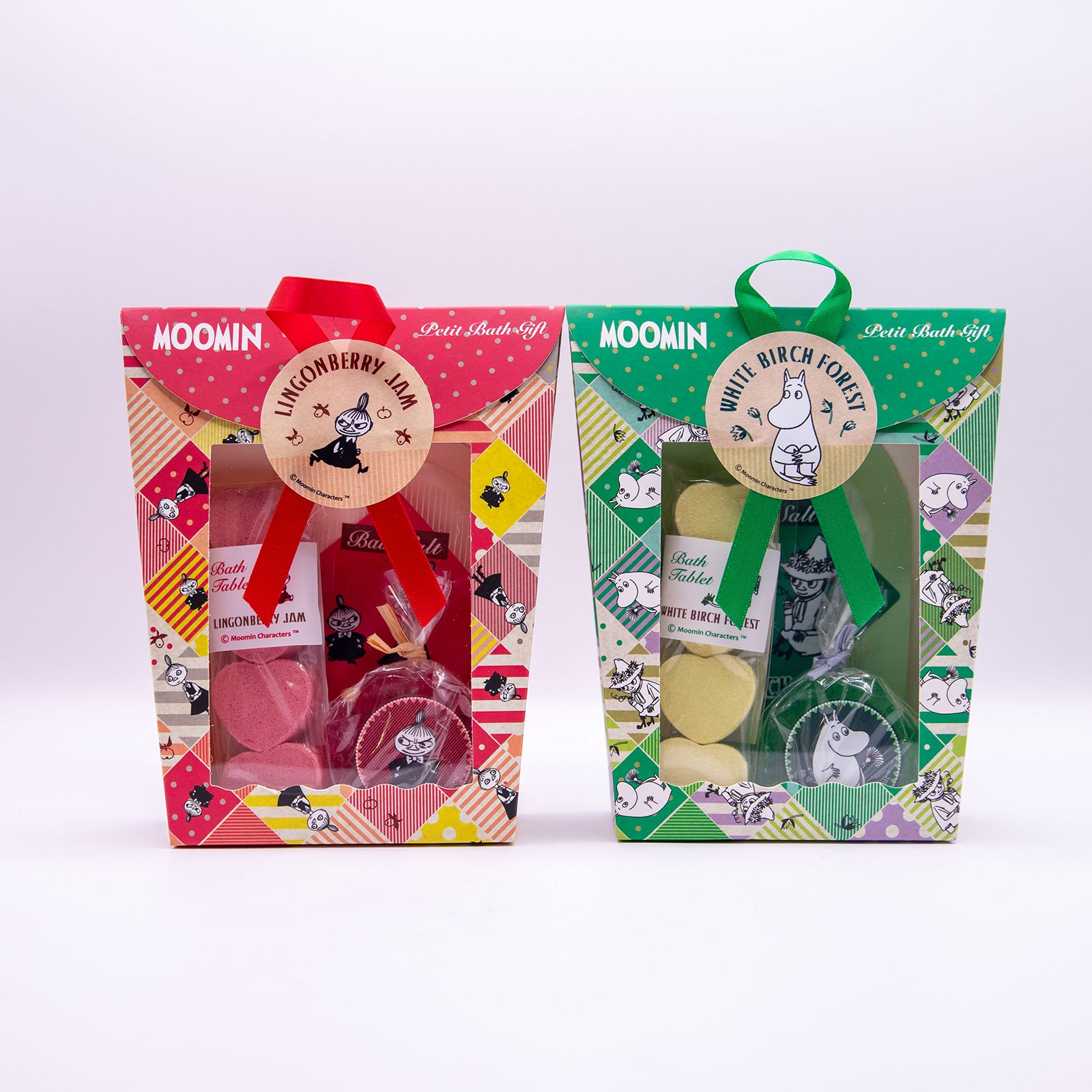 「ムーミン プチバスギフト」は、プチソープ・バスタブレット・バスソルトの3種が入った、ちょっとしたプレゼントにぴったりのセットです。