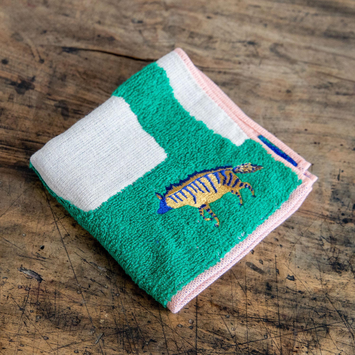 ドッシリ、トボリ、テトテト、チコチコチョコリ、プクク、シナンシナン・・・不思議な世界を歩く仔たち。カワイイ刺しゅうをアクセントに、色・いろ・イロがポワンとはじけるやわらかガーゼ・パイルハンカチです。肌触りもよく吸水性にも優れています。今日はどの仔にしようかと迷ってしまいそう。