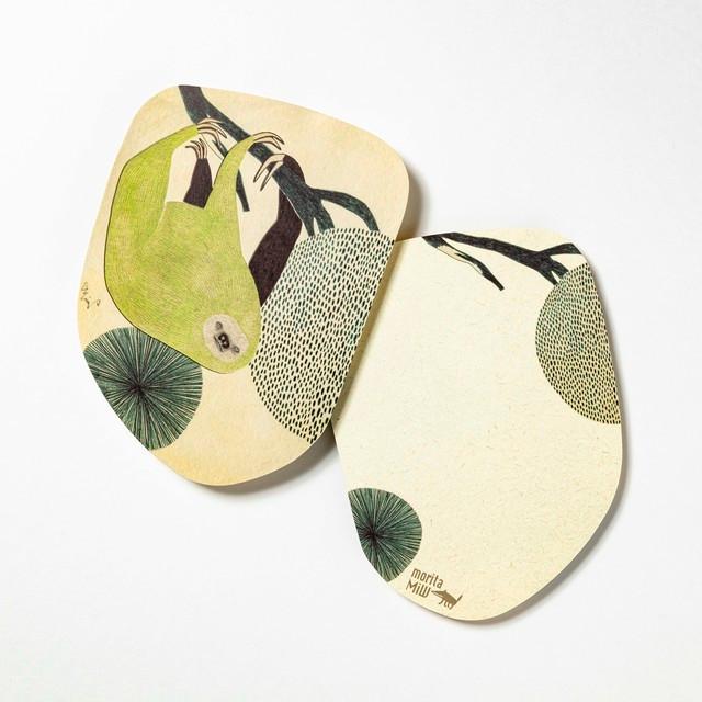 「moritaMiW]のオリジナル・ポストカードはちょっと大きめ、変型でクニュンとヘンテコな形です。見たことないようなMiWさんの不思議な世界が広がります。切手(定形外郵便になります)を貼って出してもいただけますが、表面、裏面ともに絵があるのでミニポスターとして飾っていただいても楽しいですよ。毎日がもっとおしゃれにハッピーに。