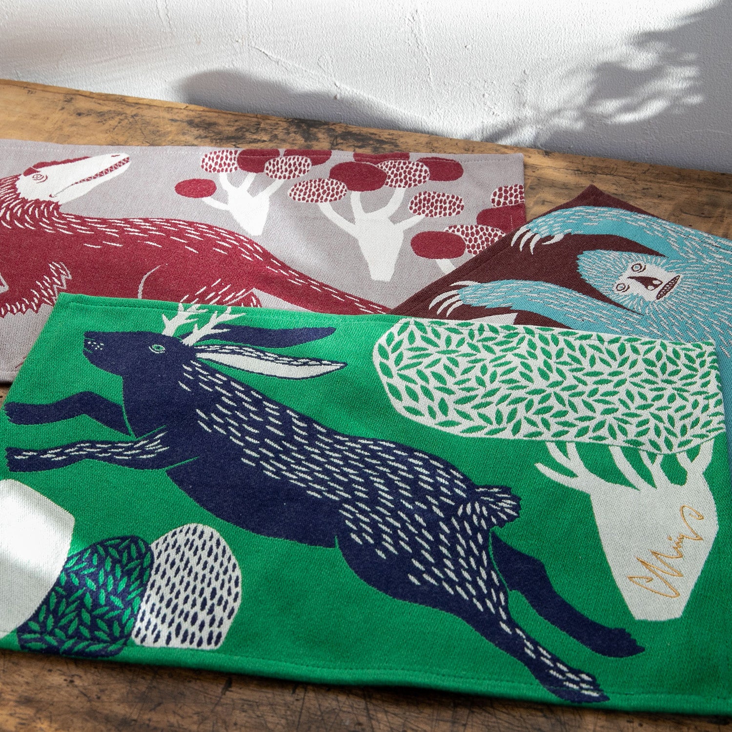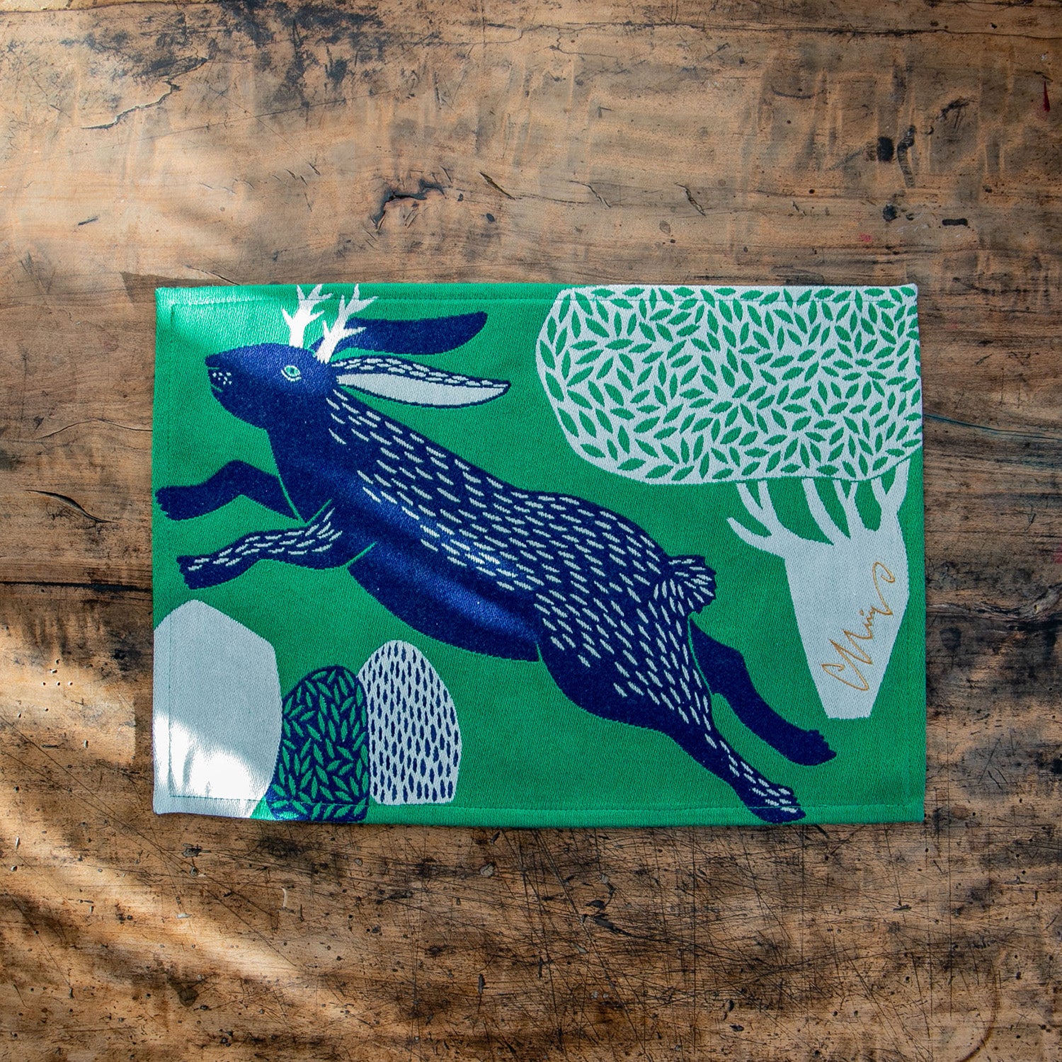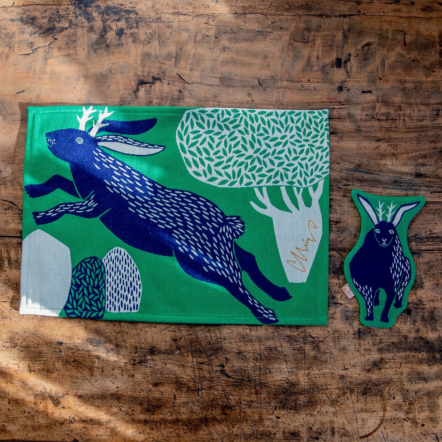 moritaMiW/モリタミウ ランチョンマット 森を跳ぶツノウサギ