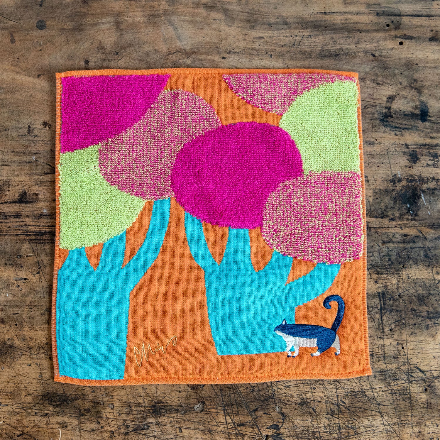 moritaMiW/モリタミウ ガーゼパイルハンカチ ネコと大きな街路樹