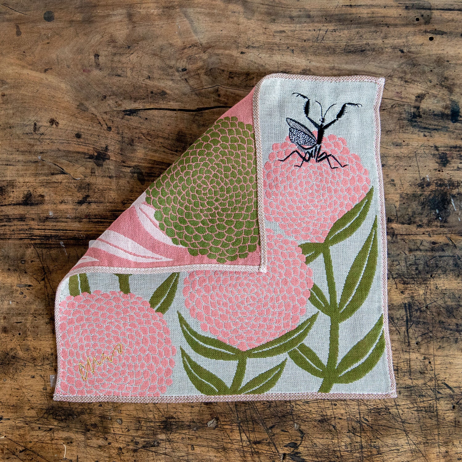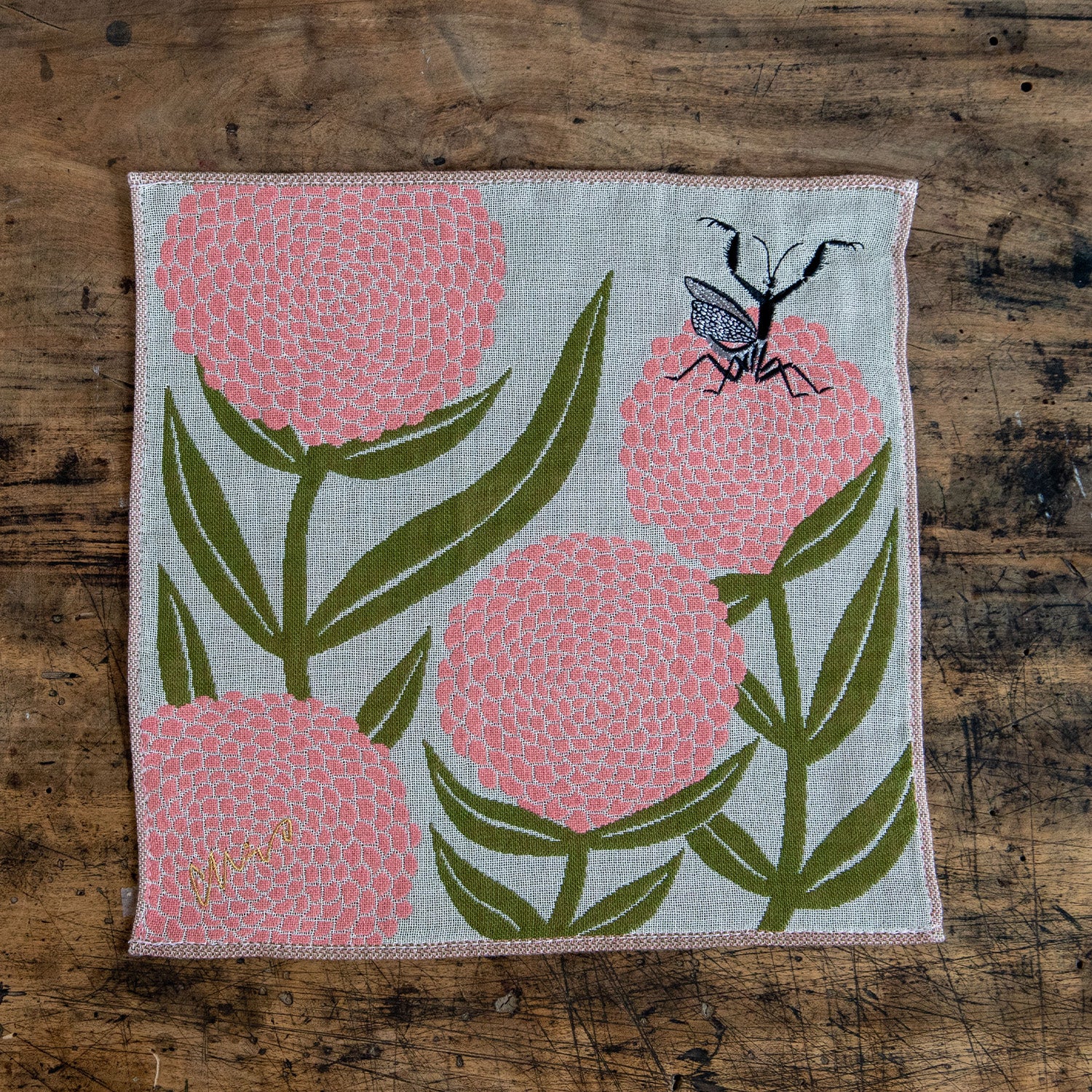 moritaMiW/モリタミウ ガーゼハンカチ カマキリ『花とカマキリ』