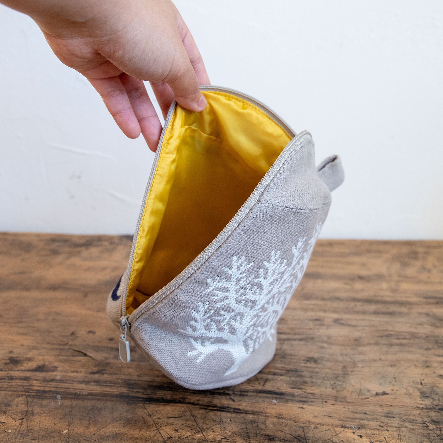 ちっちゃくてコロリンとした愛おしいカタチのマチつきポーチです。