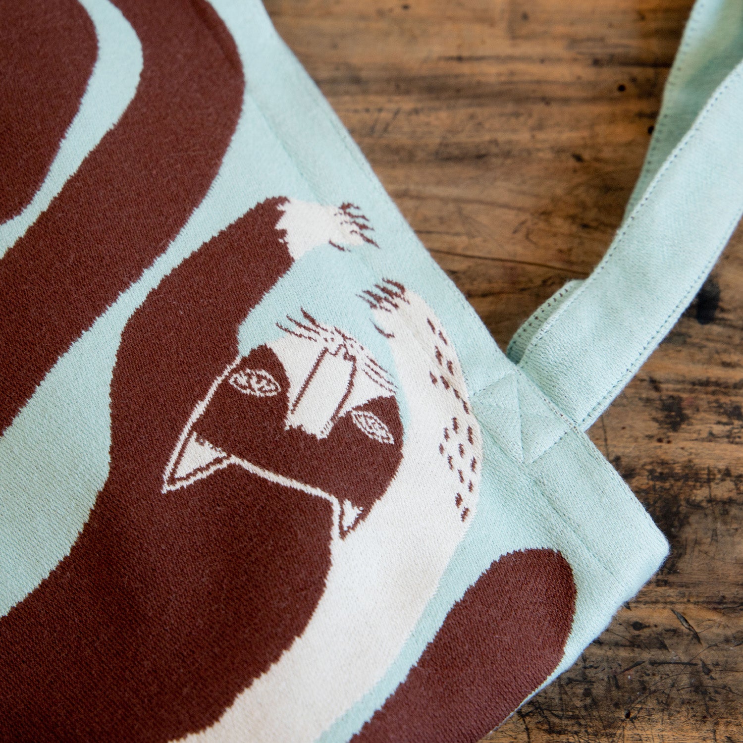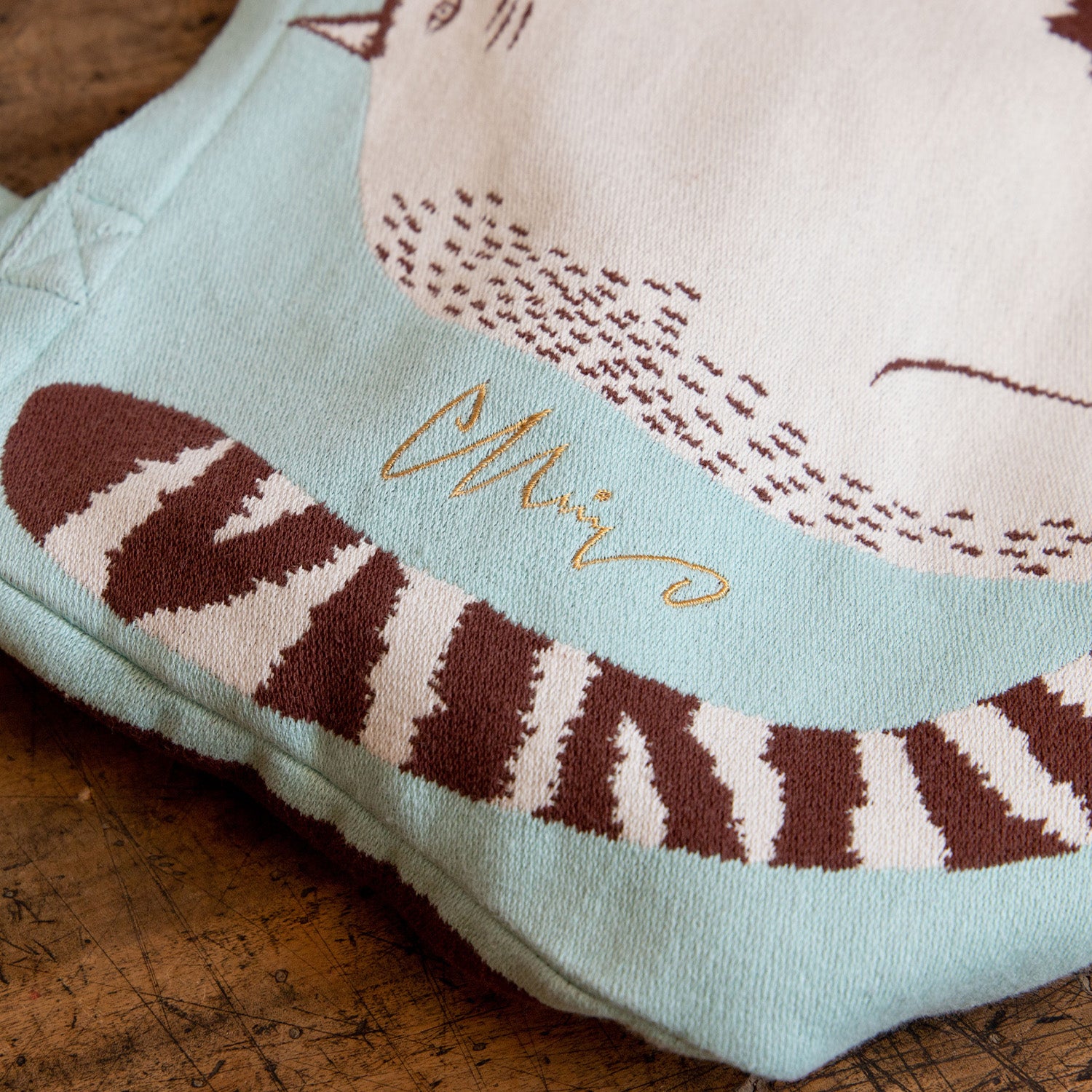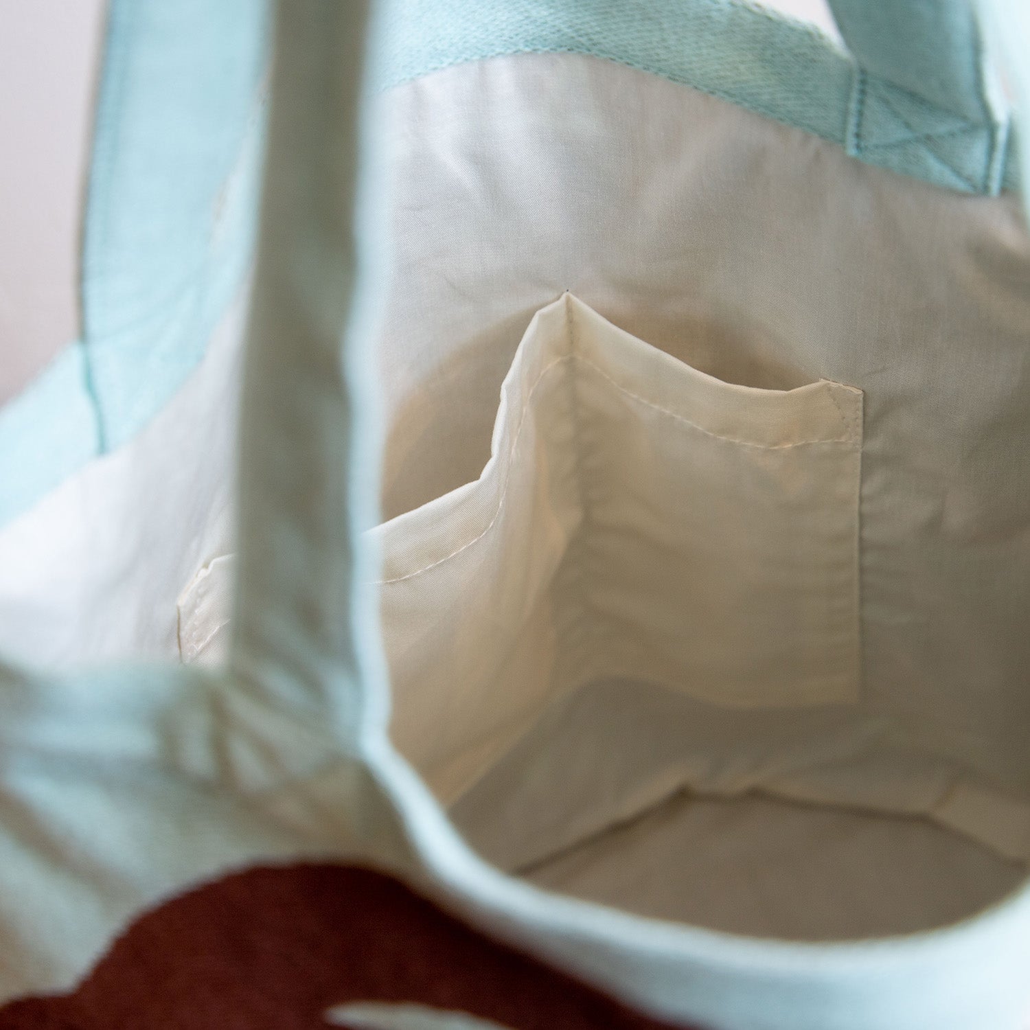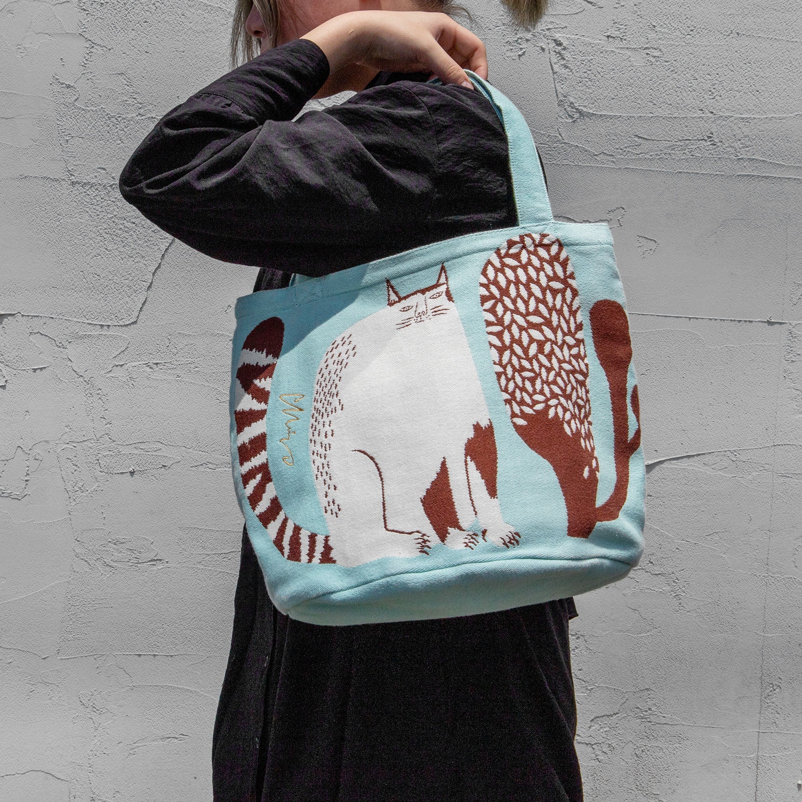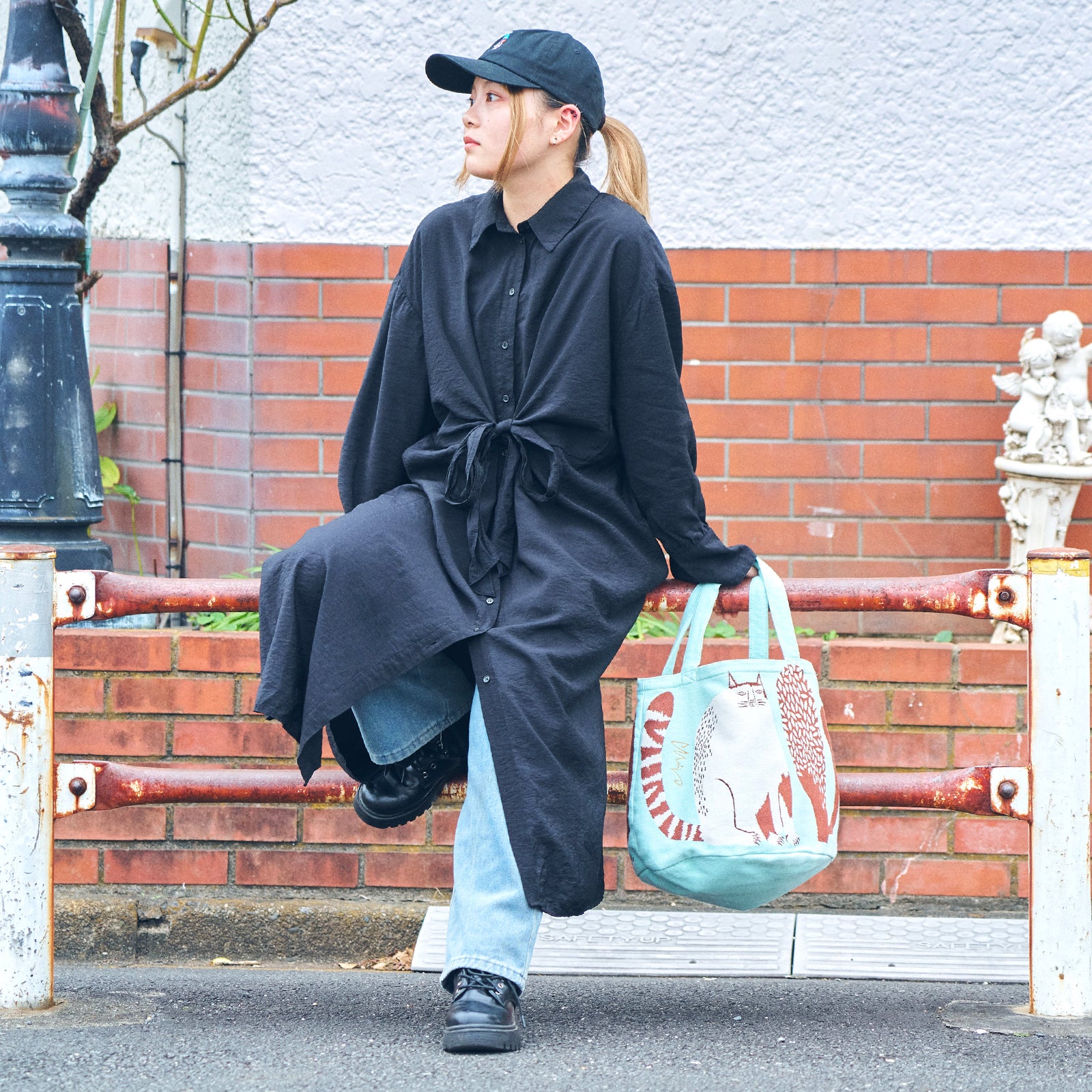 MiWさんの不思議な絵の世界から表裏違う絵でほら、あの子やこの子、大人びた目で生き物たちが話しかけてきます。さあ、何入れてお出かけしましょうか。コロリンとした愛おしいカタチのトートバッグはしっかり織り上げた厚手の生地に上品なカラーの裏地付き。コットン100%だから肌触りも心地いい仕上がりです。