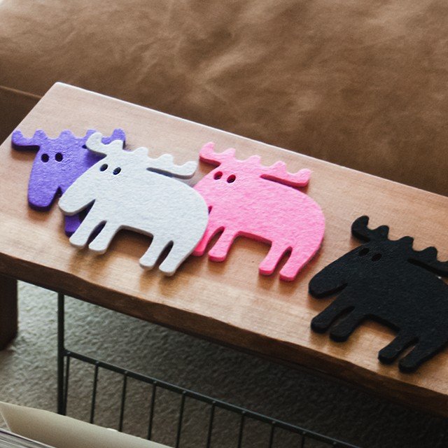 人気の高いエルク柄のフェルトコースターです。4色ありますので、家族で自分の色を決めるのもいいですね、お子様にもピッタリ。