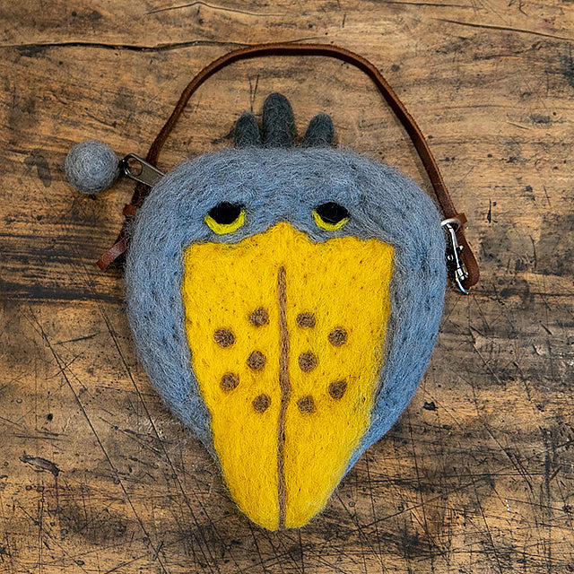 羊毛フェルトで製作されたハンドメイドのハシビロコウポーチです♪