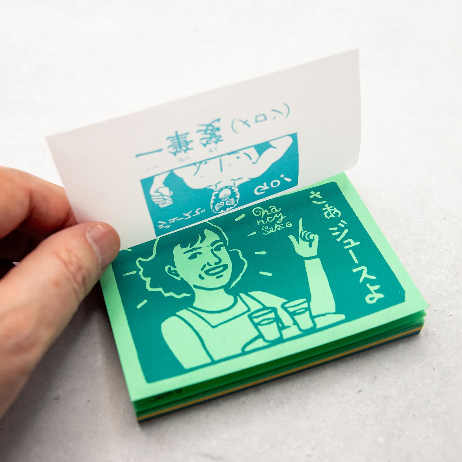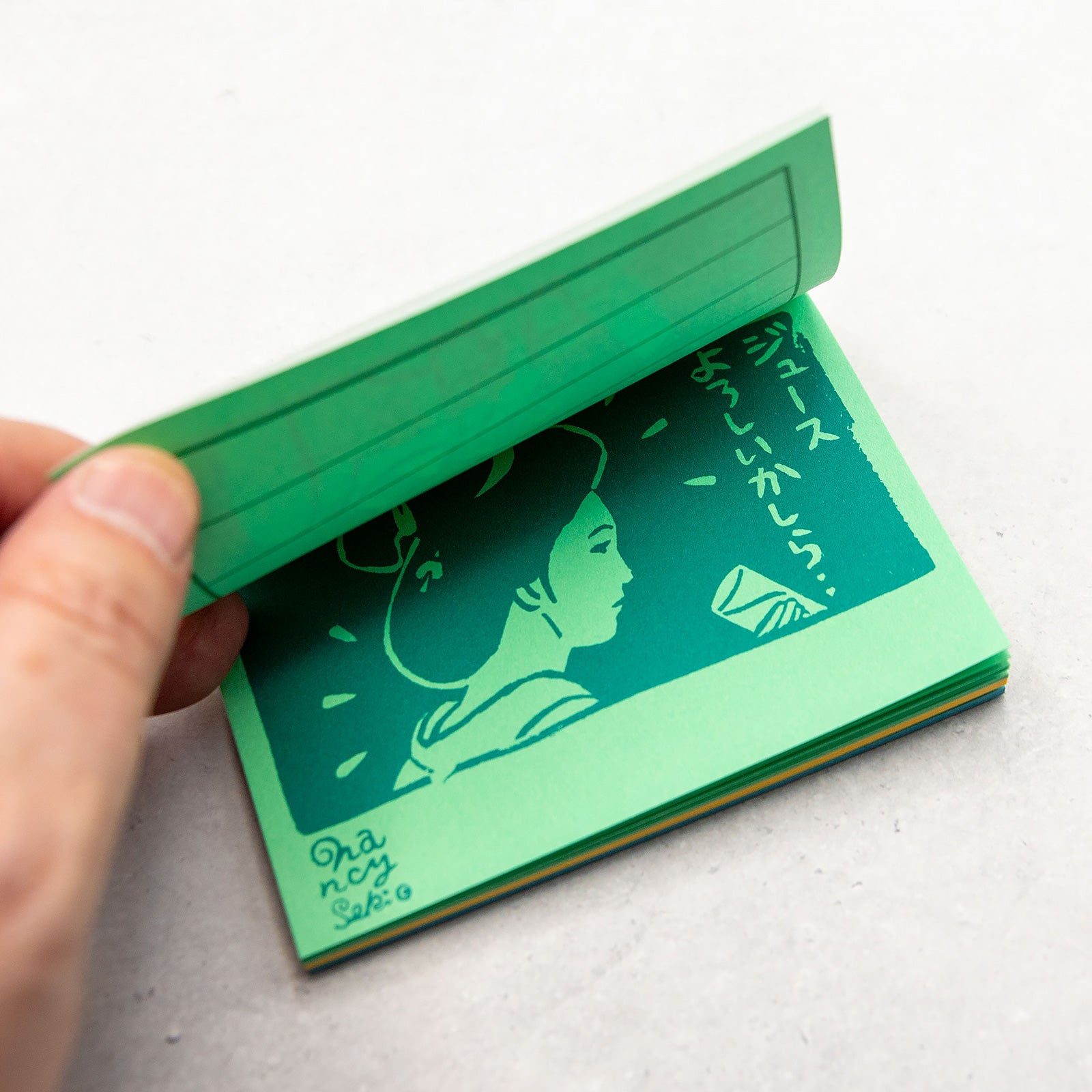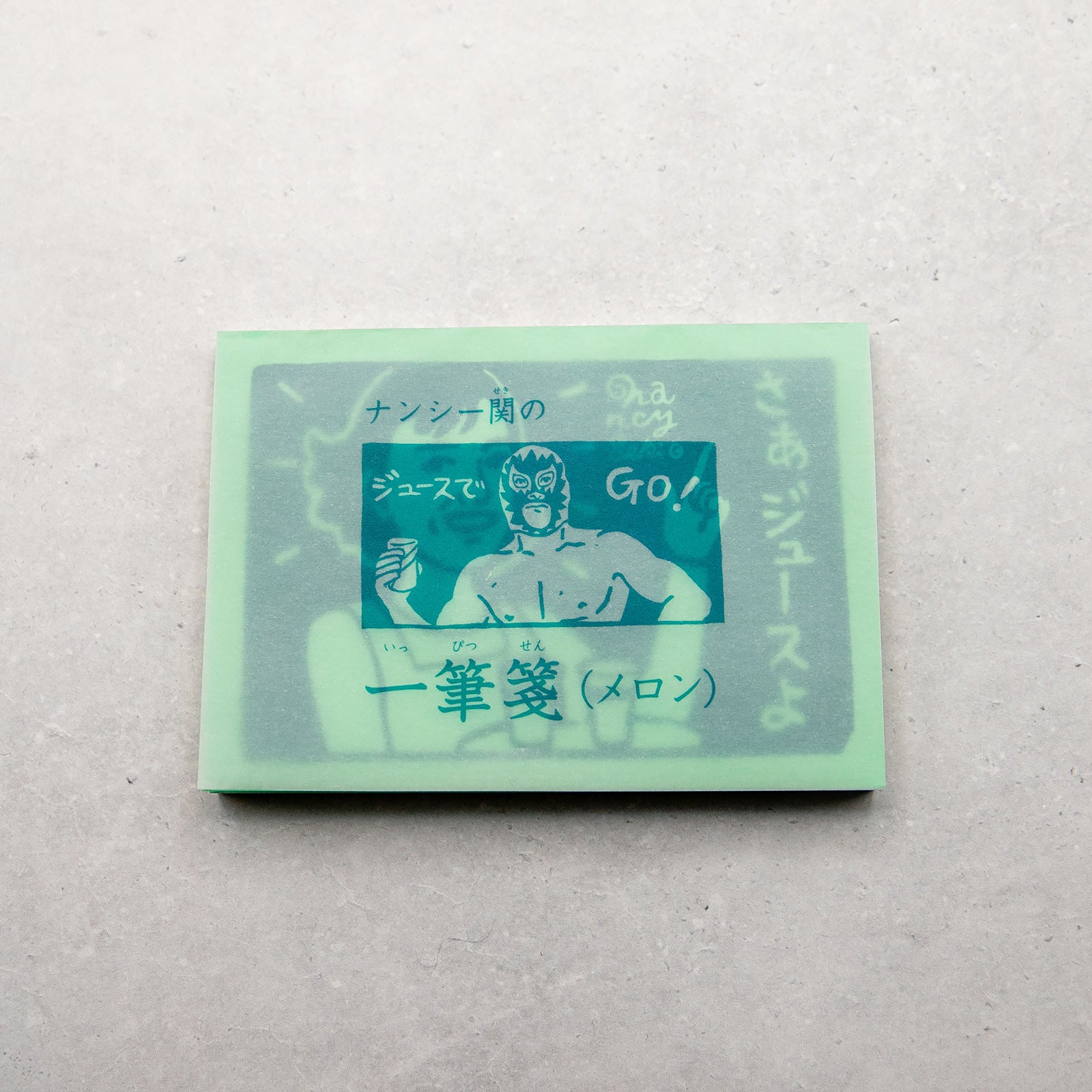 ナンシー関の人気シリーズ「ジュースでGO!」の一筆箋(メロン)。