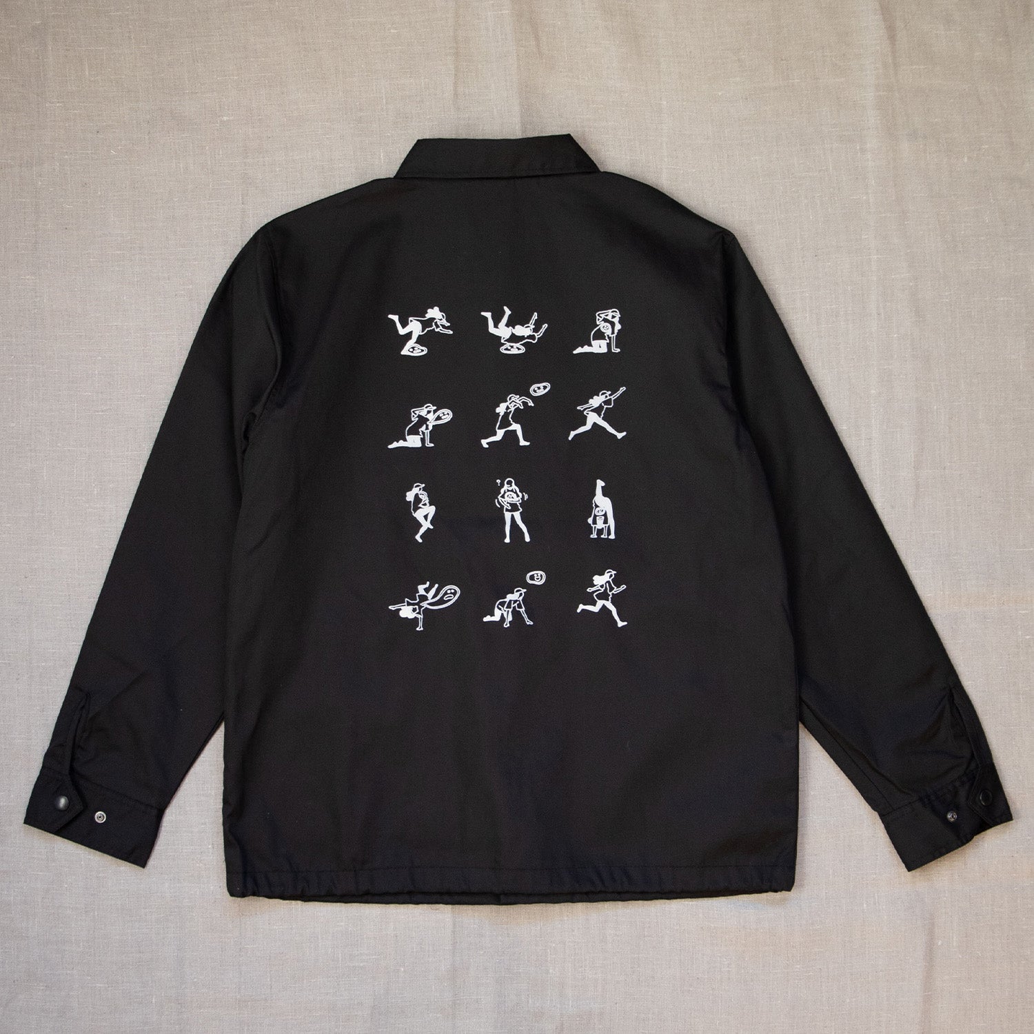 ニコノマニマニ雑貨店オリジナルキャラクターのニコとマニが繰り広げる、めくるめく逃避行。そんな2人のイラストがグリットに並んでバックプリントに。さっと羽織れて使いやすいコーチジャケットが登場です。